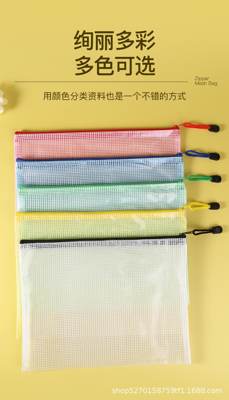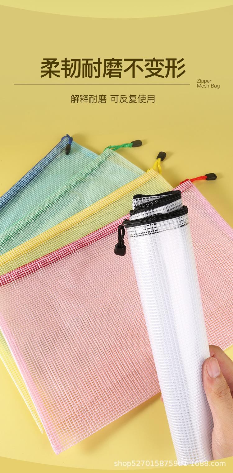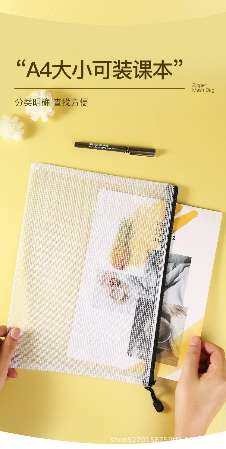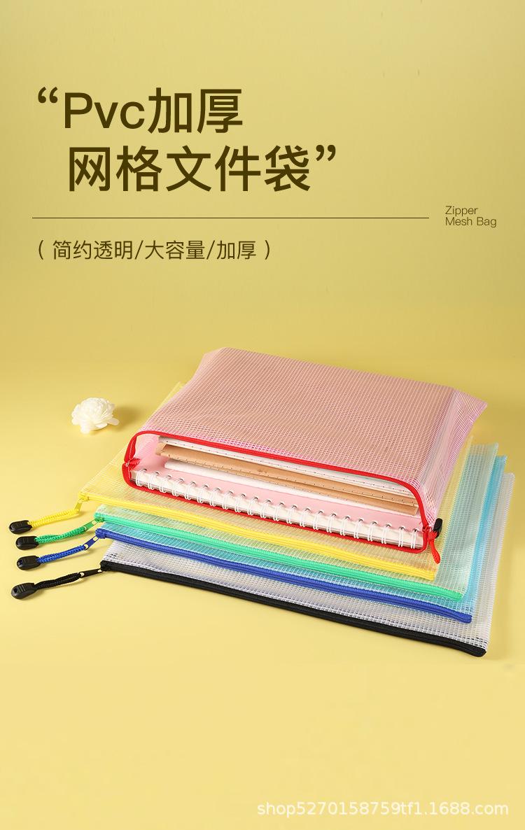 Venta al por mayor directa a4 Bolsa de archivo transparente Malla Engrosada Impermeable Bolsa para documentos con cremallera Bolsa para guardar artículos de papelería para estudiantes
