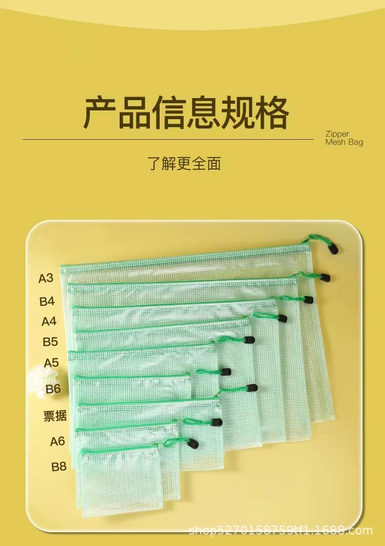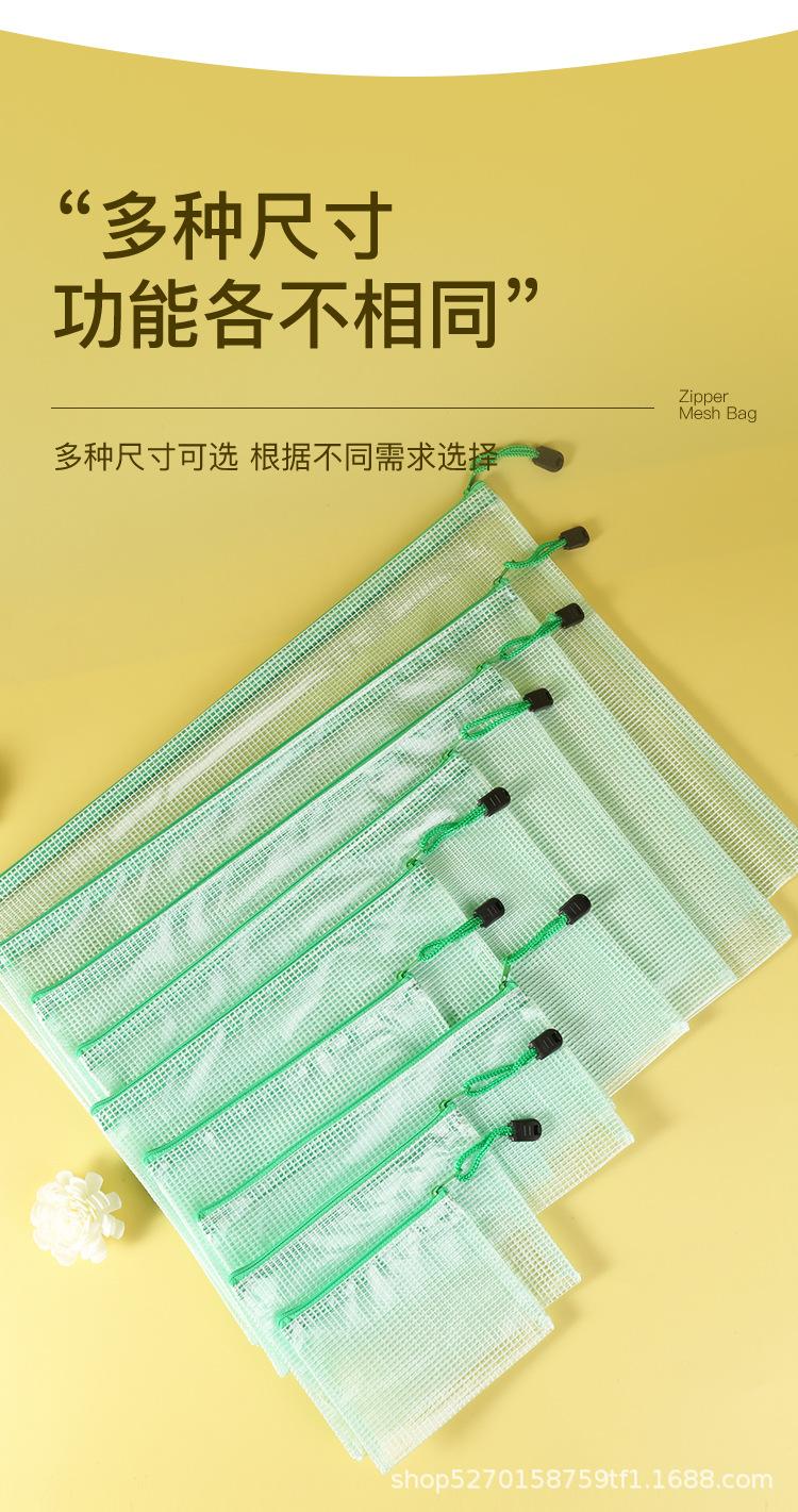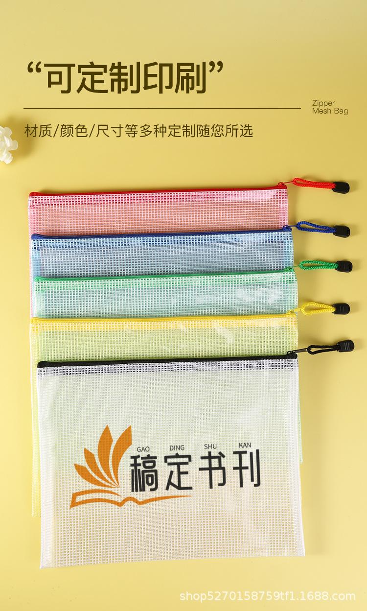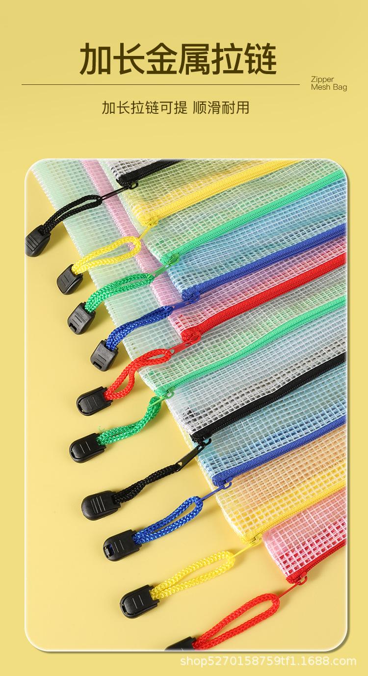 Venta al por mayor directa a4 Bolsa de archivo transparente Malla Engrosada Impermeable Bolsa para documentos con cremallera Bolsa para guardar artículos de papelería para estudiantes