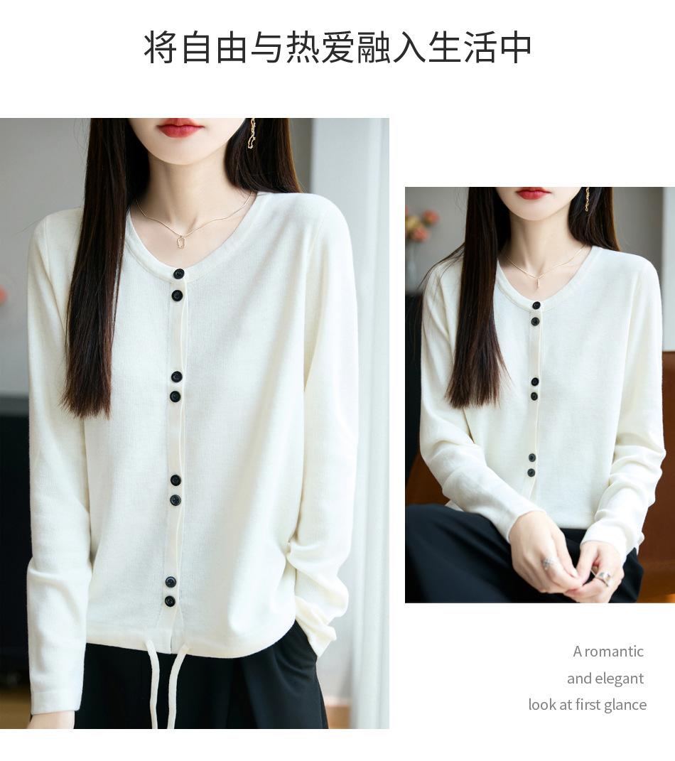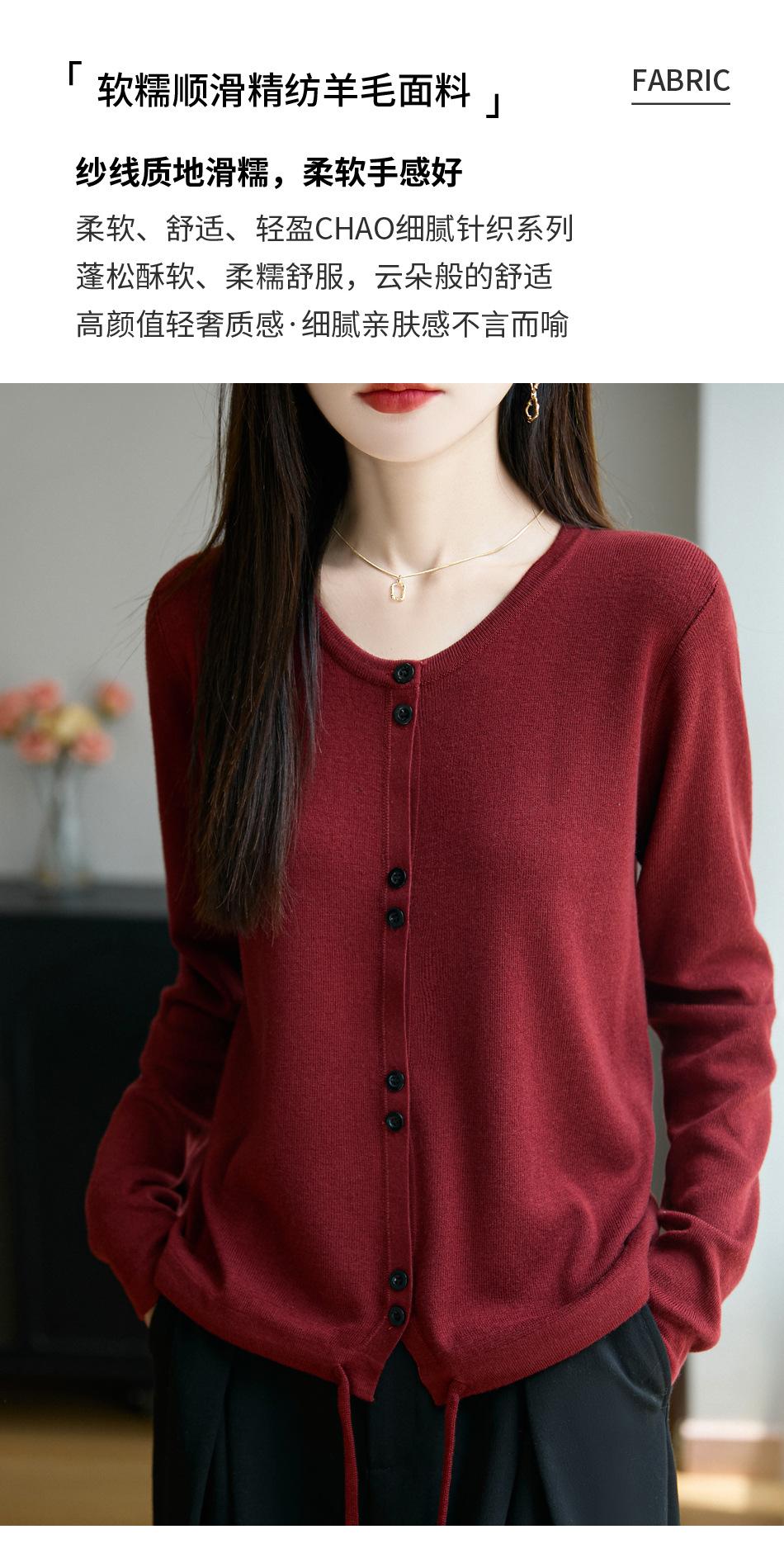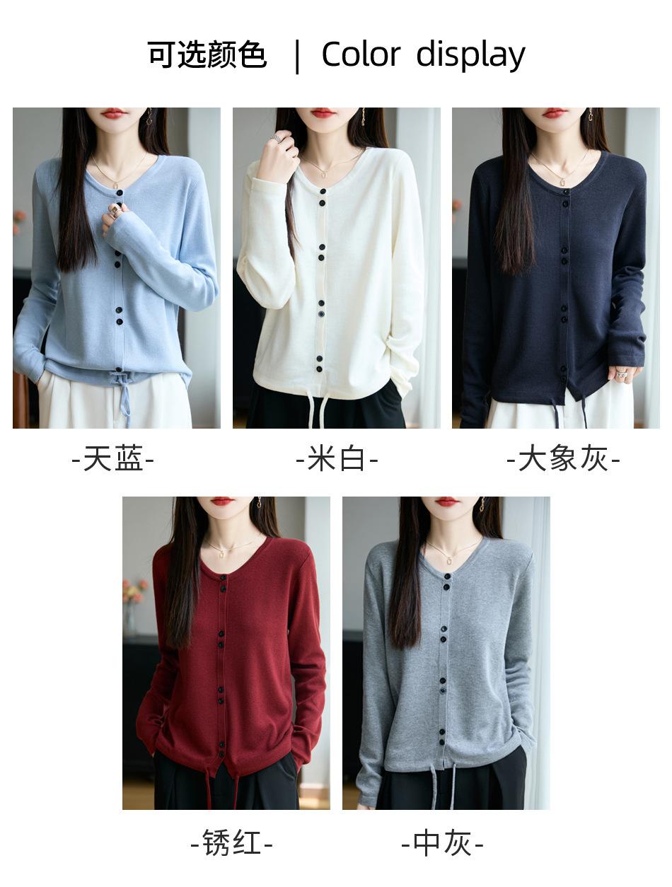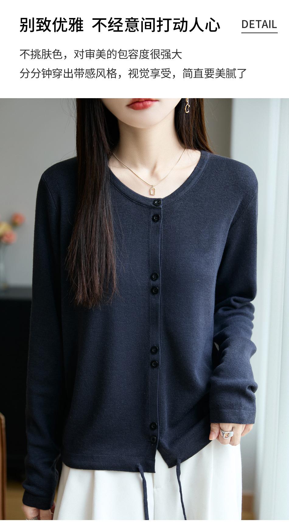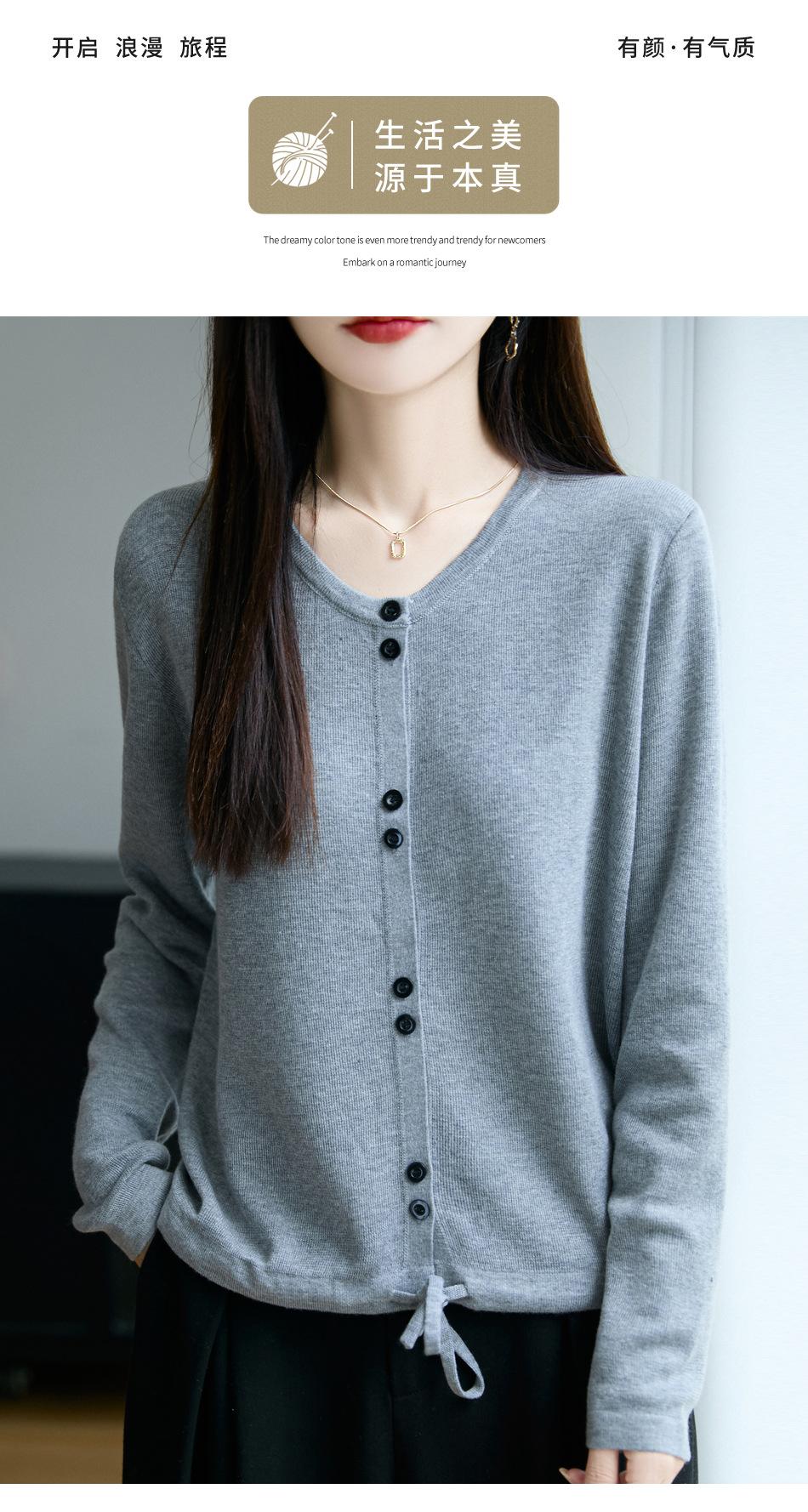 Cárdigan de punto casual francés transfronterizo de cuello redondo para mujer, otoño e invierno, nuevo suéter de punto fino, abrigo exterior con cordón