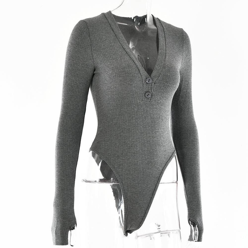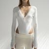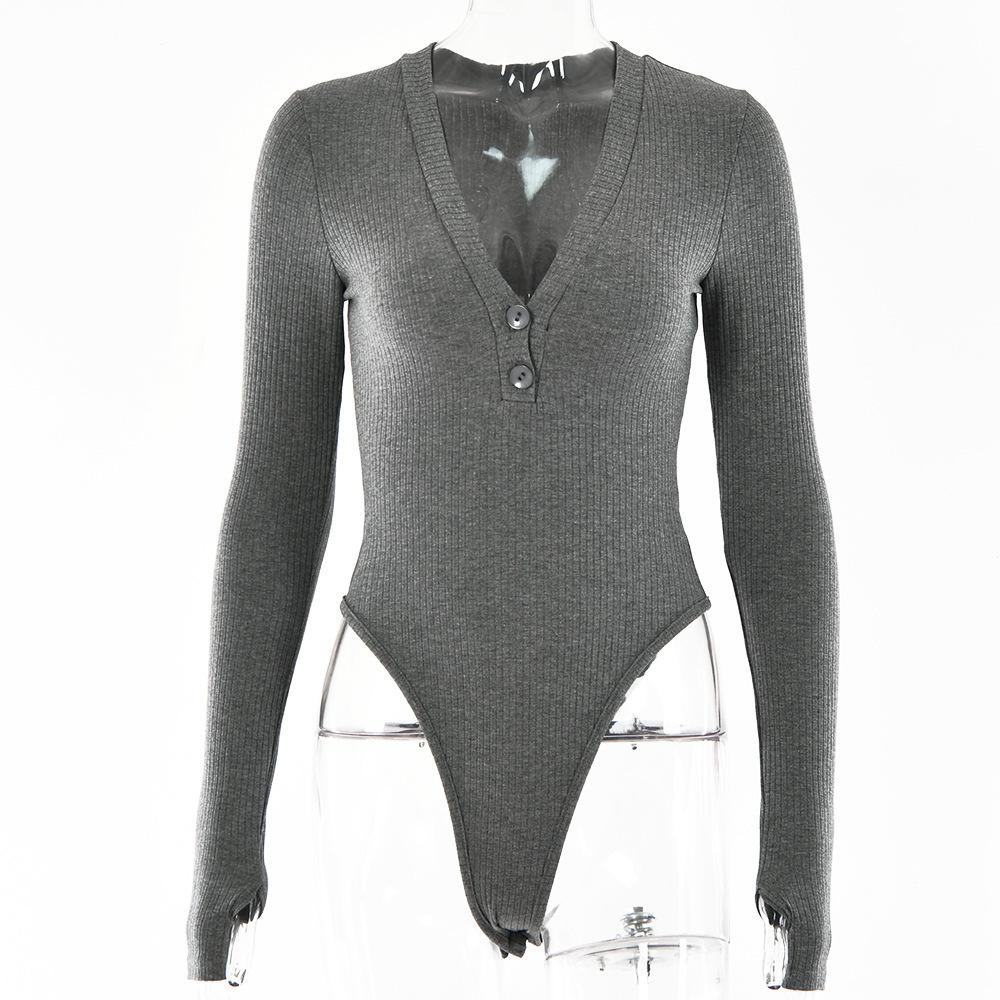 Otoño/Invierno 2025 Estilo Chica Picante Cuello en V Ajustado Capa Base Color Sólido Sexy Escotado Body Básico