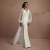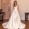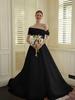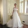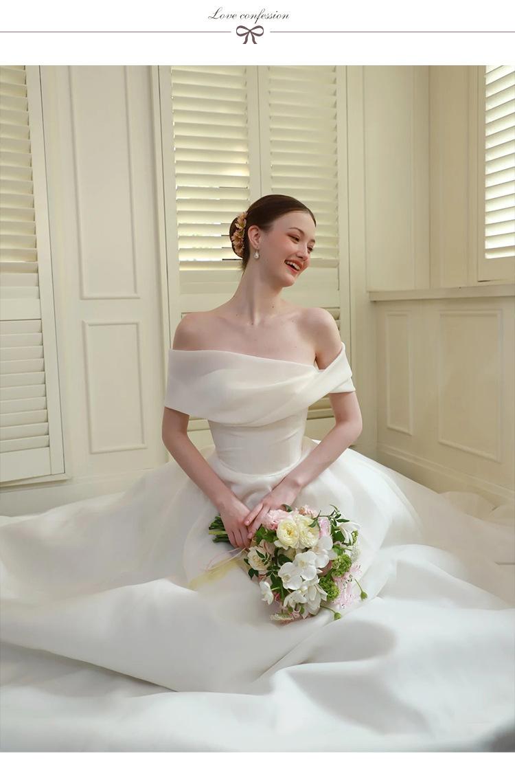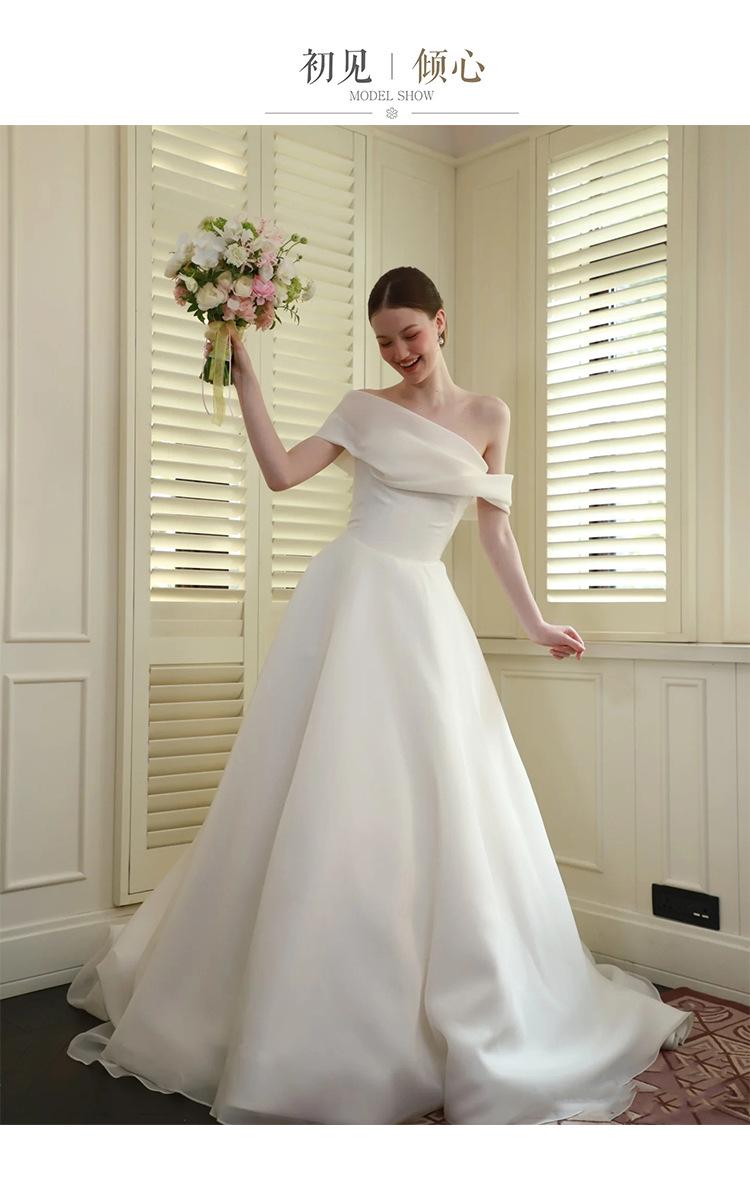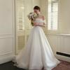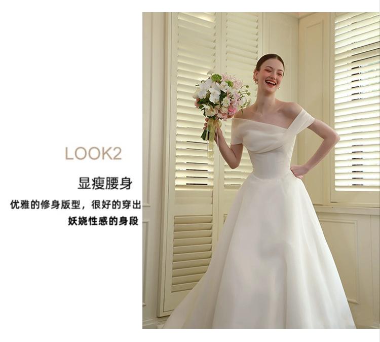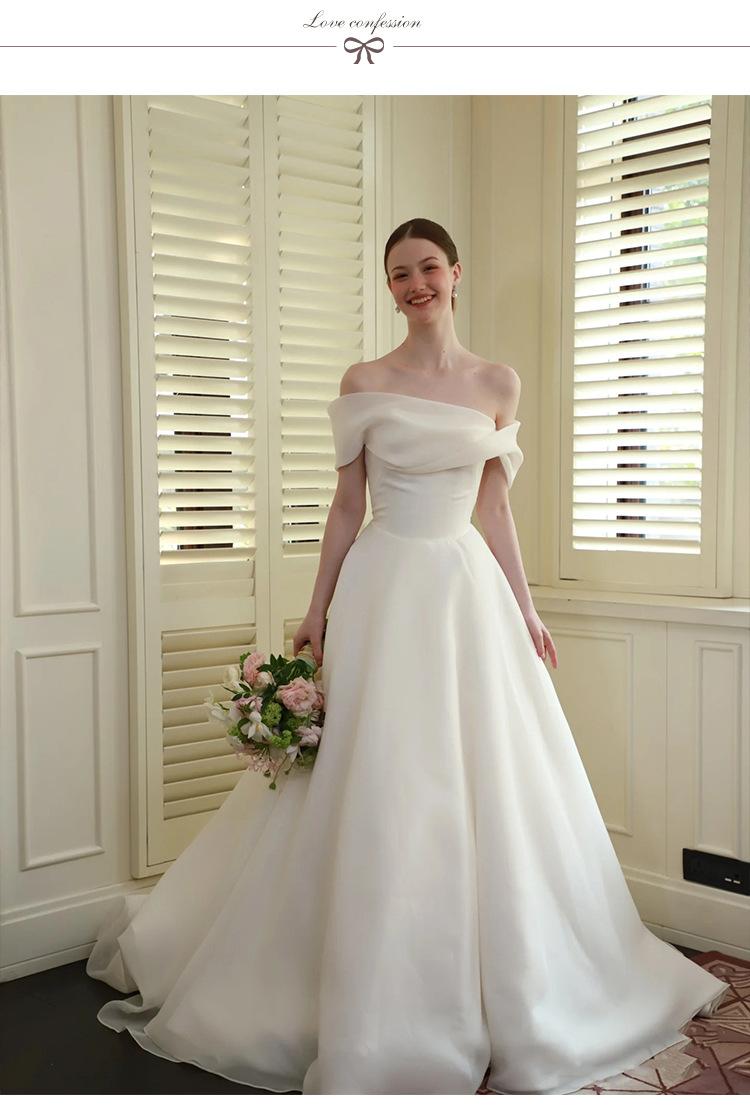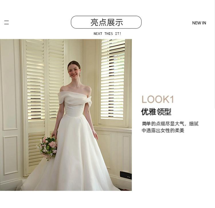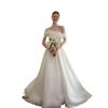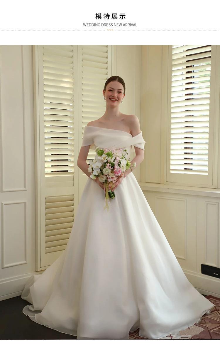 Vestido de novia francés largo hasta el suelo novia 2025 nuevo textura de alta gama hombros descubiertos organza satén cola grande vestido de novia principal