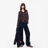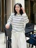 Suéter de Punto de Manga Larga con Cuello Henley a Rayas de Lana para Mujer 2025 Otoño Nuevo Versátil Delgado Top Básico