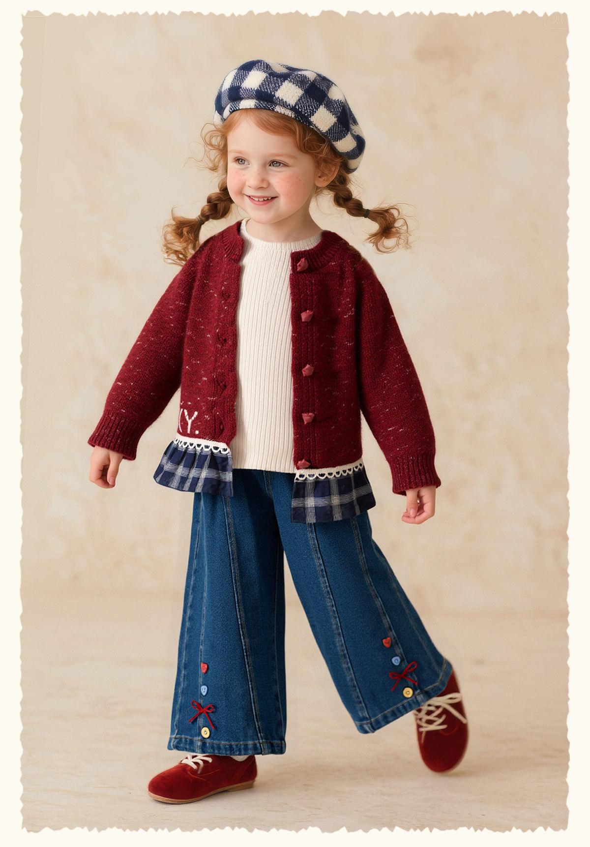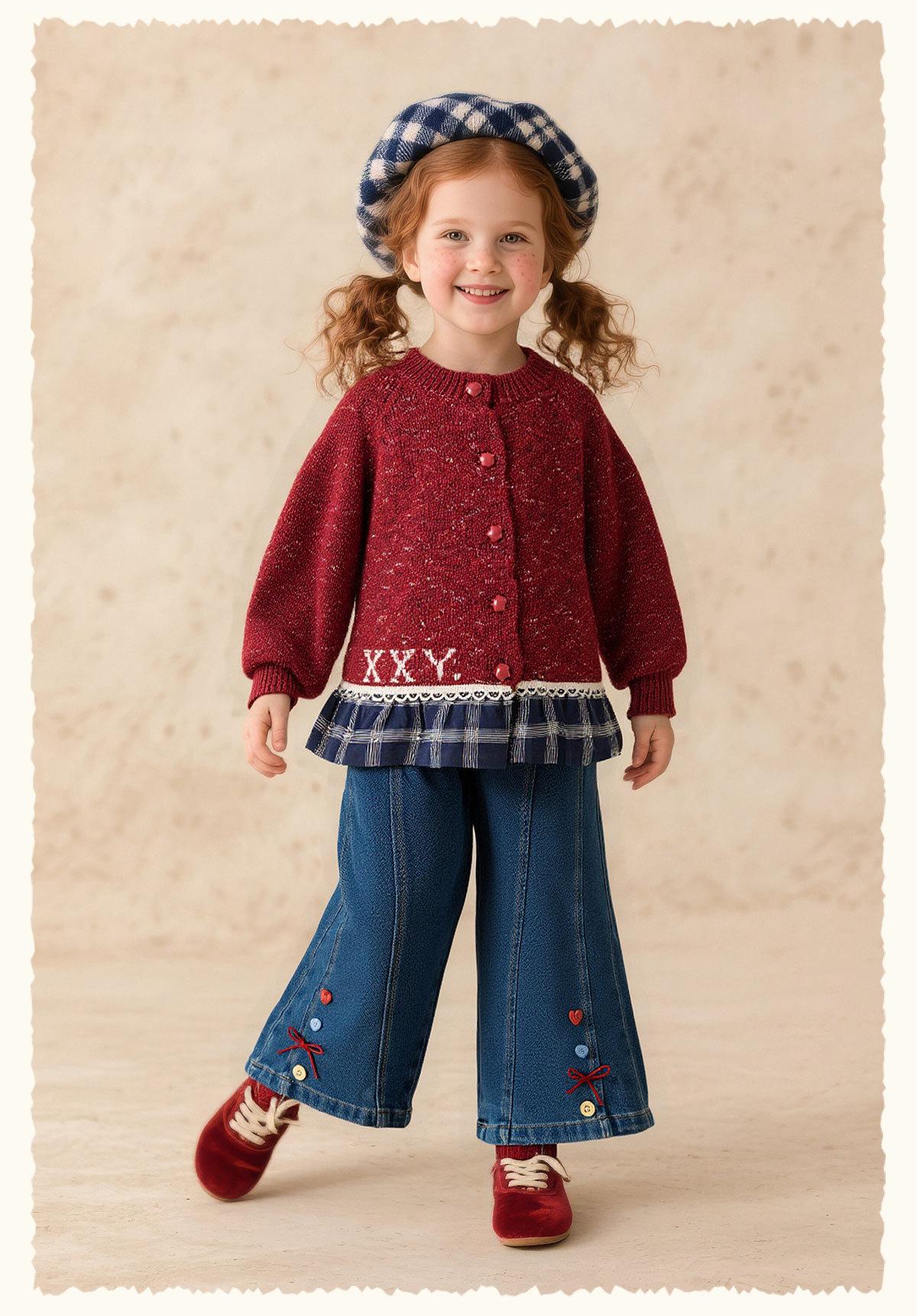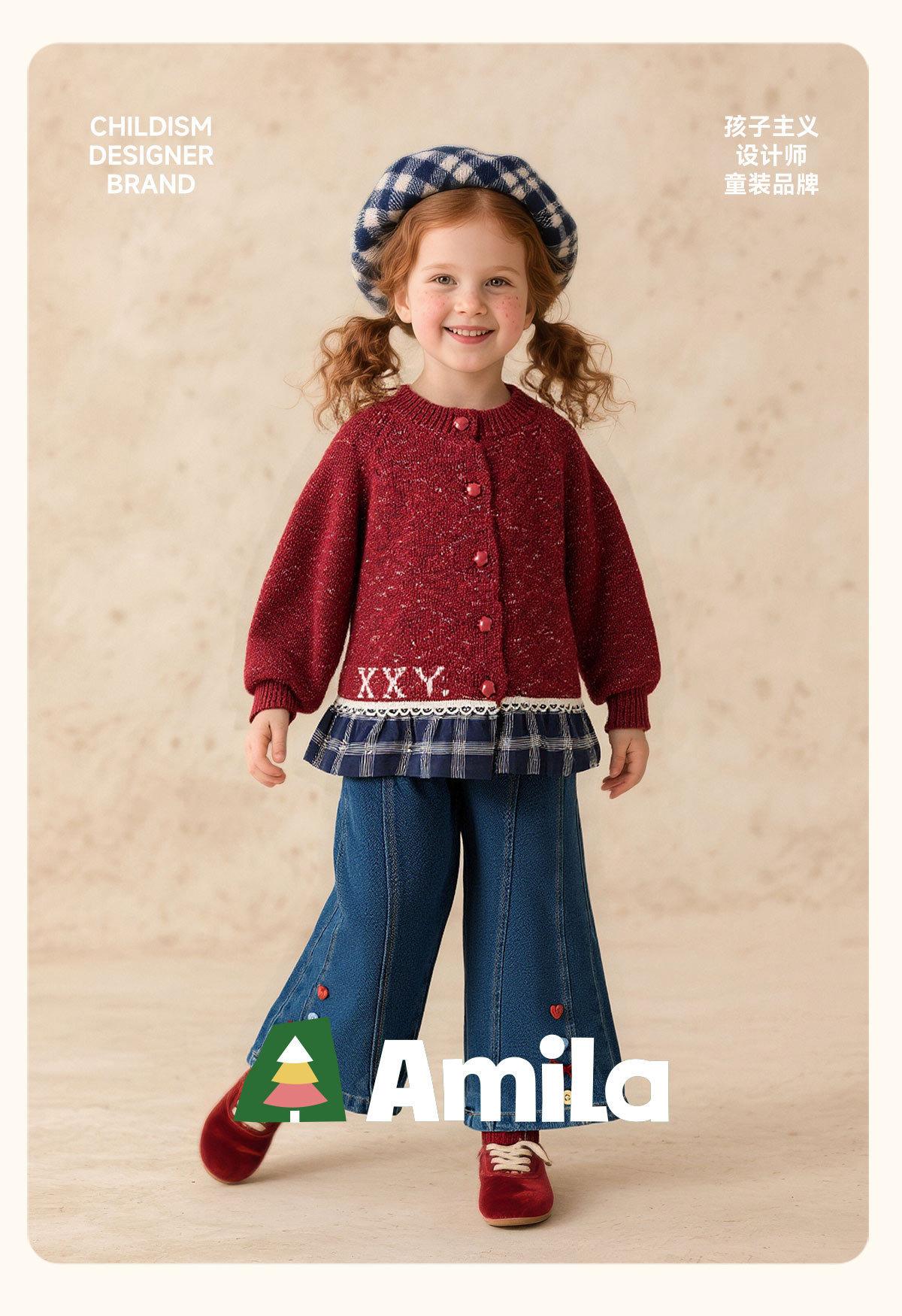 Ropa Infantil Amila Otoño 2025 Nuevo Suéter Cárdigan Casual Dulce para Niñas Bebé Encaje Exquisito Abrigo