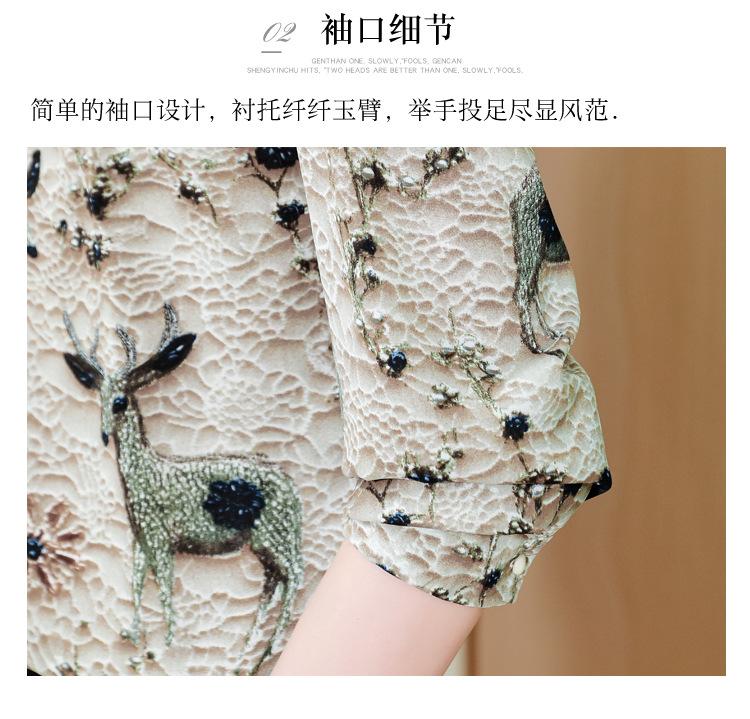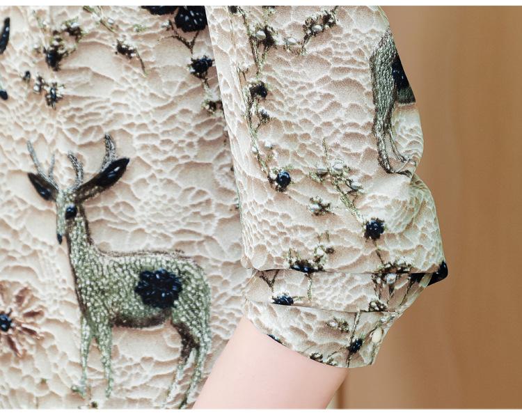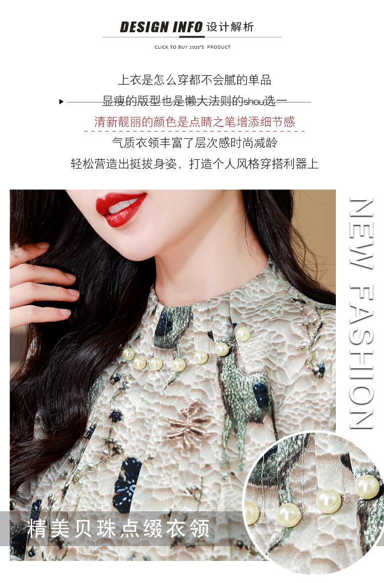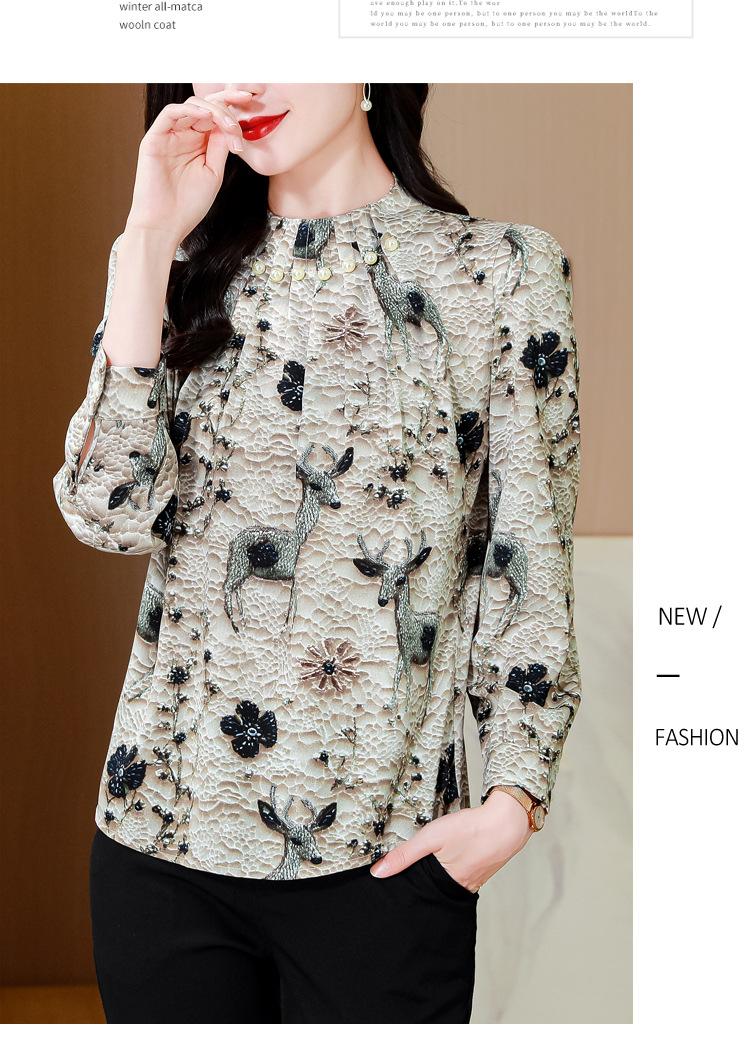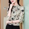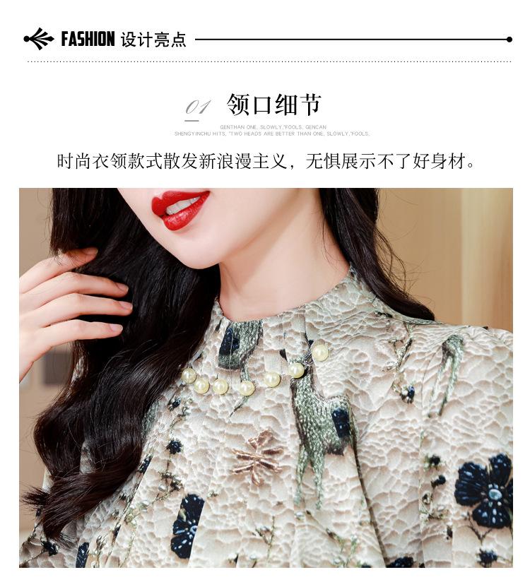 Nueva Camisa de Chifón de Otoño para Mujer con Cuello Alto de Satén, Estampado con Cuentas y Manga Larga, Camisa de Moda de Otoño para Mujer