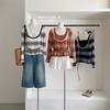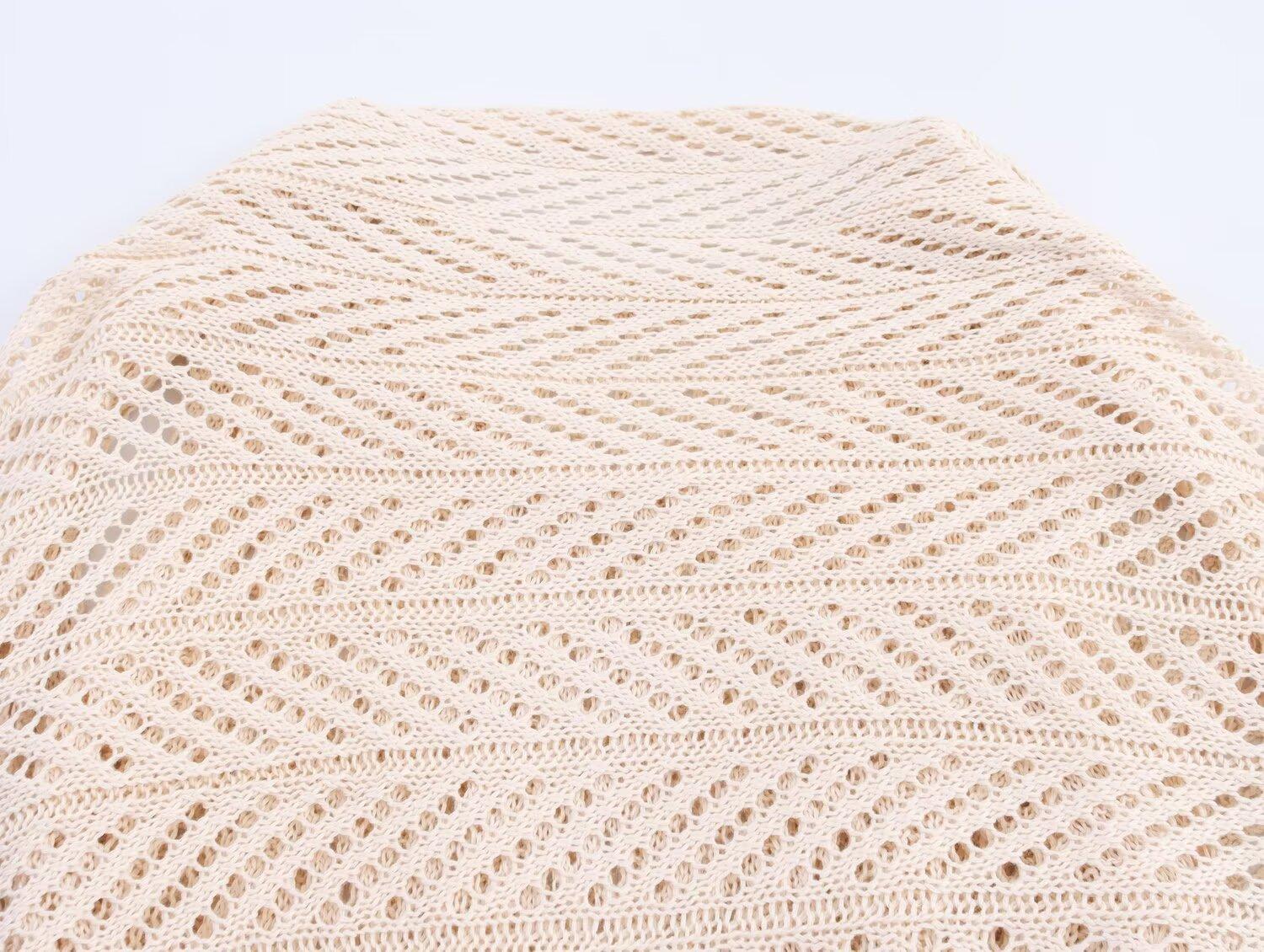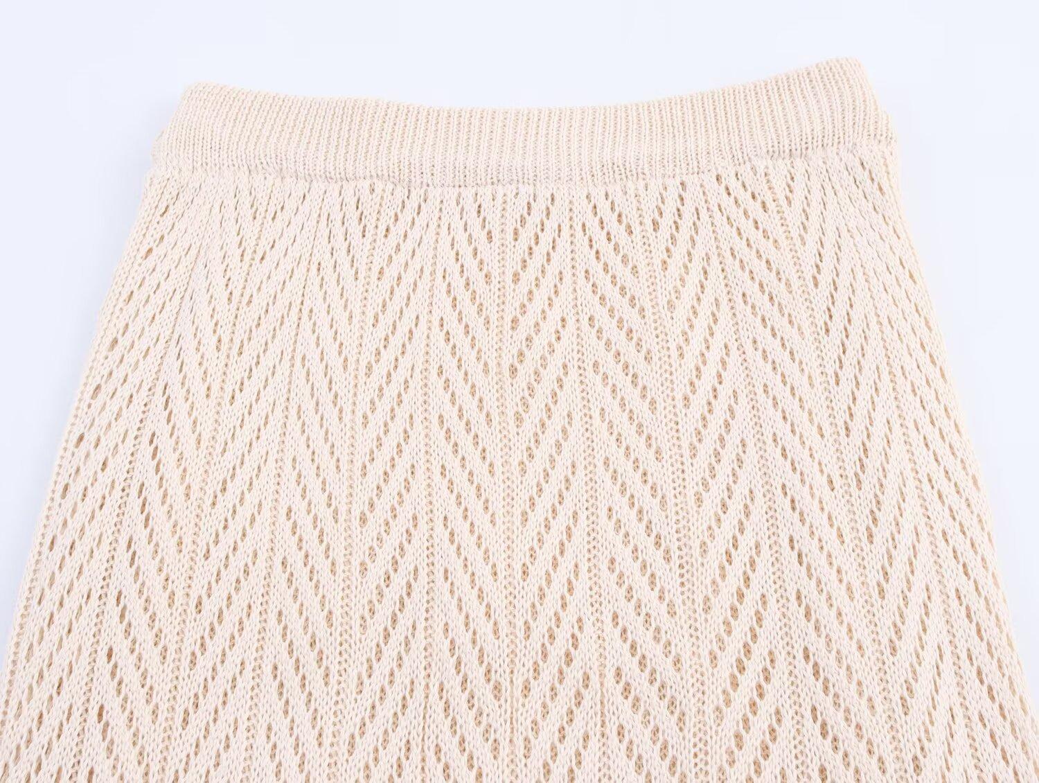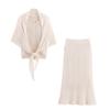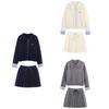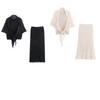 Ropa de Mujer Transfronteriza 2025 Top de Malla Jacquard Tejido + Falda Chaleco Traje Tejido de Tres Piezas Otoño