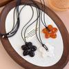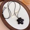 Moda Estilo Coreano Versátil Nicho Colgante de Flor Acrílico Transparente Collar de Cordón Negro Cadena Clavícula Gargantilla con Cordón para Mujer