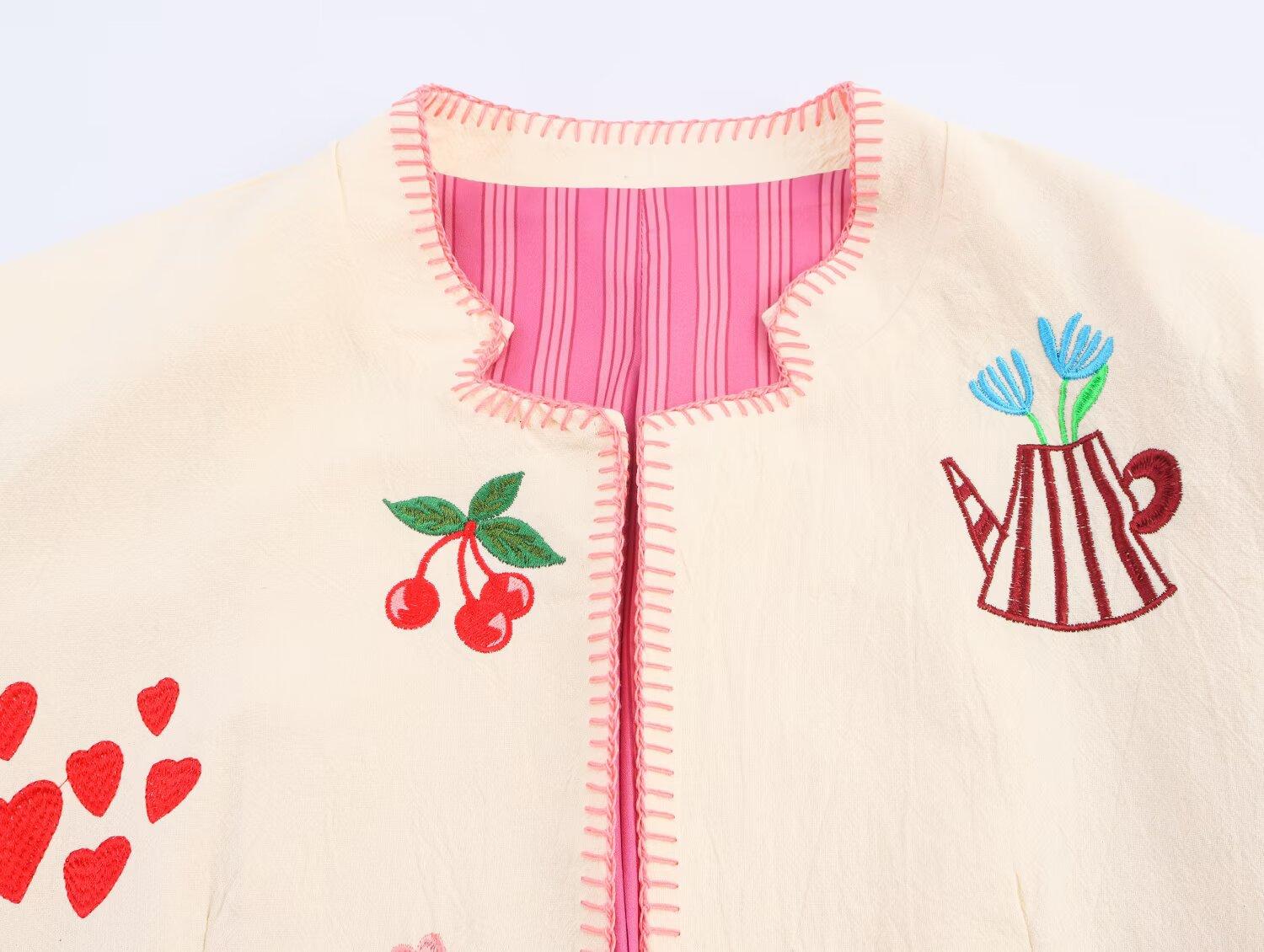 Chaqueta Corta de Mujer Qiuming Line Bordado Estilo Étnico Bordado Floral Personalidad Otoño 2025 Nuevo Europeo y Americano Transfronterizo