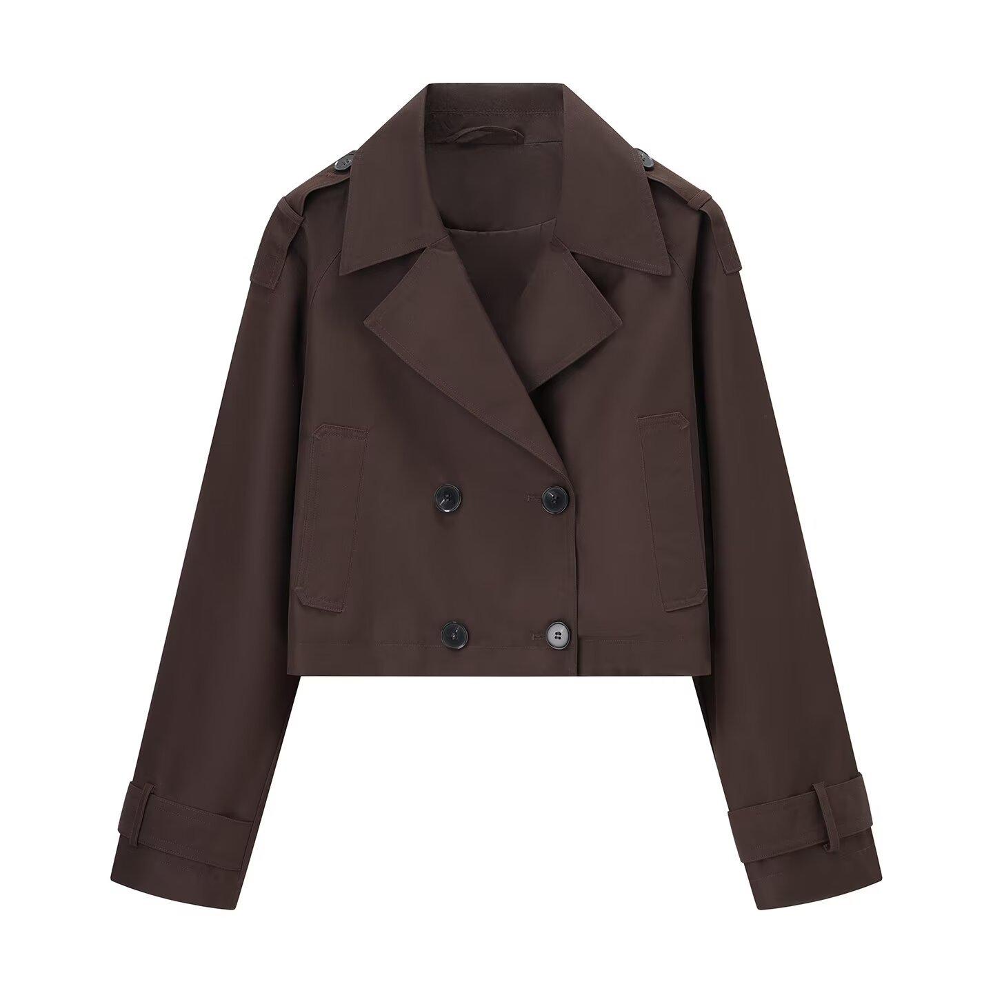 2802 brown short trench coat