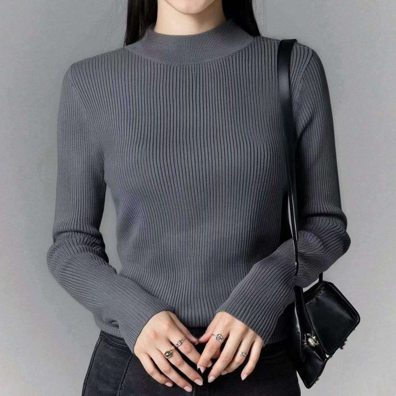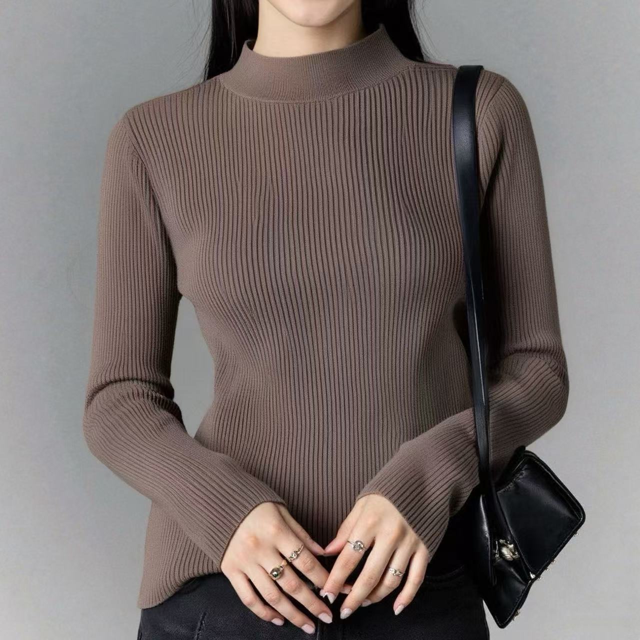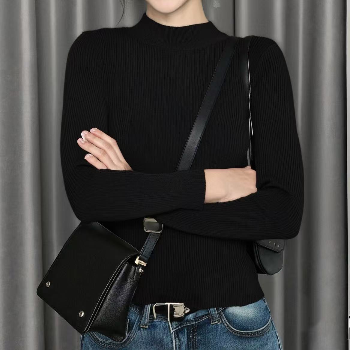 Nuevo Suéter Interior Ajustado de Cuello Medio Alto para Otoño e Invierno para Mujer, Moderno de Manga Larga Tejido para Otoño e Invierno