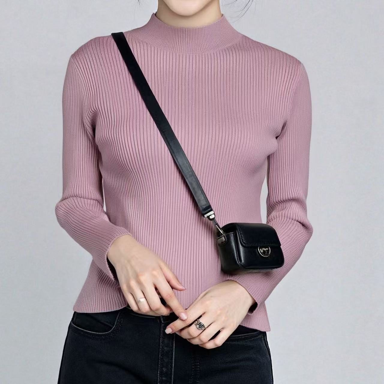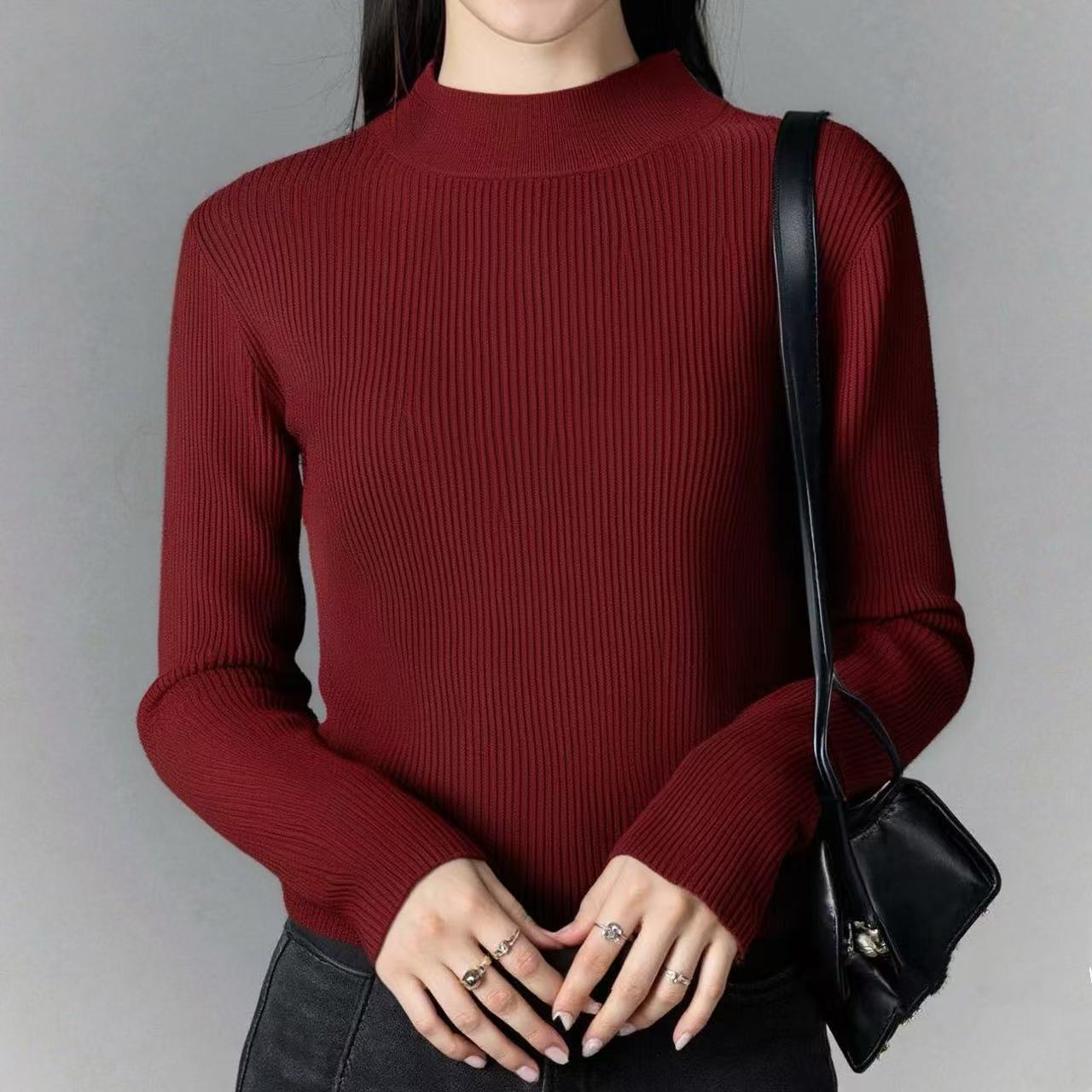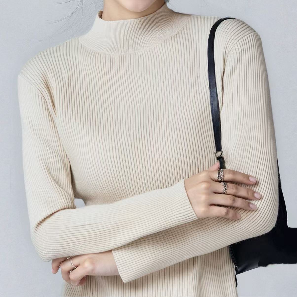 Nuevo Suéter Interior Ajustado de Cuello Medio Alto para Otoño e Invierno para Mujer, Moderno de Manga Larga Tejido para Otoño e Invierno