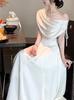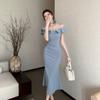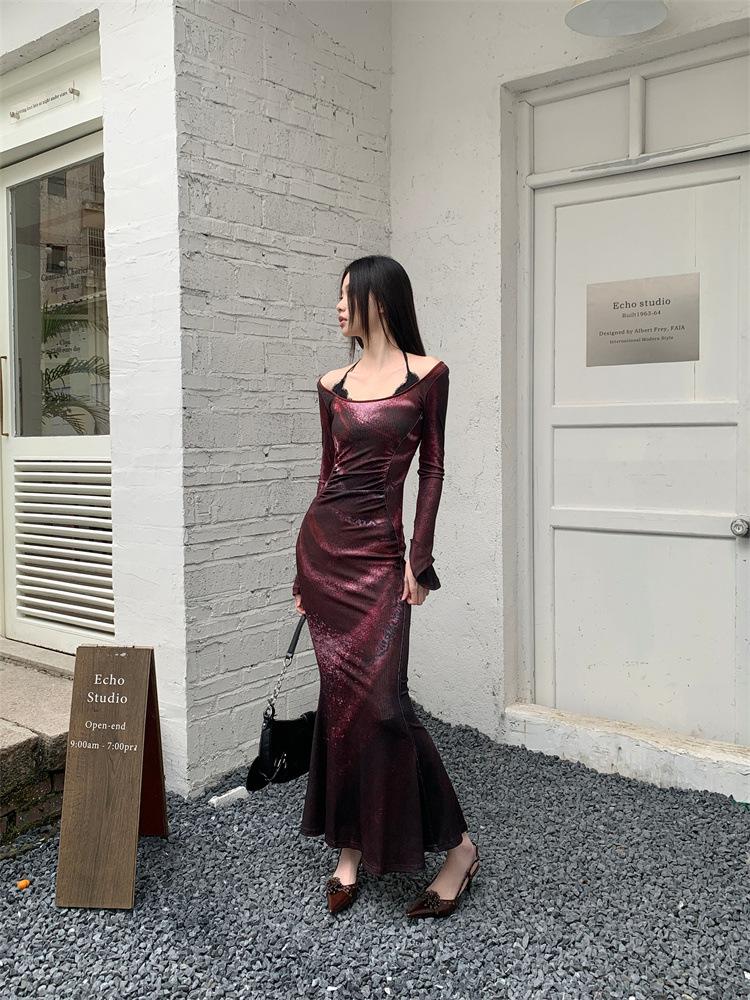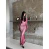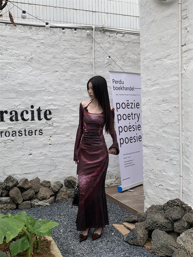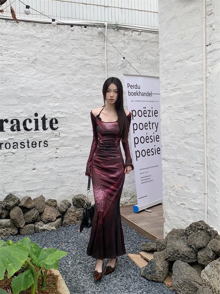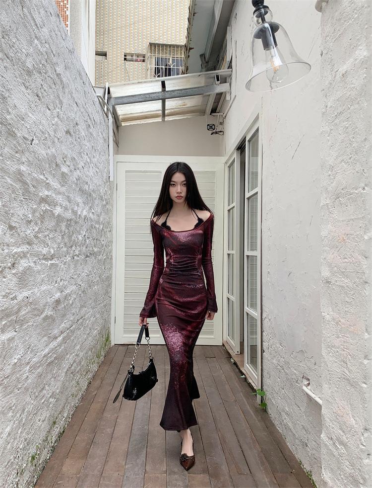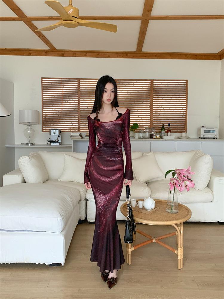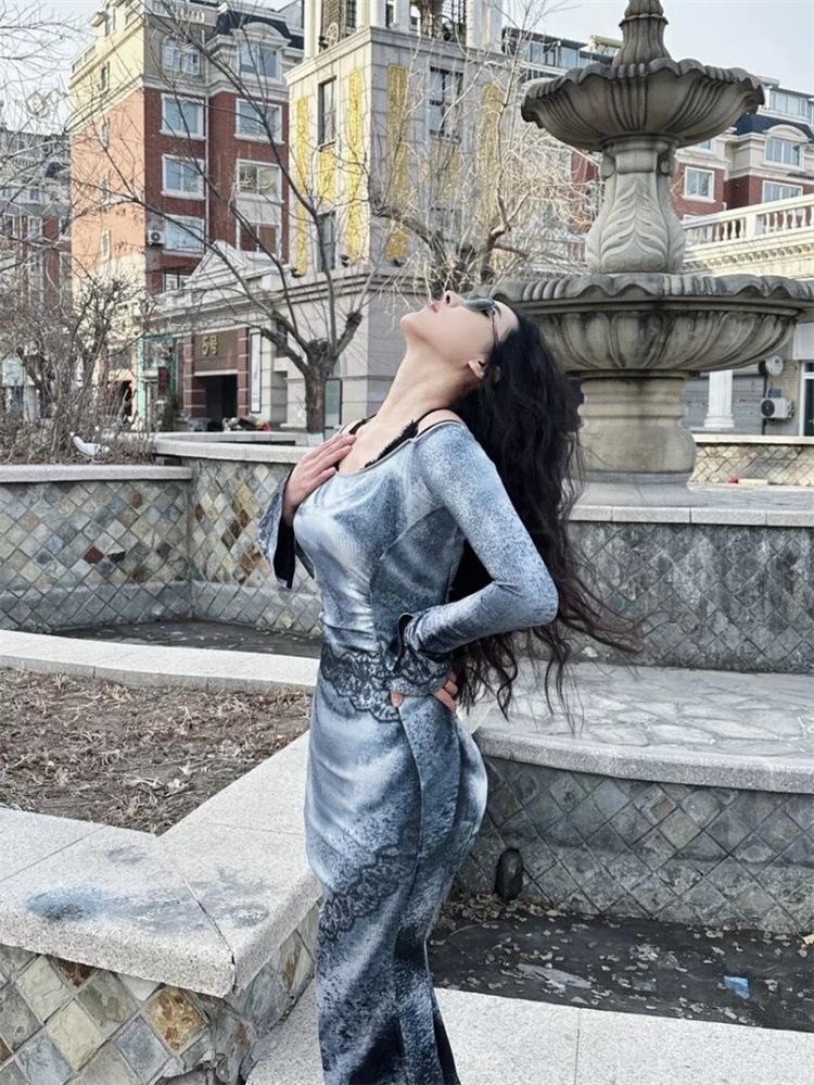 Foto Real de Vestido Estampado de Encaje de Dos Piezas Falso en Existencia para Mujer con Falda de Cola de Pez con Volantes