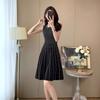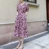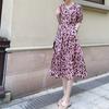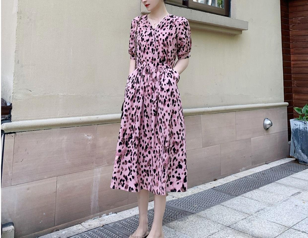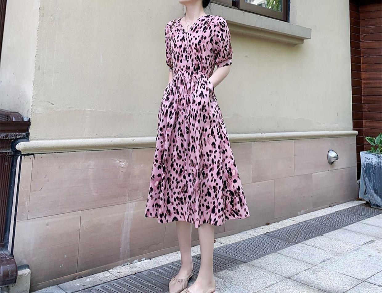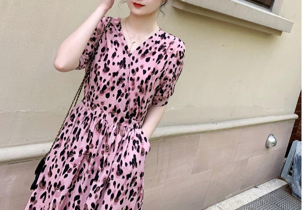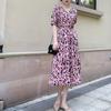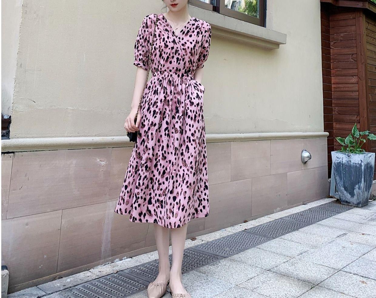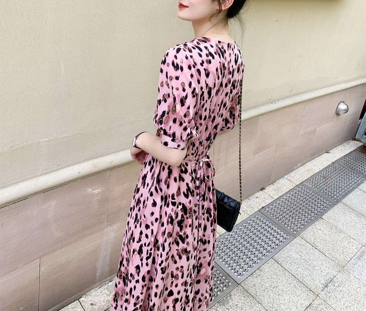 Verano Nuevo Vestido de Largo Medio con Aspecto Adelgazante de Cintura y Manga Corta Cuello en V Elegante Francés Casual Falda Slim para Personas Pequeñas