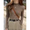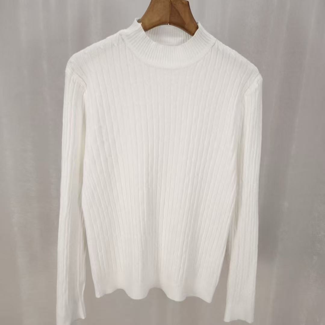 Nuevo Otoño/Invierno Chica Caliente Cuello Semi-Alto Manga Larga Suéter Base Tejido Ropa de Mujer Ajustado Negro Capa Interior Top de Gama Alta