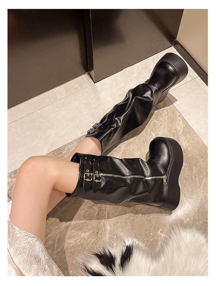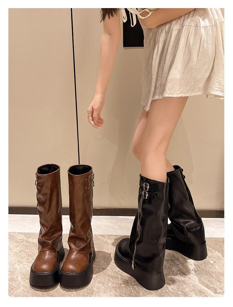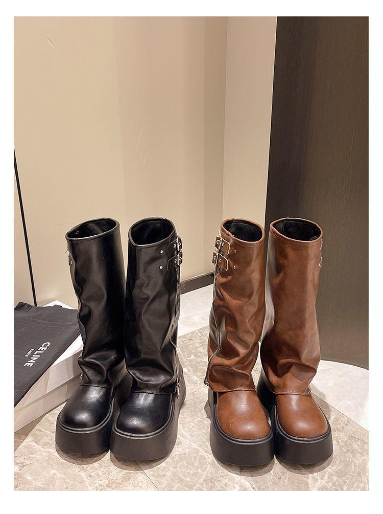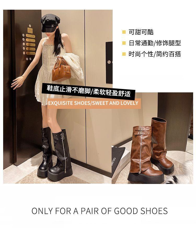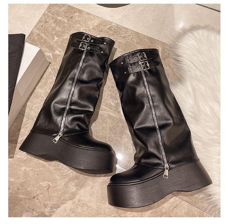 Pero Botas Largas hasta la Rodilla Botas de Altura Pequeña 2024 Nueva Moda Femenina Fondo Grueso Pantalones Plataforma Botas de Caballero
