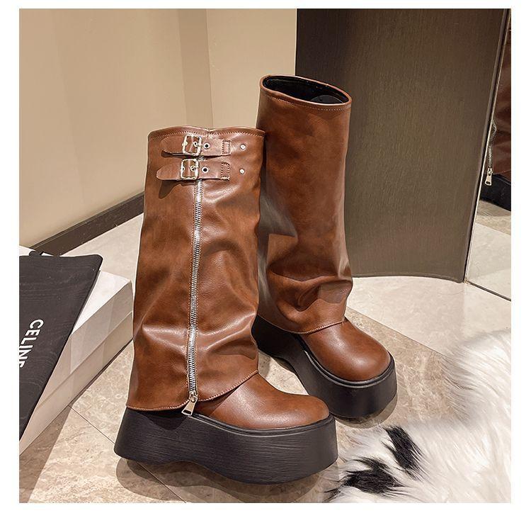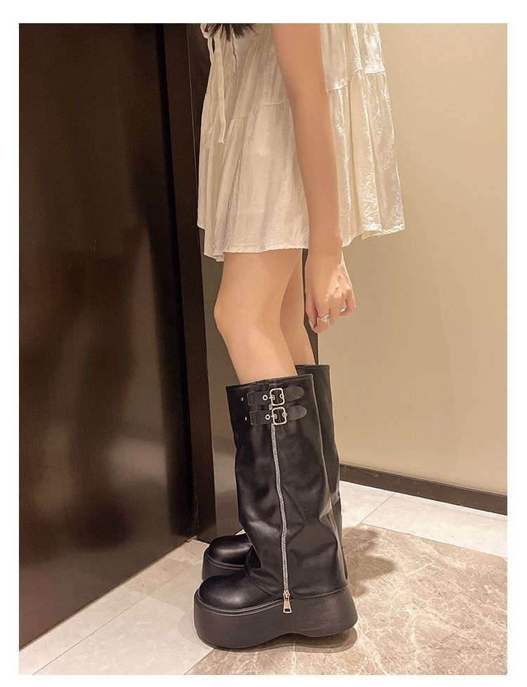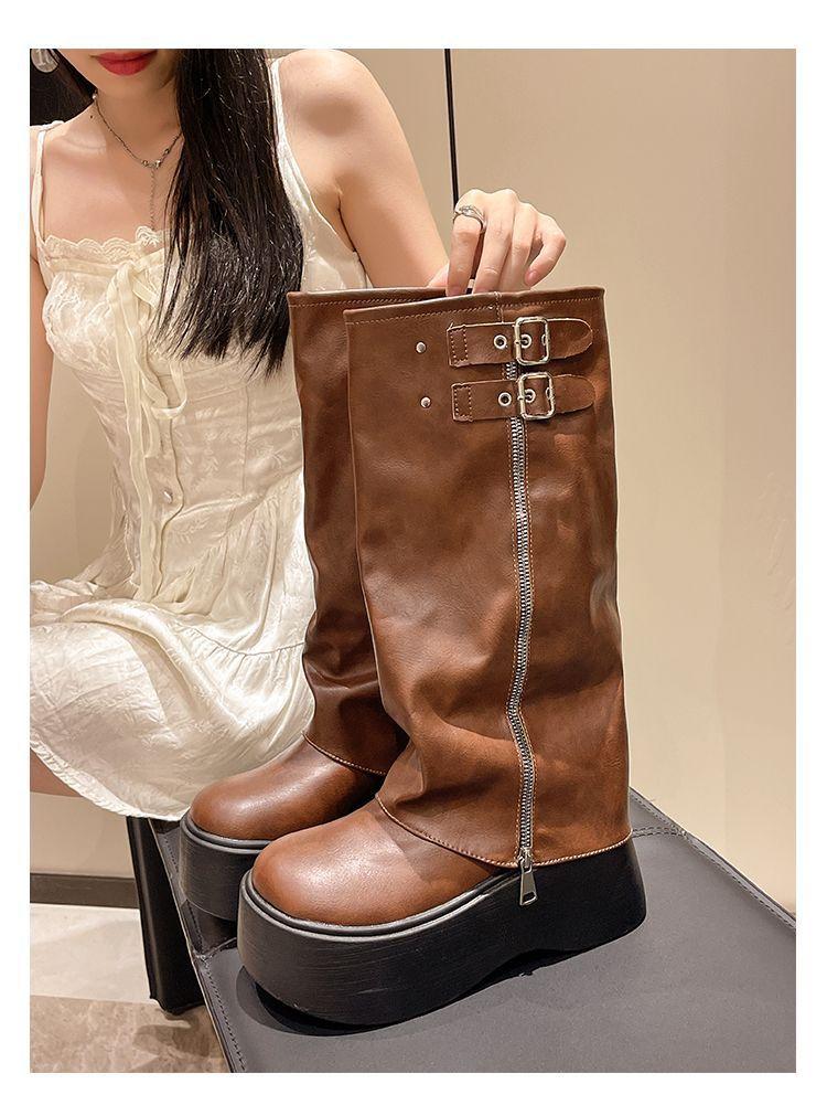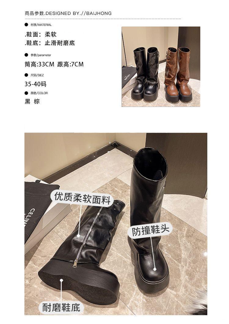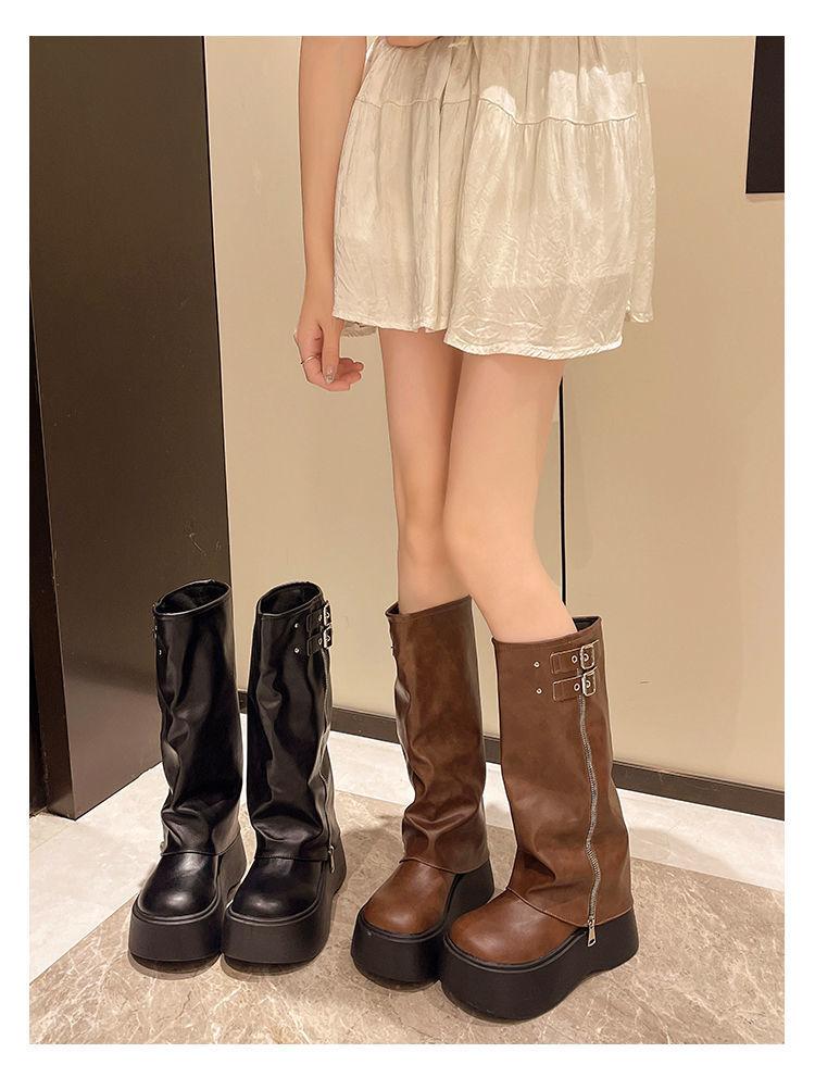 Pero Botas Largas hasta la Rodilla Botas de Altura Pequeña 2024 Nueva Moda Femenina Fondo Grueso Pantalones Plataforma Botas de Caballero