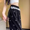 Diseño Casual Cinta de Encaje Pantalones Casuales de Pierna Ancha para Mujer Verano Nuevo Estilo Retro Cintura Alta Slim Rectos