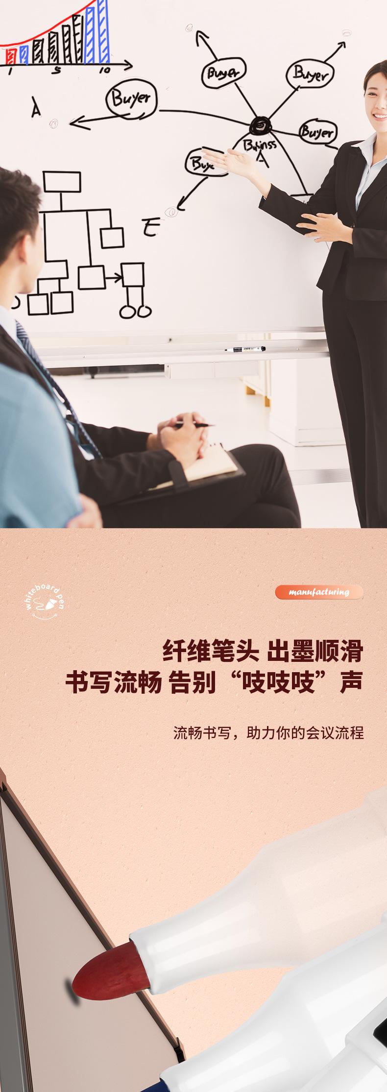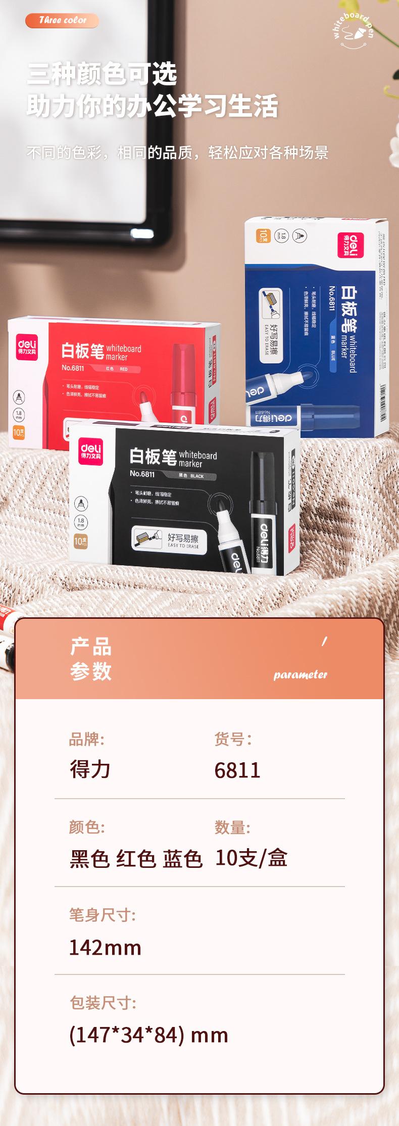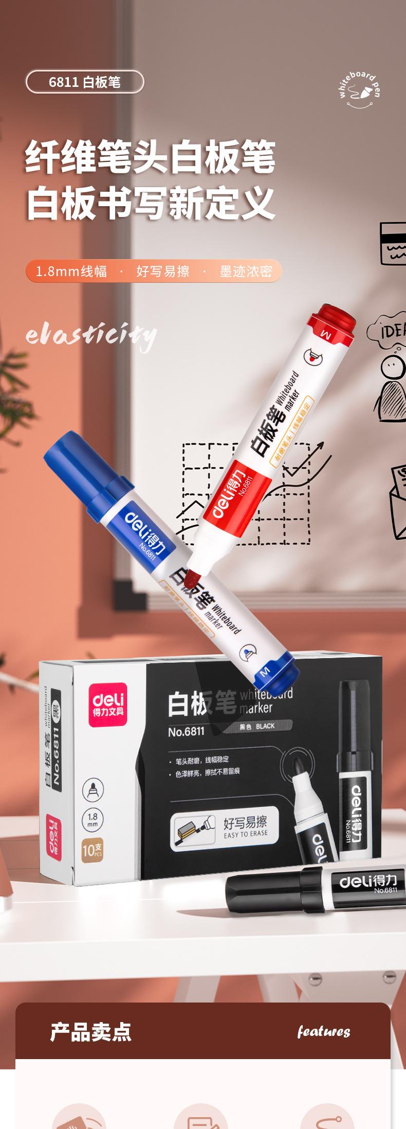 Deli Marcador para Pizarrón Blanco 6811 Negro Borrable Fácil de Borrar Marcador para Pizarrón Blanco Pluma Marcadora Pluma de Punta Fina Gran Capacidad Oficina Negocios