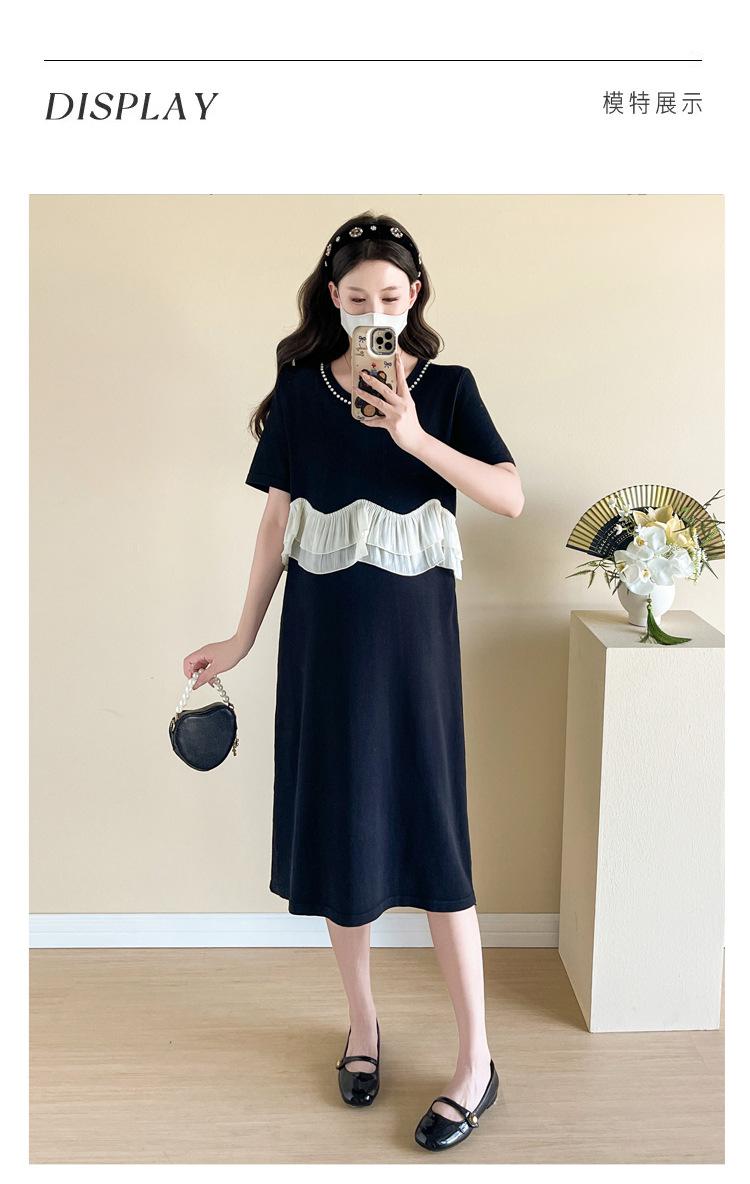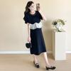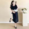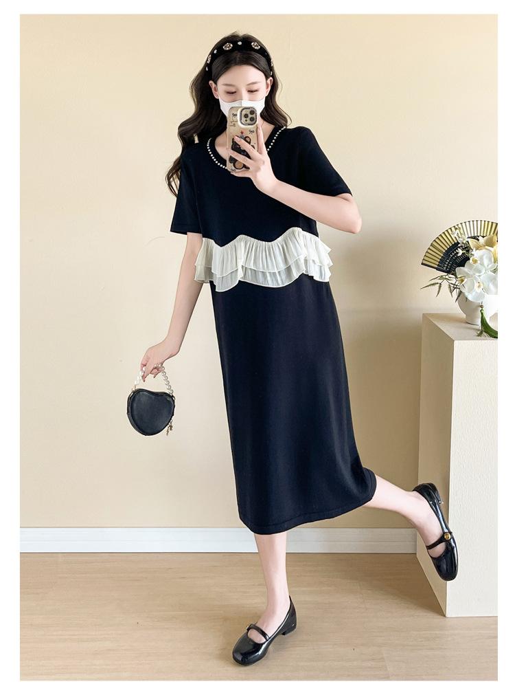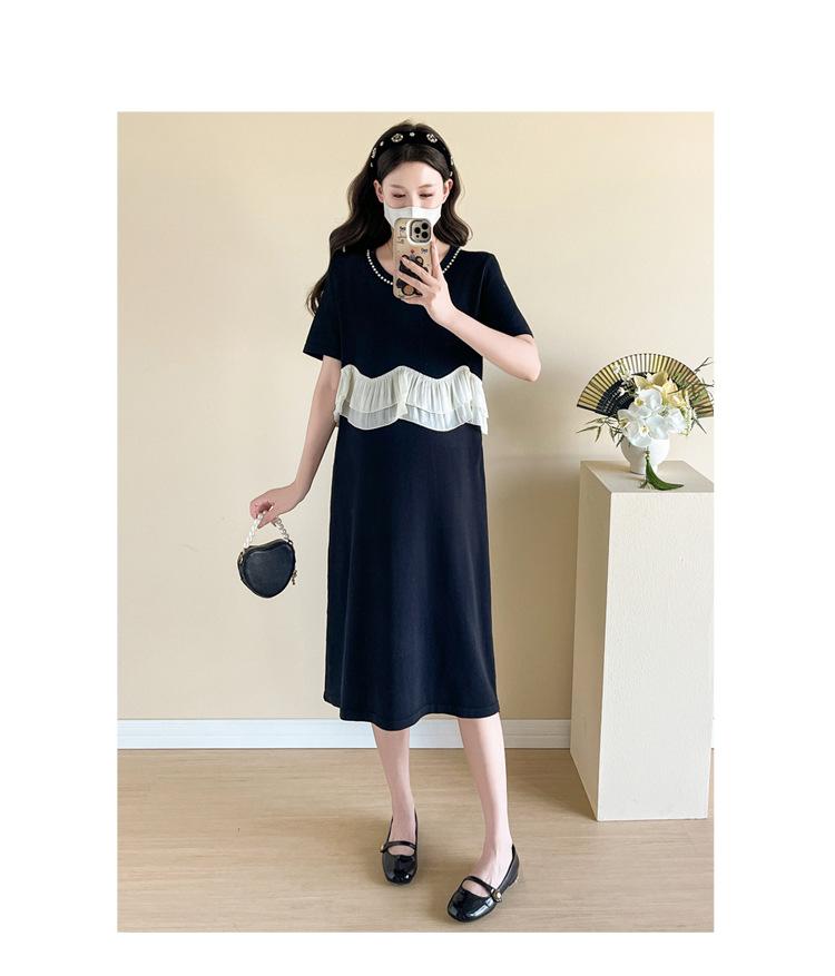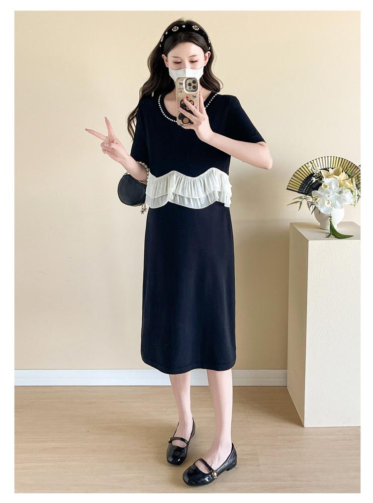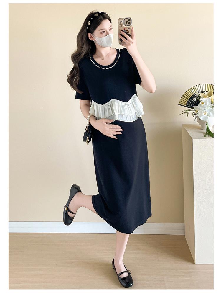 Ropa de Maternidad 2025 Nuevo Verano Estilo Coreano Moda y Dulce Empalmado Elegante Suelto Largo Medio Vestido de Maternidad
