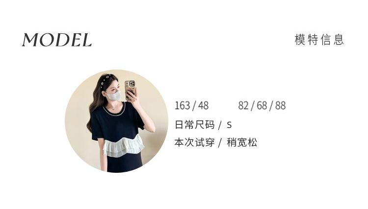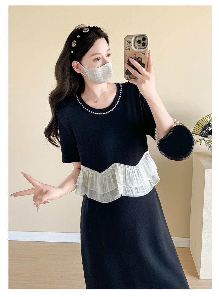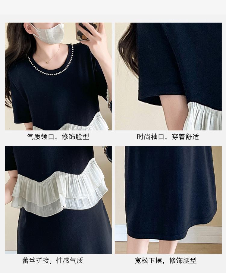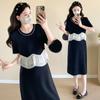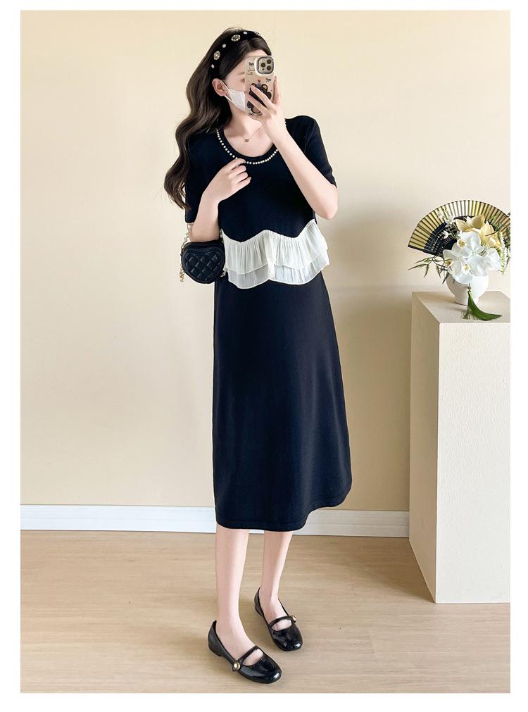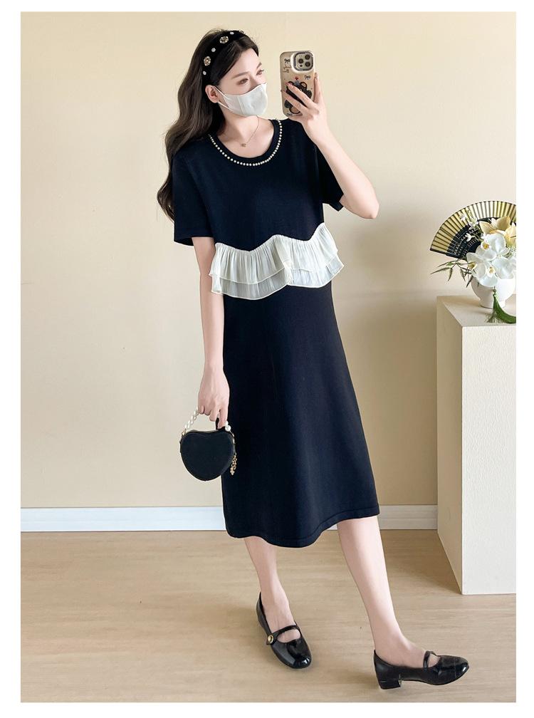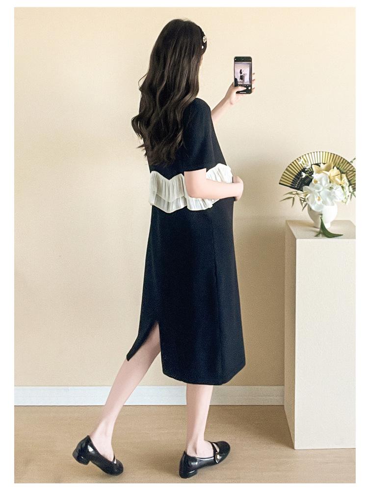 Ropa de Maternidad 2025 Nuevo Verano Estilo Coreano Moda y Dulce Empalmado Elegante Suelto Largo Medio Vestido de Maternidad