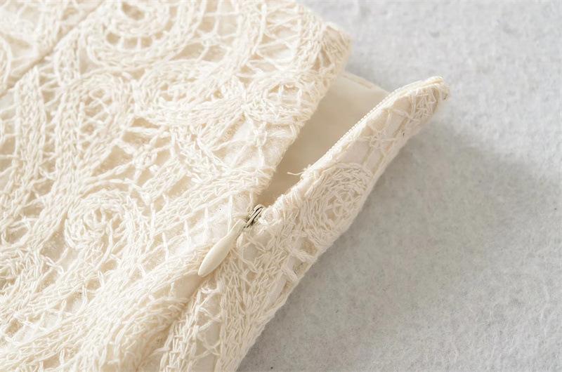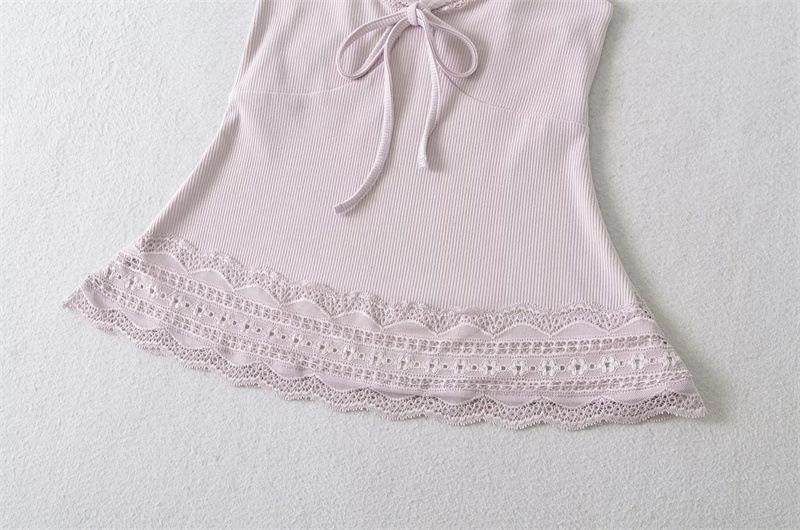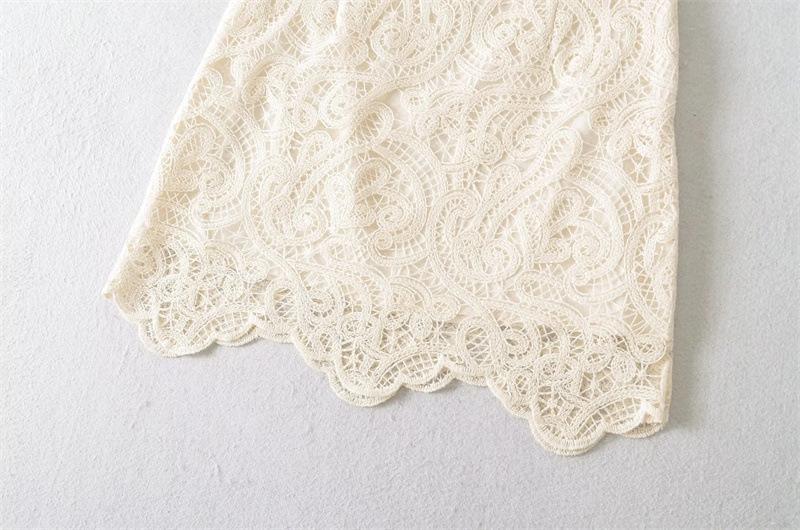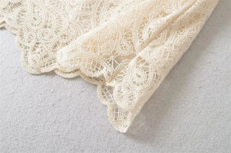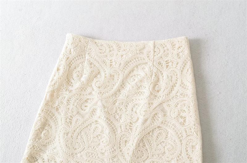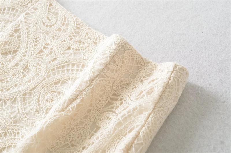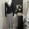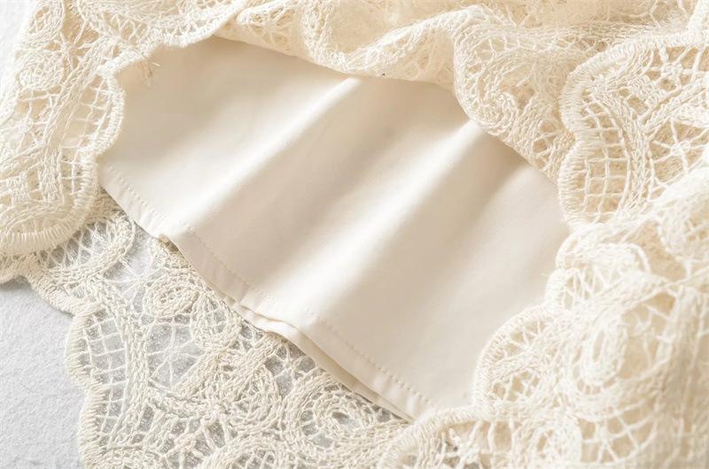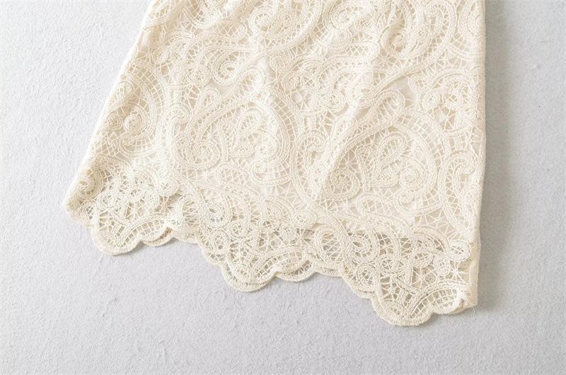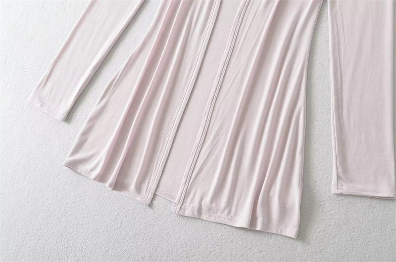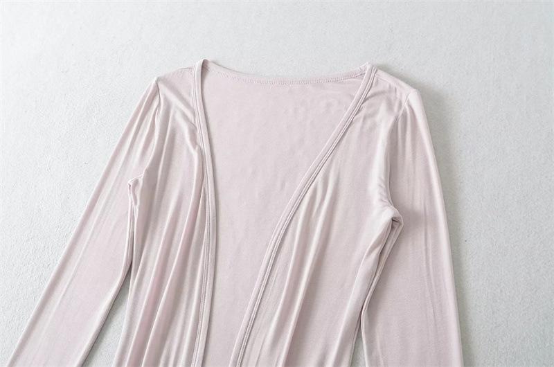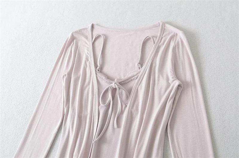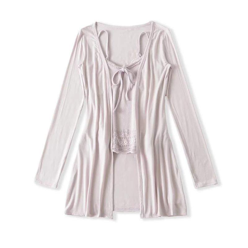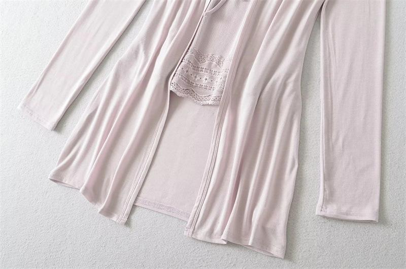 Conjunto de Tres Piezas de Estilo Puro y Sexy Camisola con Cuello en V con Encaje + Cárdigan Suelto para Protección Solar + Falda Midi Ajustada a las Caderas