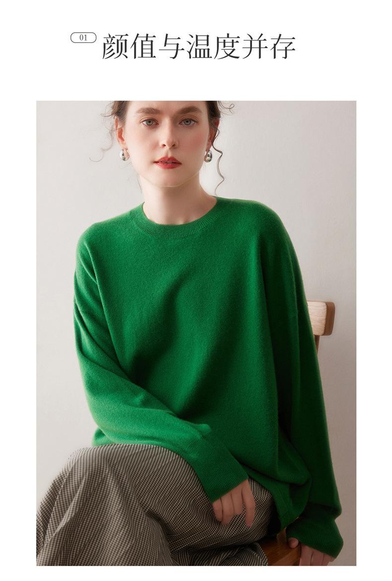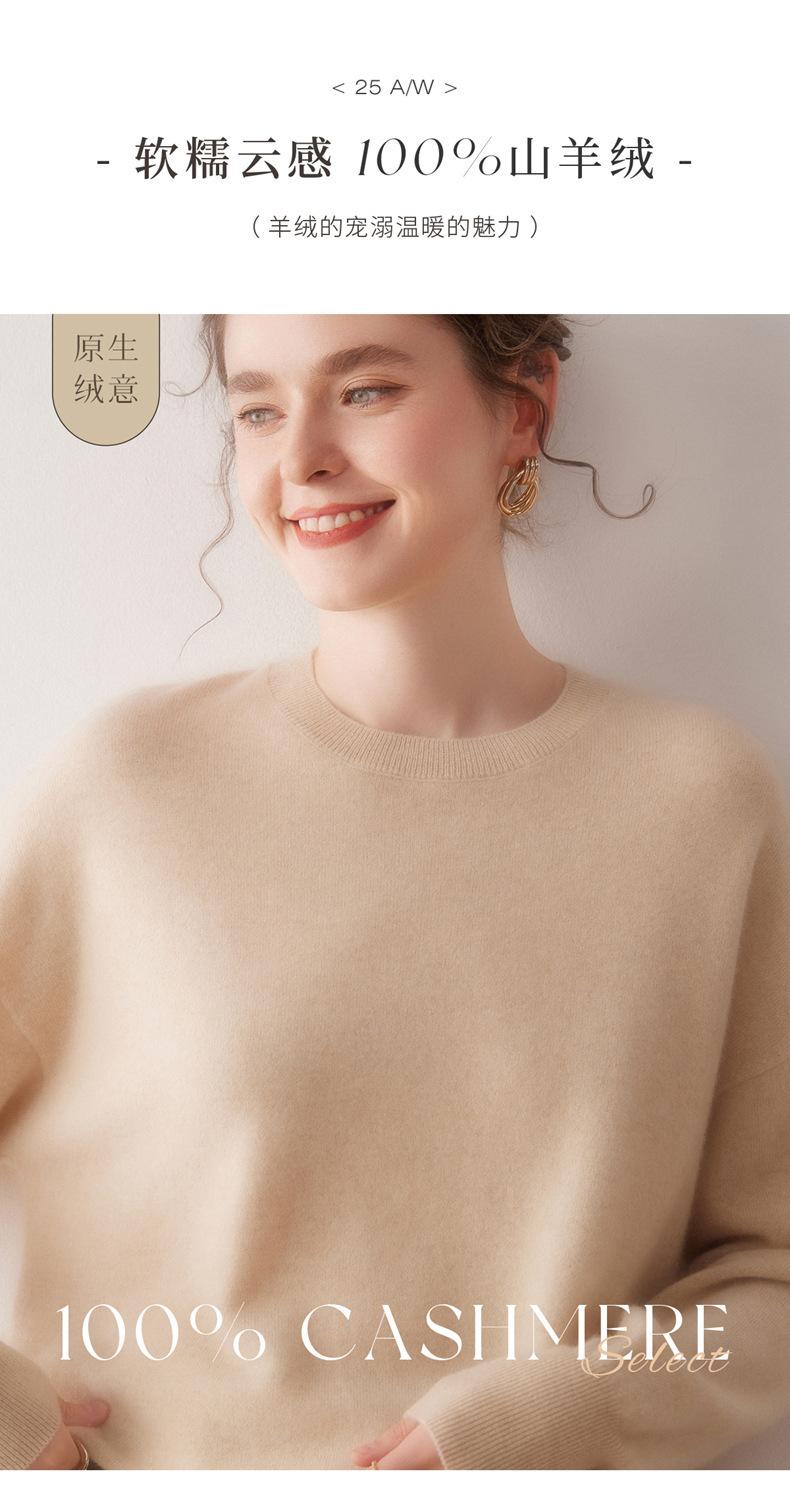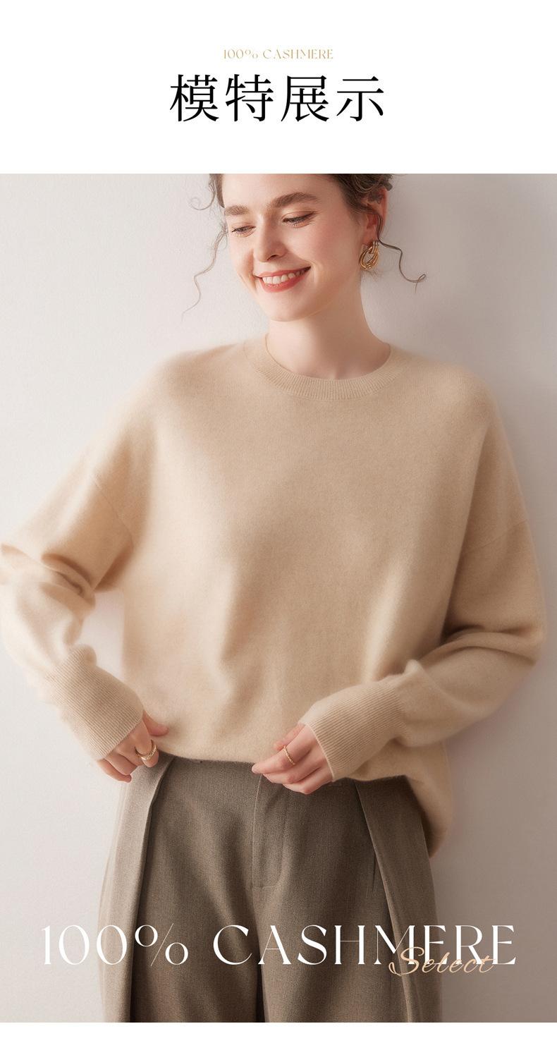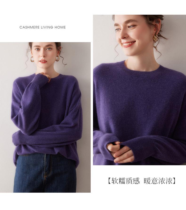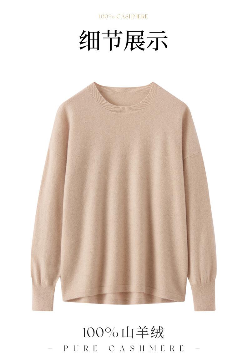 Suéter de Cachemira para Mujer 100% Cachemira Pura Otoño e Invierno Nuevo Suéter de Cuello Redondo Siete Agujas Espesado Estilo Holgazán Camisa Base Tejida