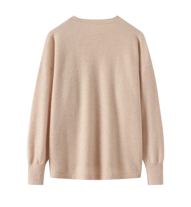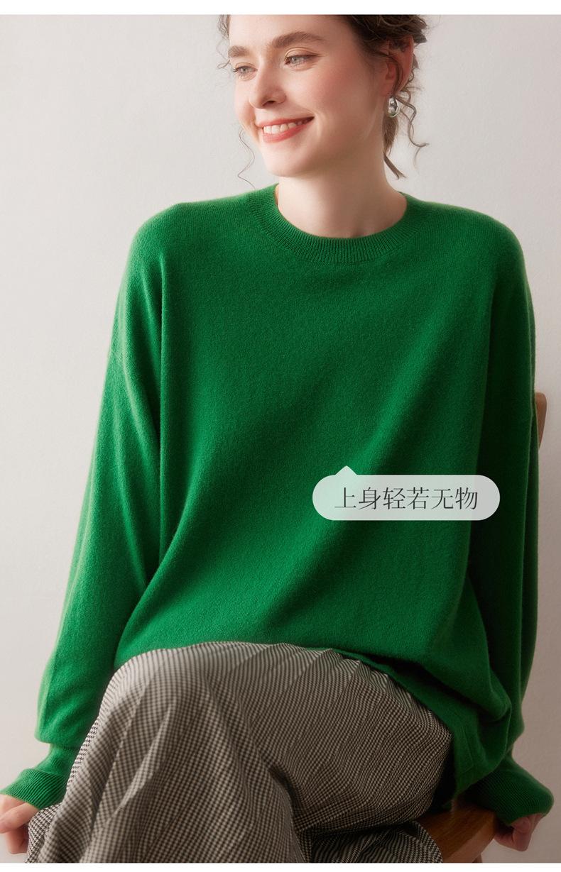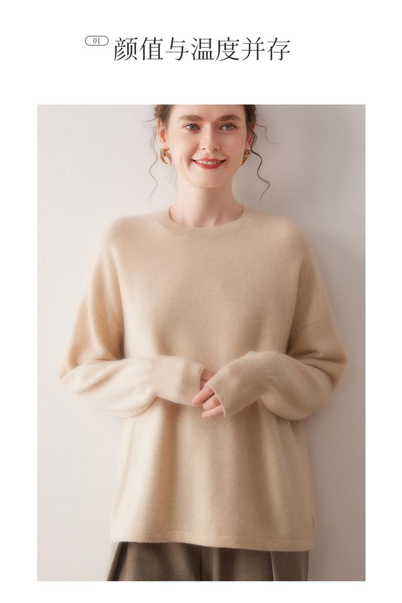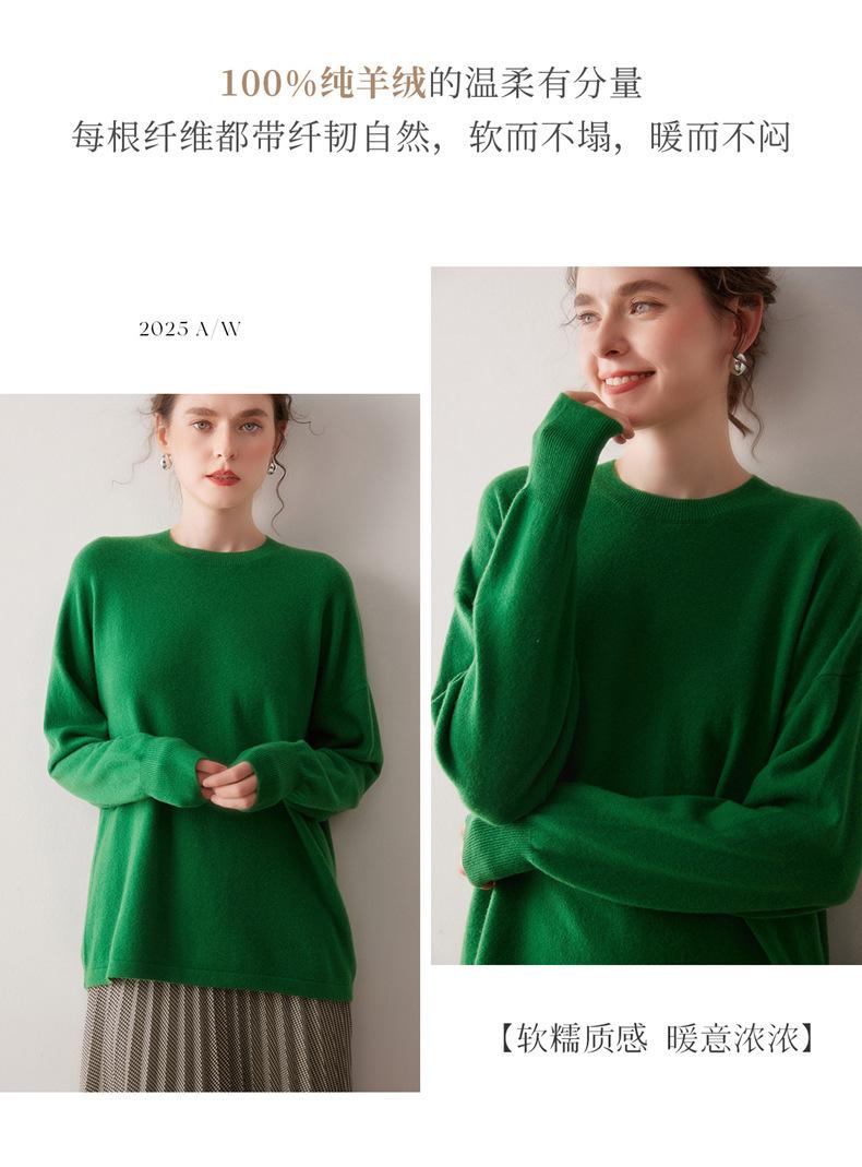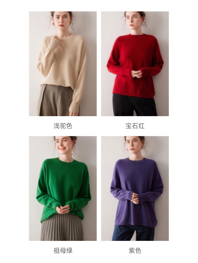 Suéter de Cachemira para Mujer 100% Cachemira Pura Otoño e Invierno Nuevo Suéter de Cuello Redondo Siete Agujas Espesado Estilo Holgazán Camisa Base Tejida