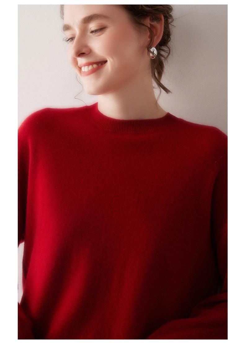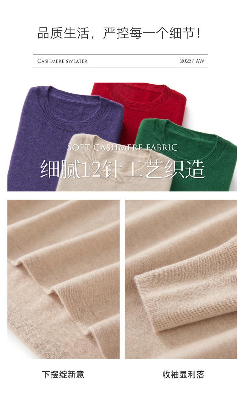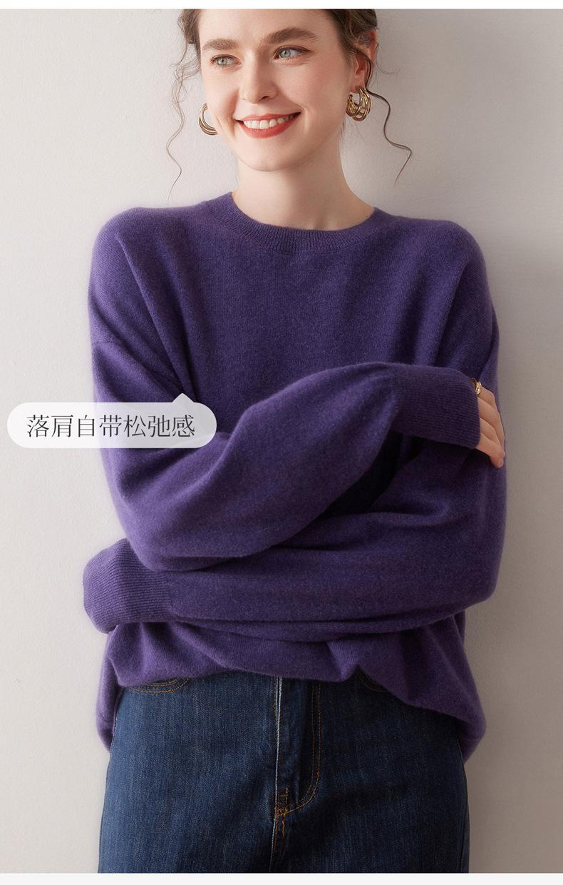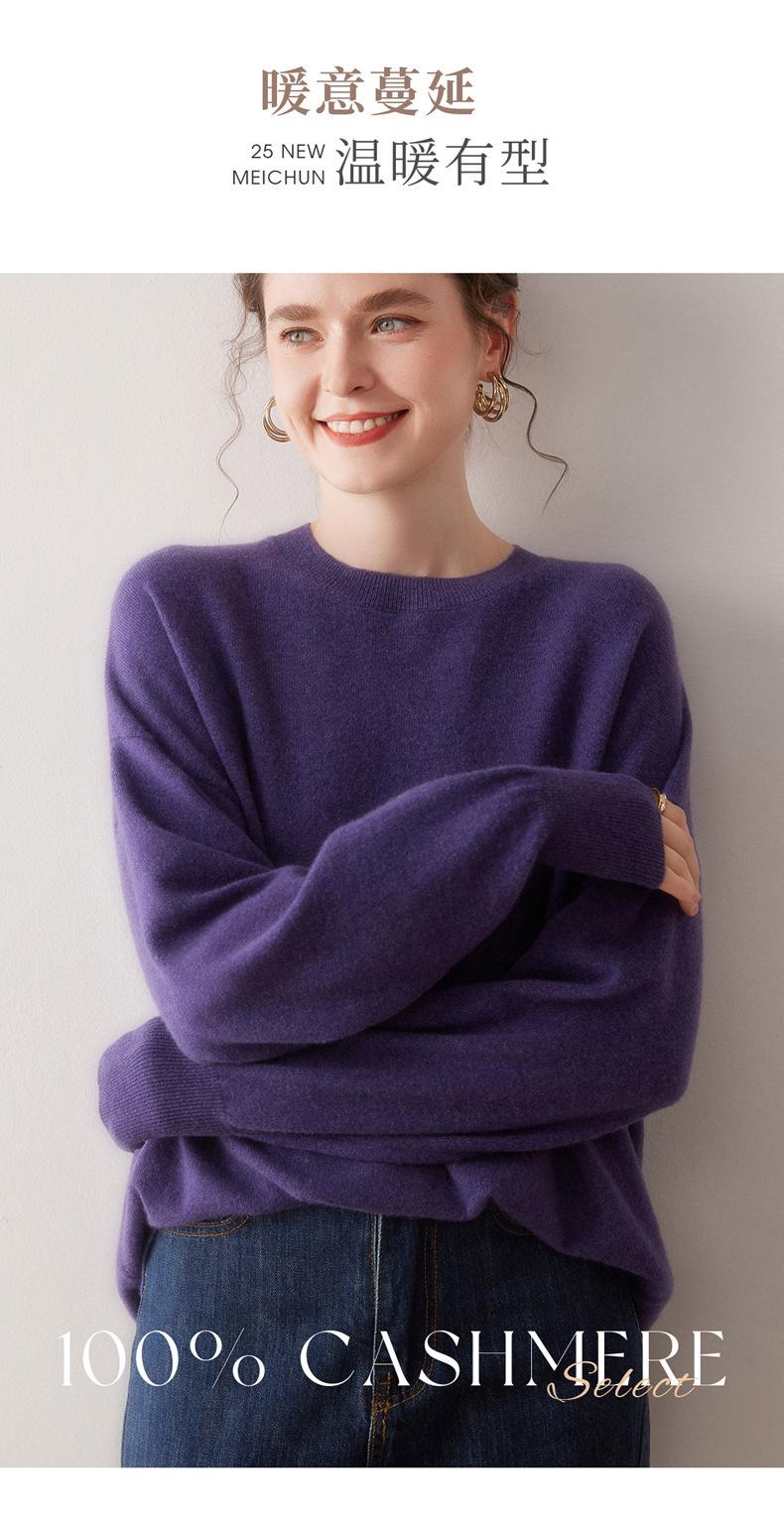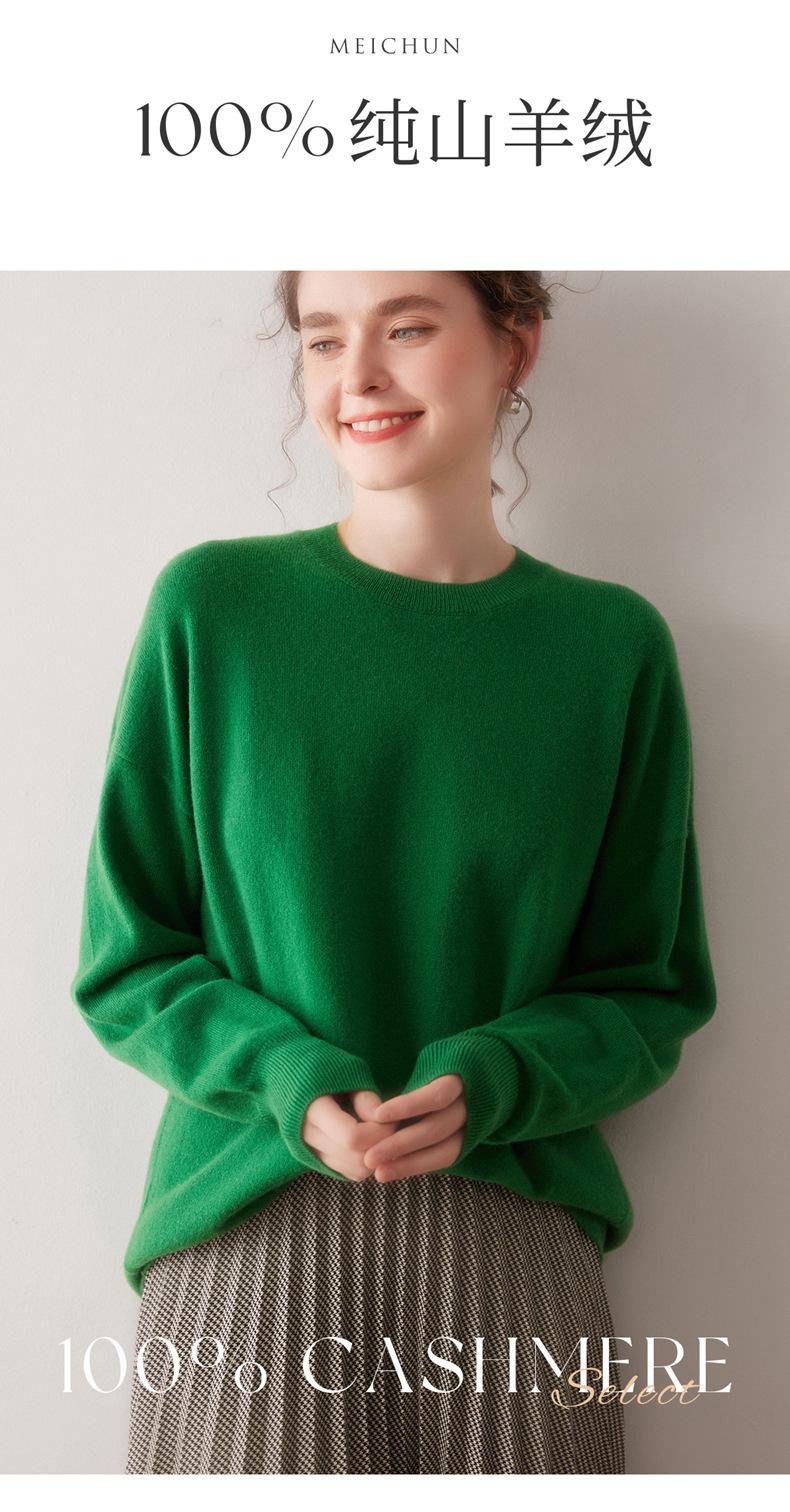 Suéter de Cachemira para Mujer 100% Cachemira Pura Otoño e Invierno Nuevo Suéter de Cuello Redondo Siete Agujas Espesado Estilo Holgazán Camisa Base Tejida