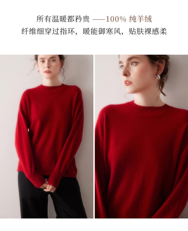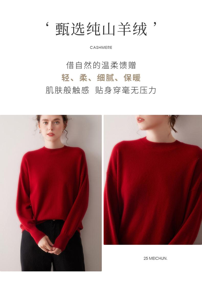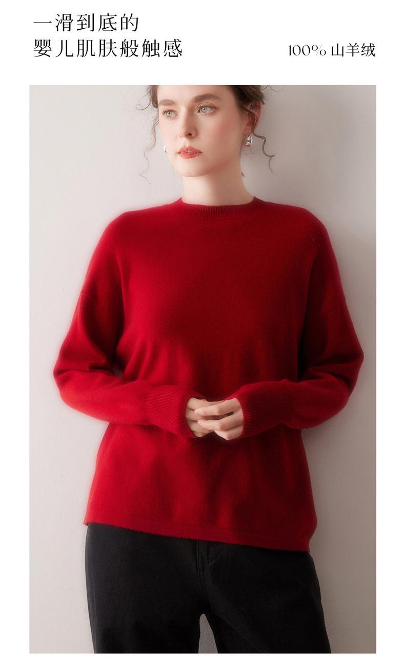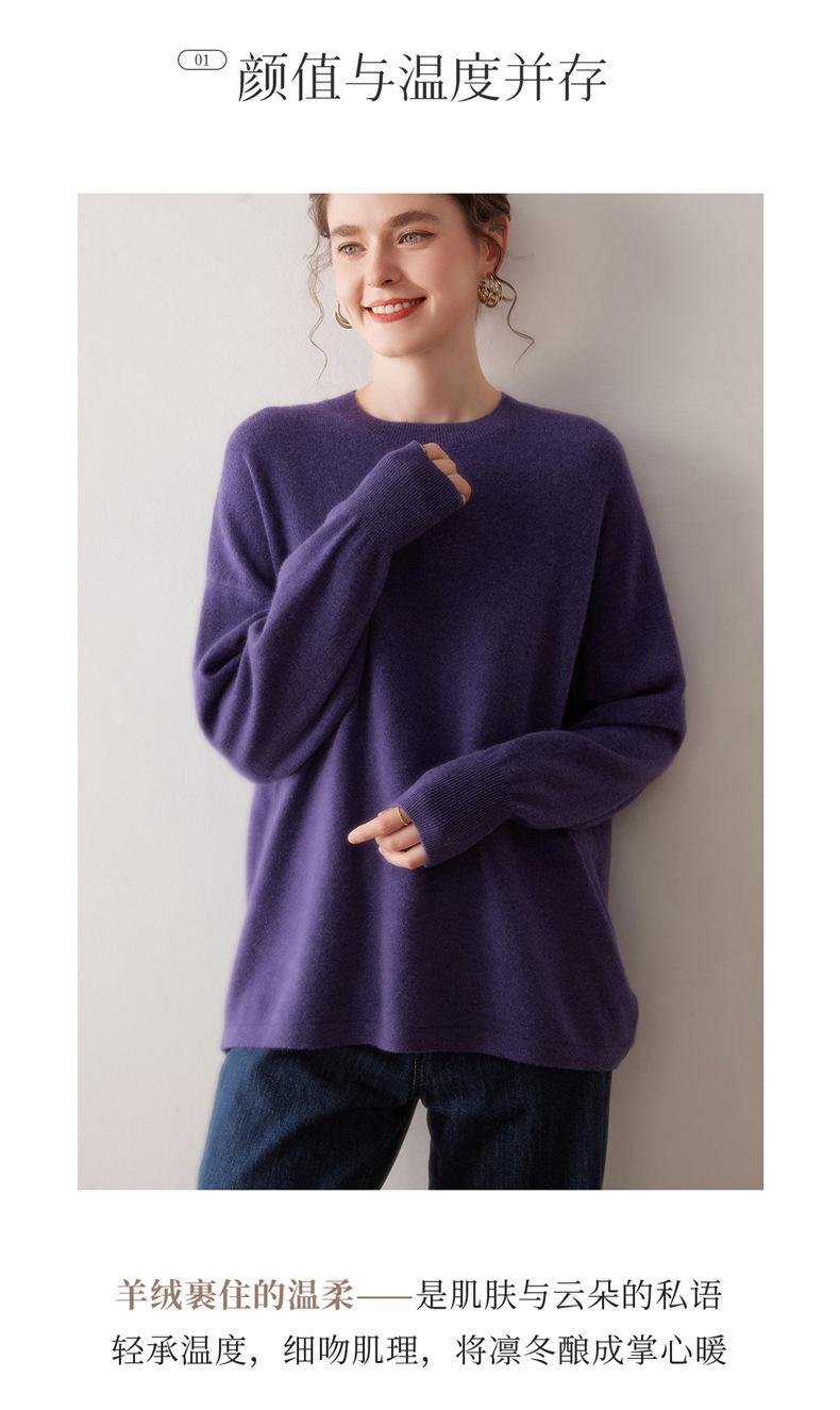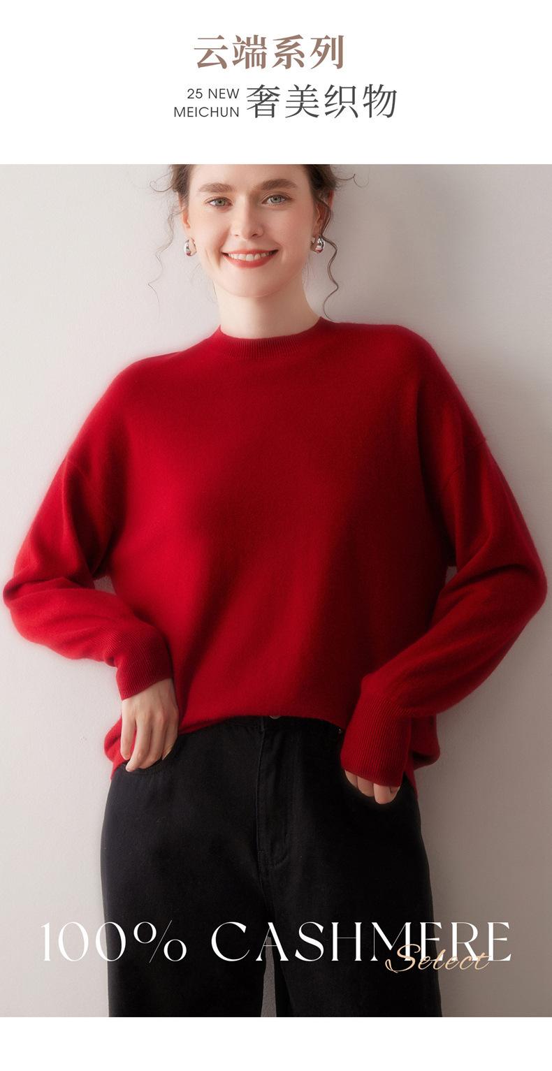 Suéter de Cachemira para Mujer 100% Cachemira Pura Otoño e Invierno Nuevo Suéter de Cuello Redondo Siete Agujas Espesado Estilo Holgazán Camisa Base Tejida