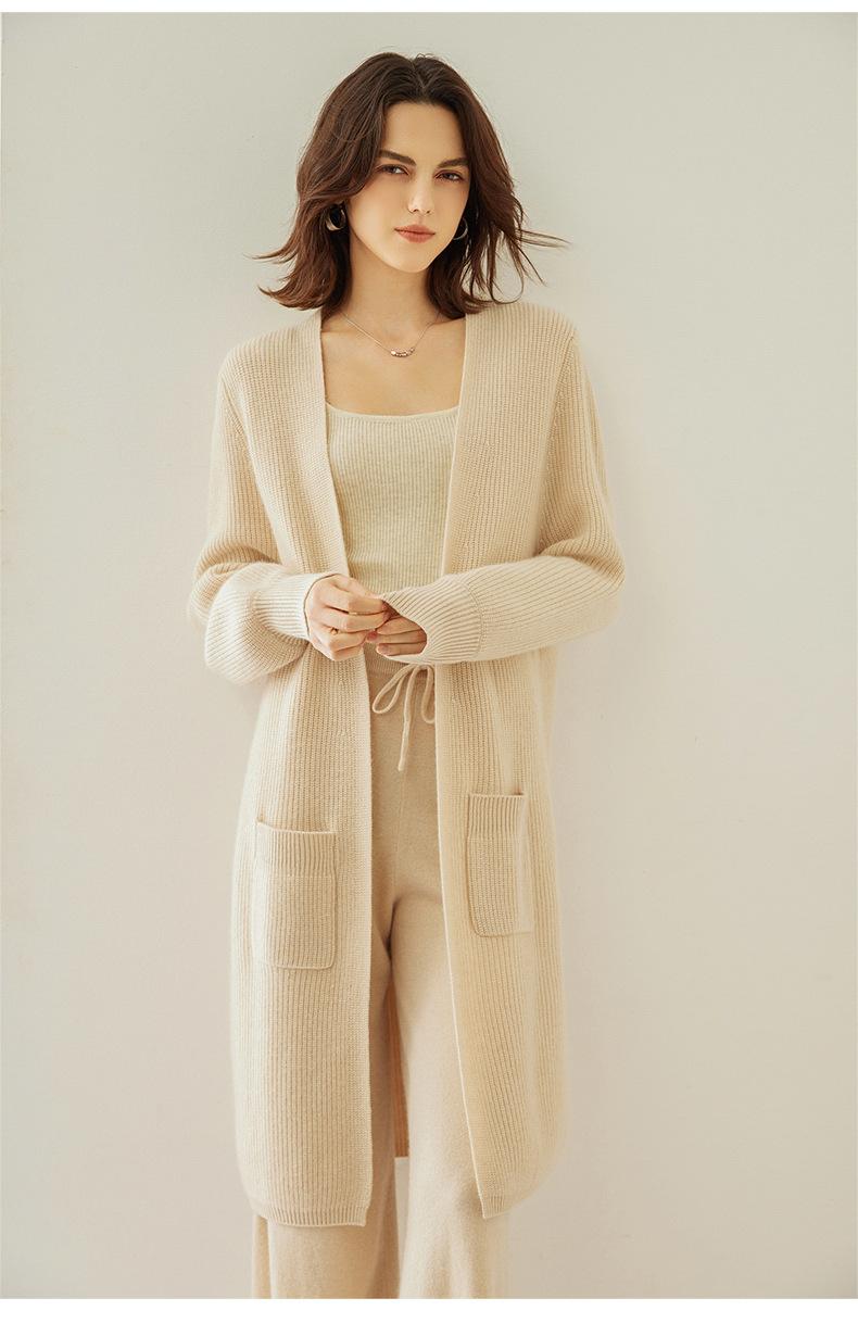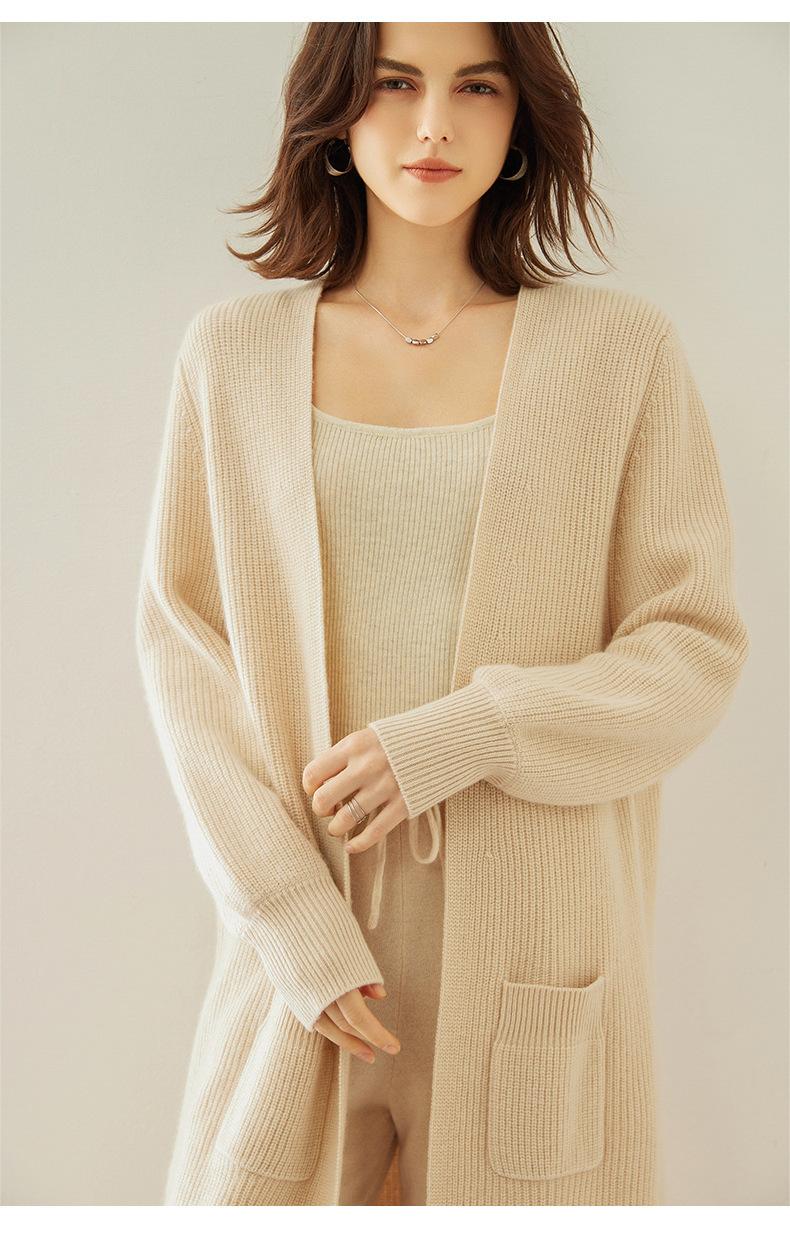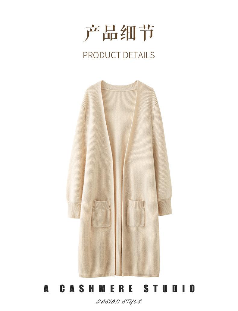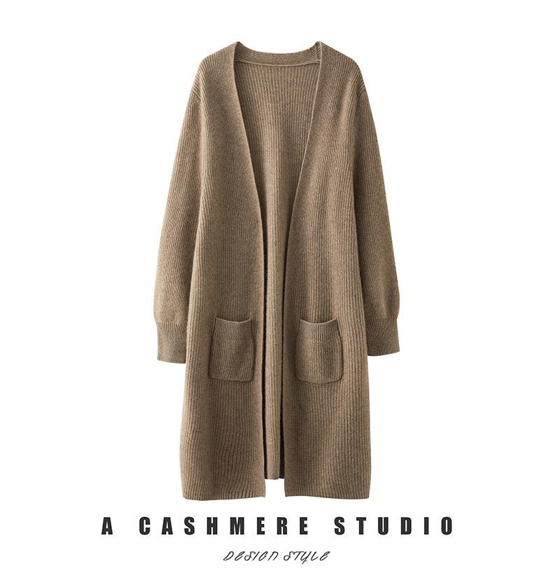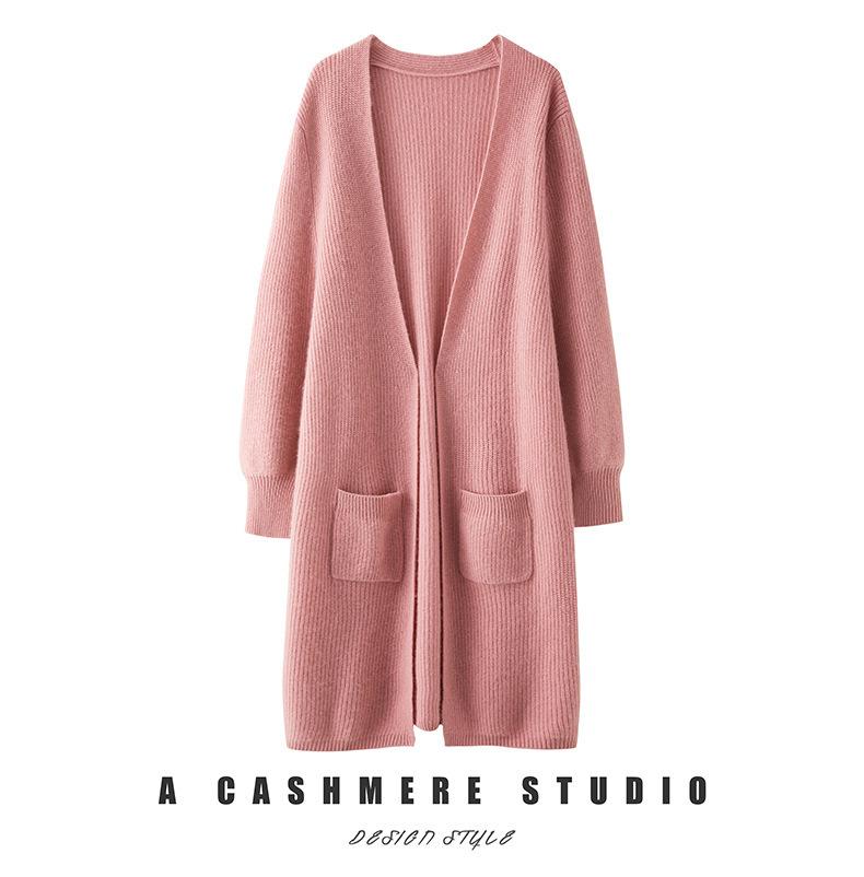 Cárdigan de Cachemira para Mujer Otoño/Invierno 2025 Nuevo Largo Medio Adelgazante Estilo Popular Casual Abrigo Grueso Cálido