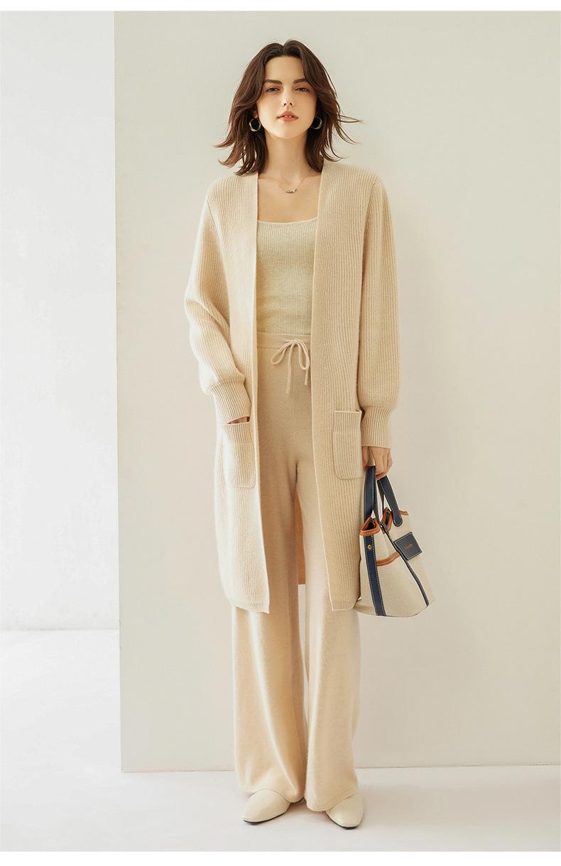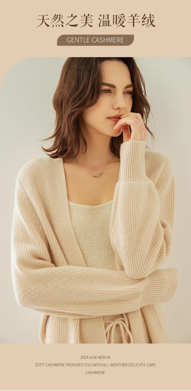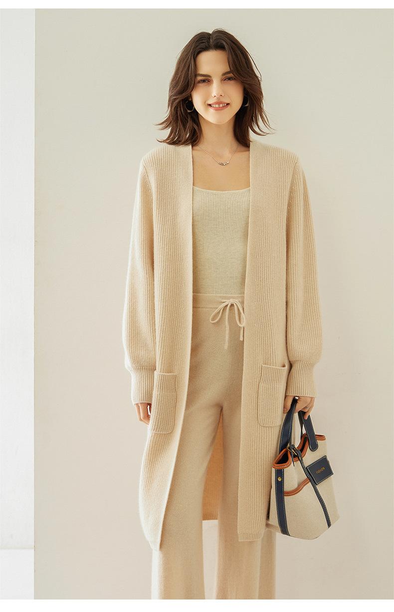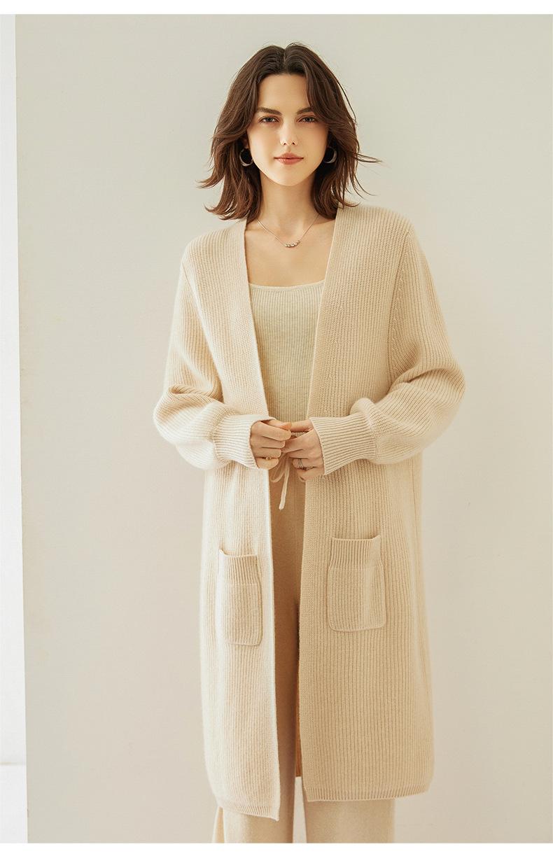 Cárdigan de Cachemira para Mujer Otoño/Invierno 2025 Nuevo Largo Medio Adelgazante Estilo Popular Casual Abrigo Grueso Cálido