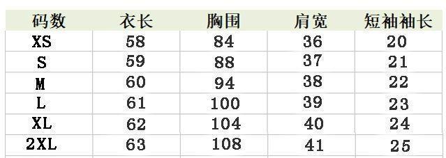 XS, S, M, L, XL, 2XL