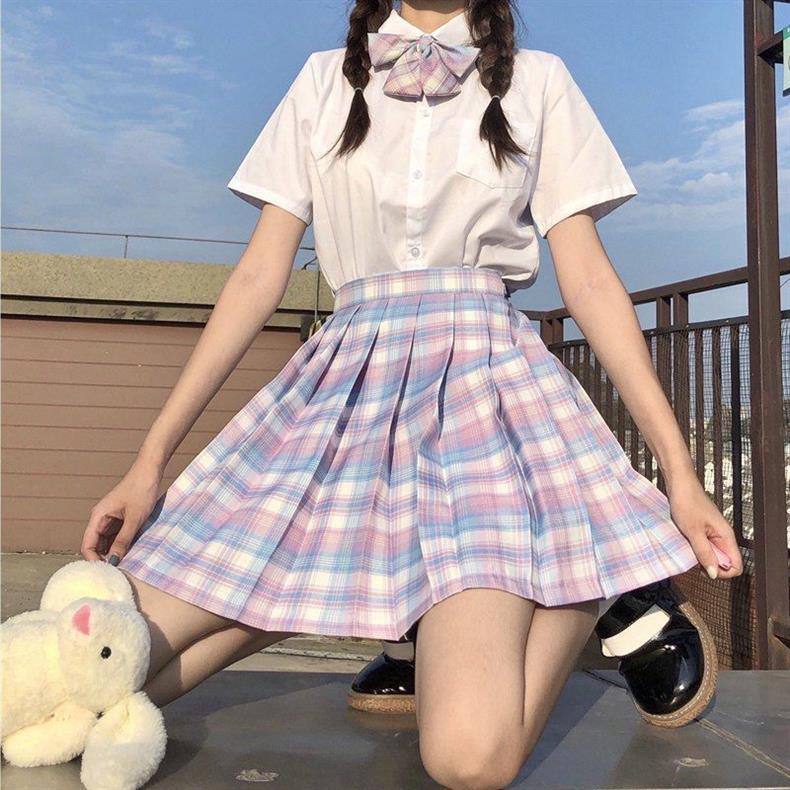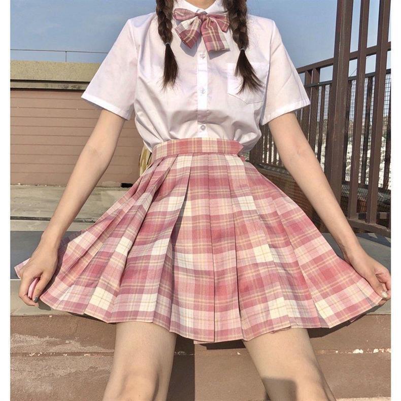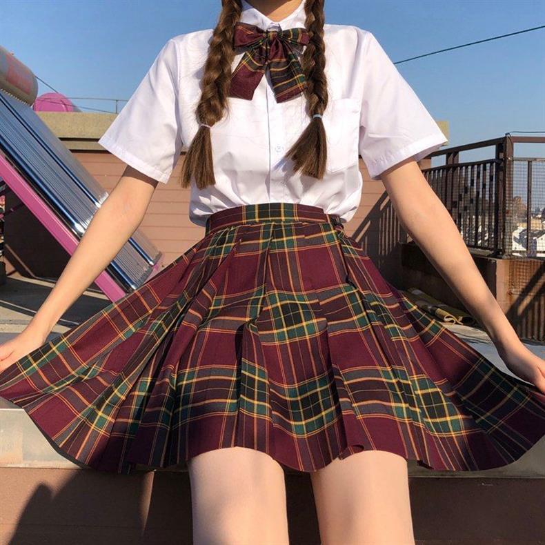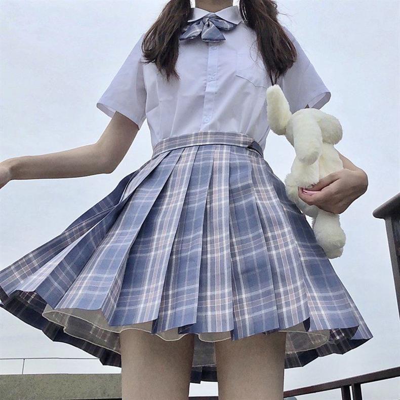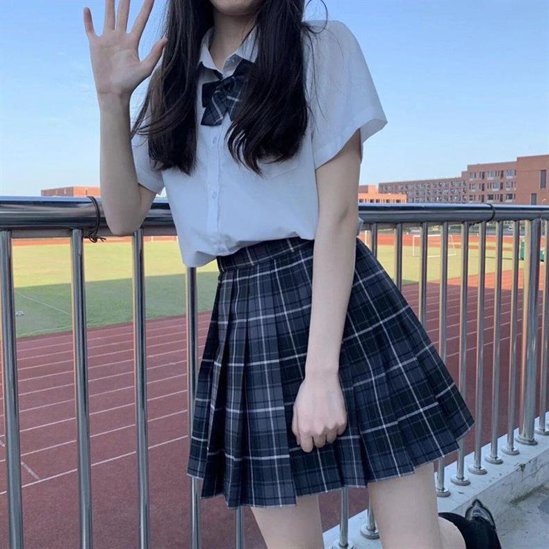 Escuela para mes flotante traje de uniforme jk falda de cuadros genuina manga corta verano original estilo académico falda uniforme de clase de escuela primaria