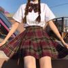 Floating moon plaid skirt + pure white short lining + bow tie, Girl's thoughts plaid skirt + pure white short ...