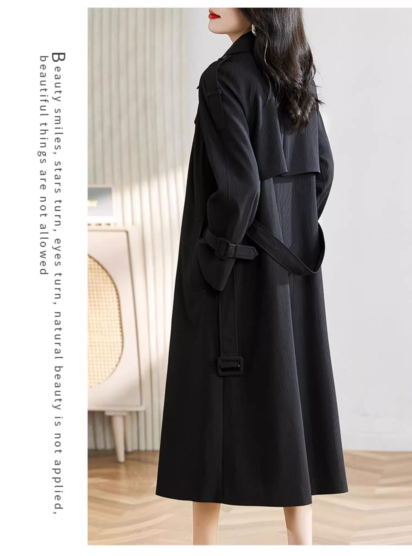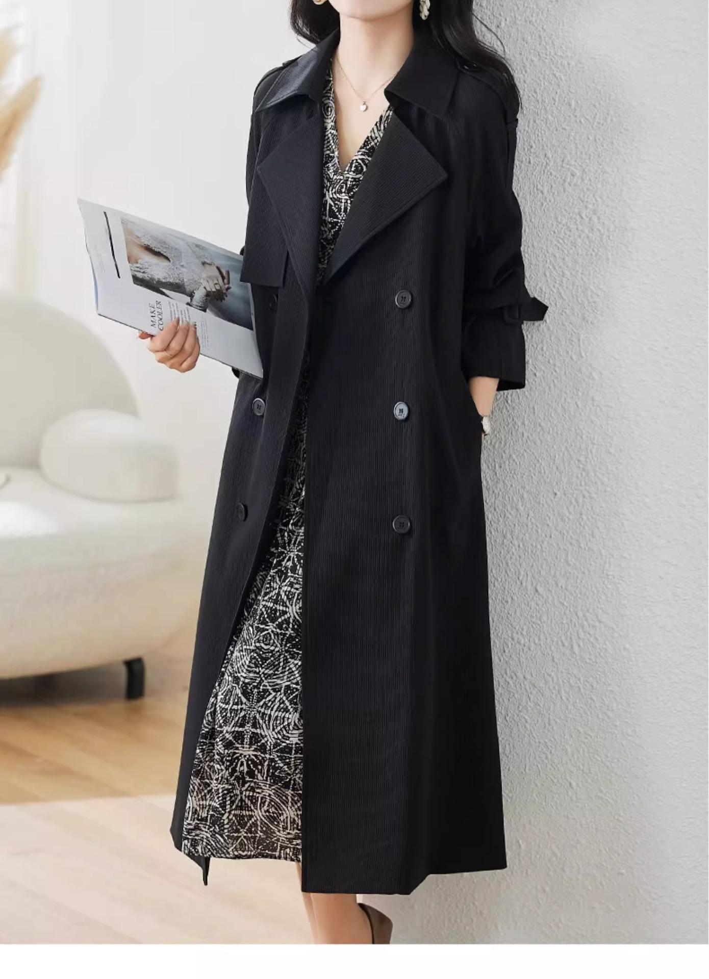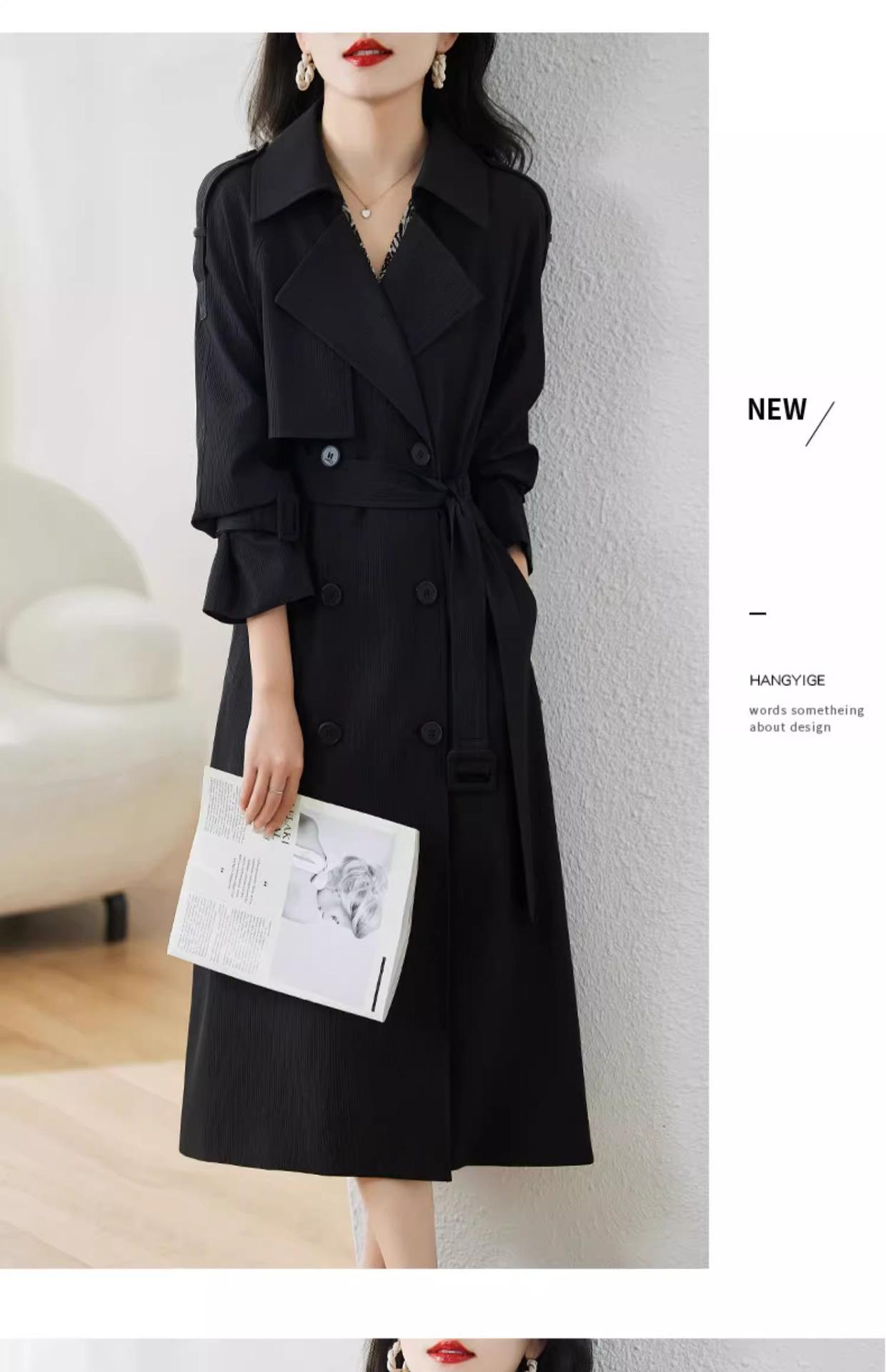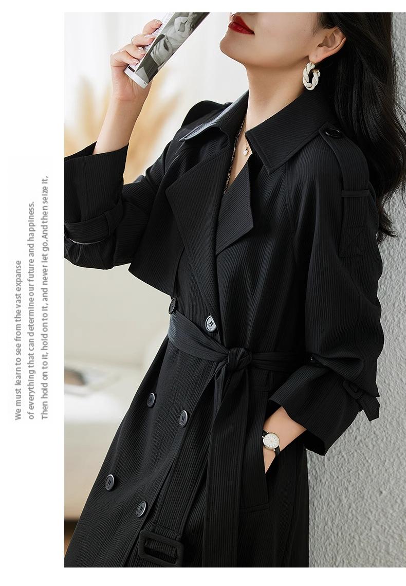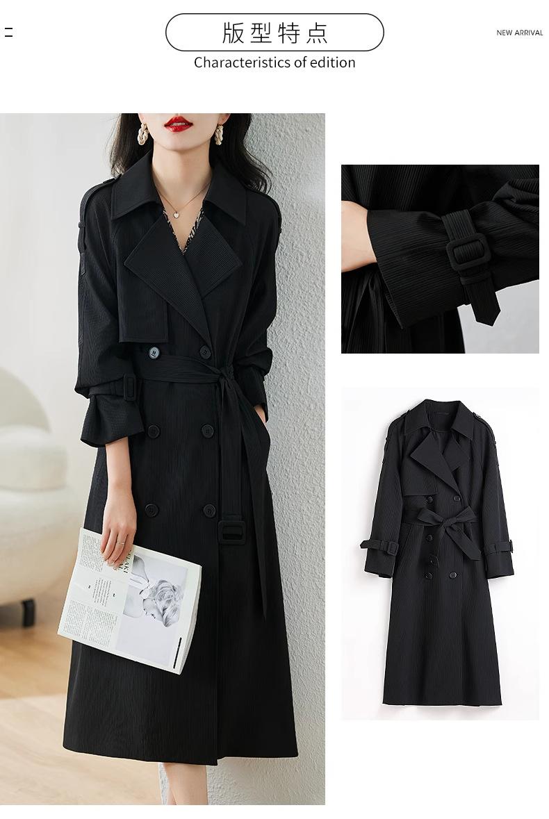 Abrigo Trench Negro de Temperamento a la Moda con Cuello de Traje para Mujer 2025 Primavera y Otoño Nuevo Popular Abrigo Largo con Cinturón Cruzado