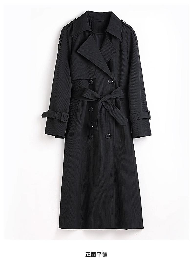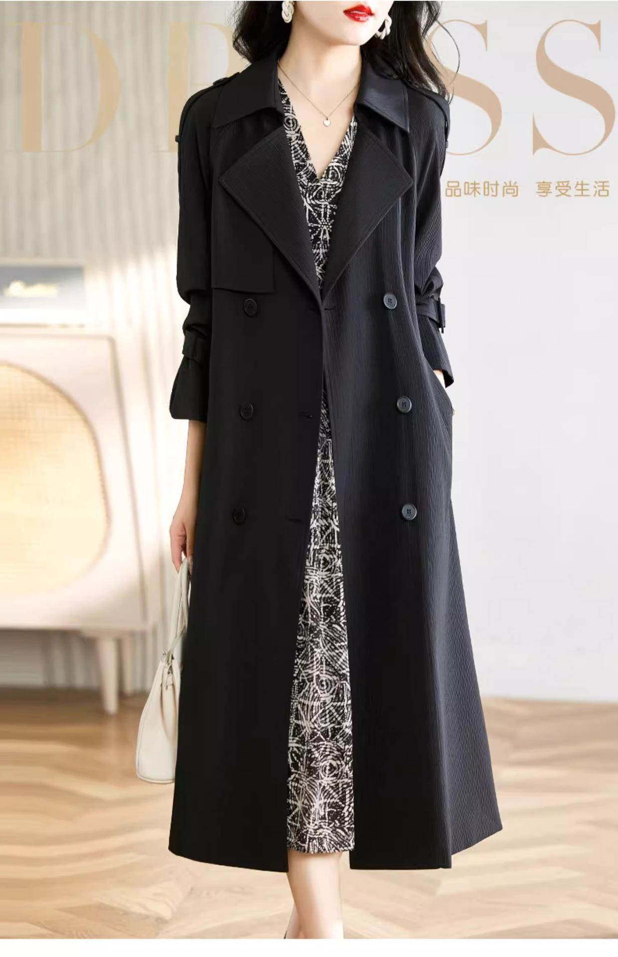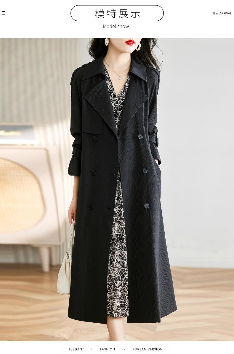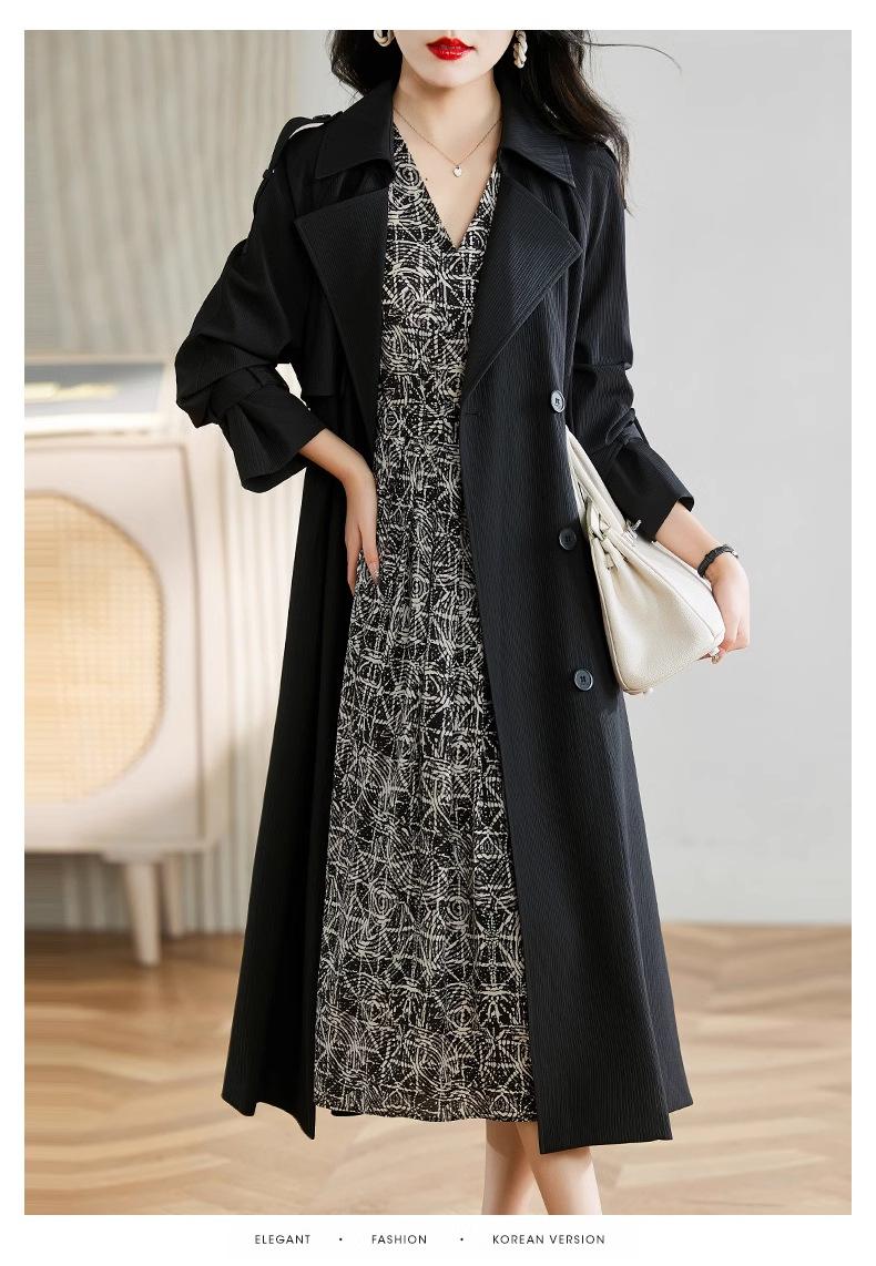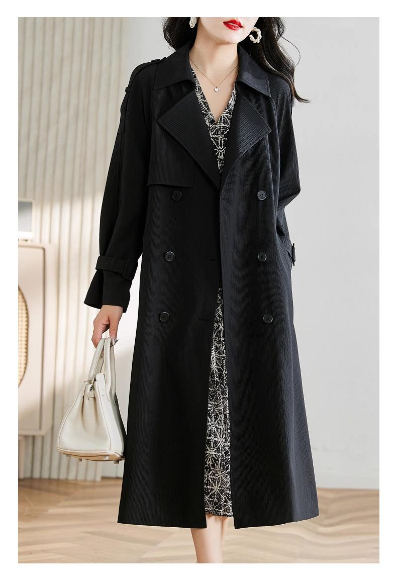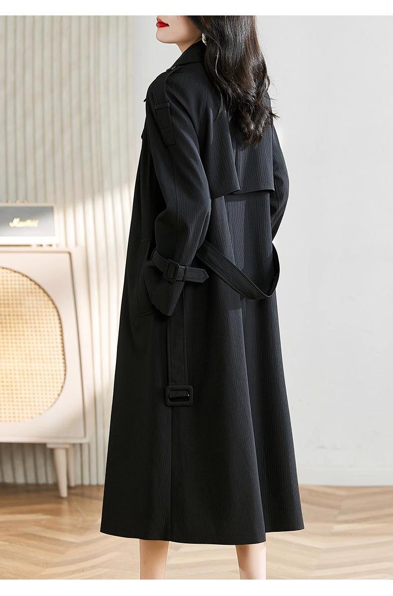Abrigo Trench Negro de Temperamento a la Moda con Cuello de Traje para Mujer 2025 Primavera y Otoño Nuevo Popular Abrigo Largo con Cinturón Cruzado