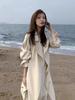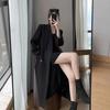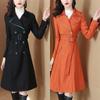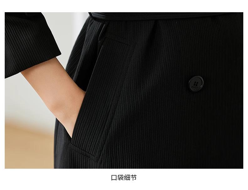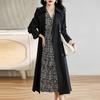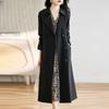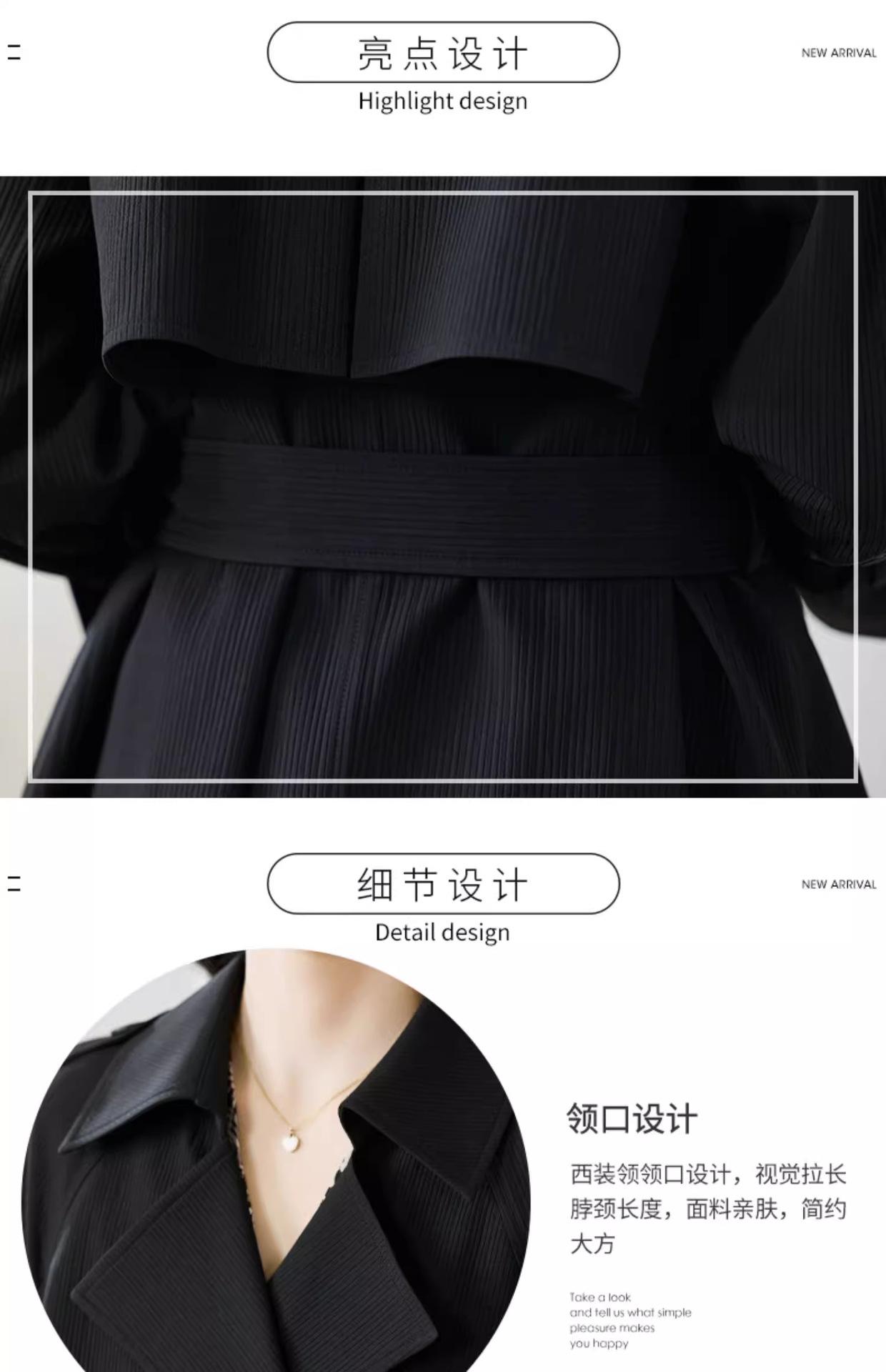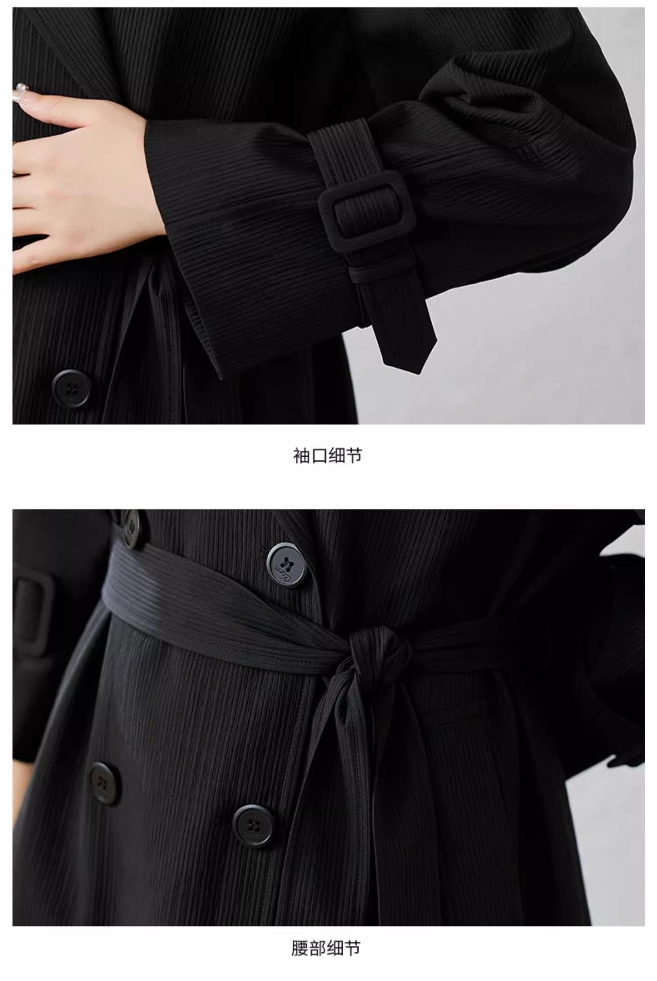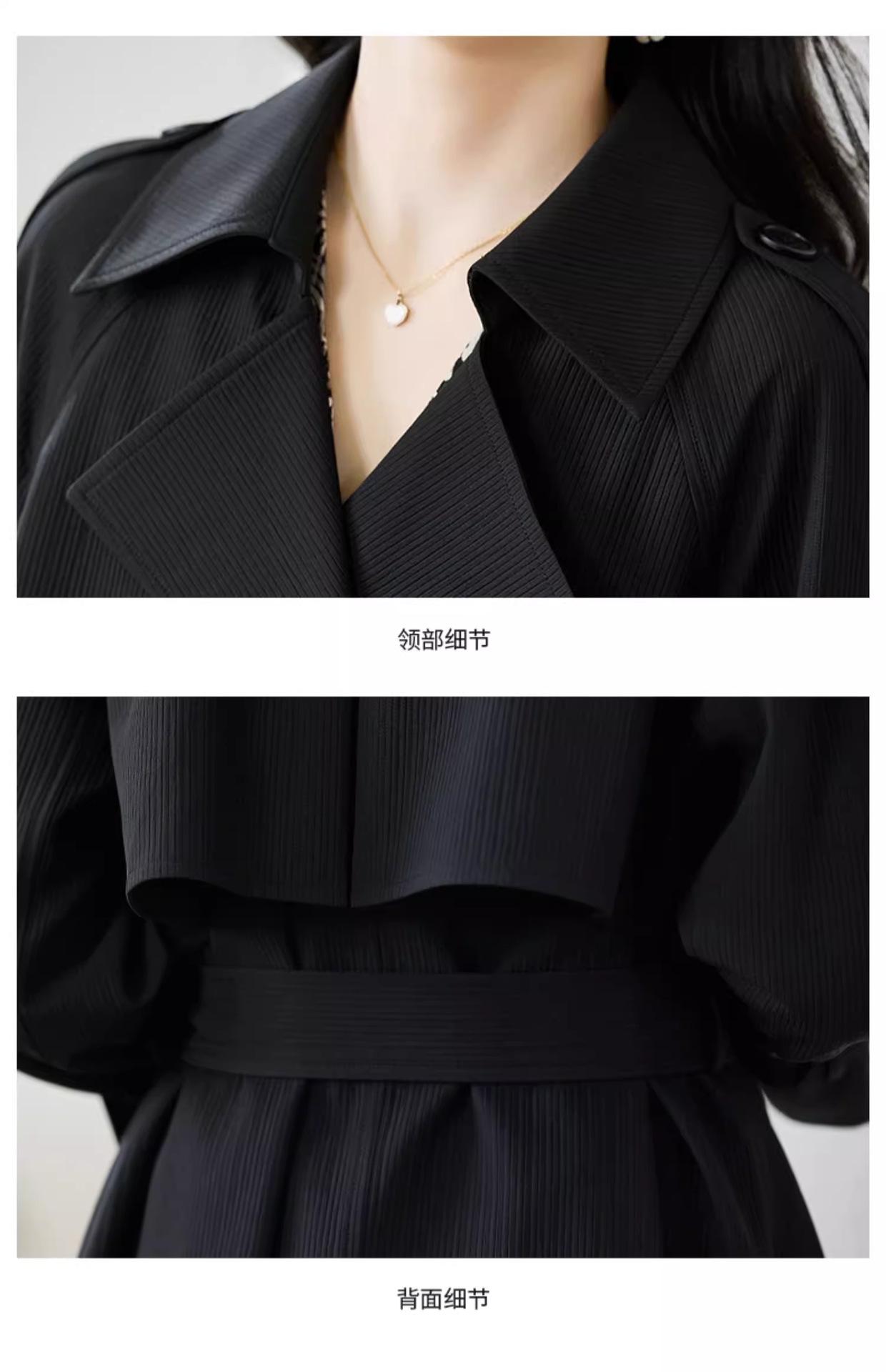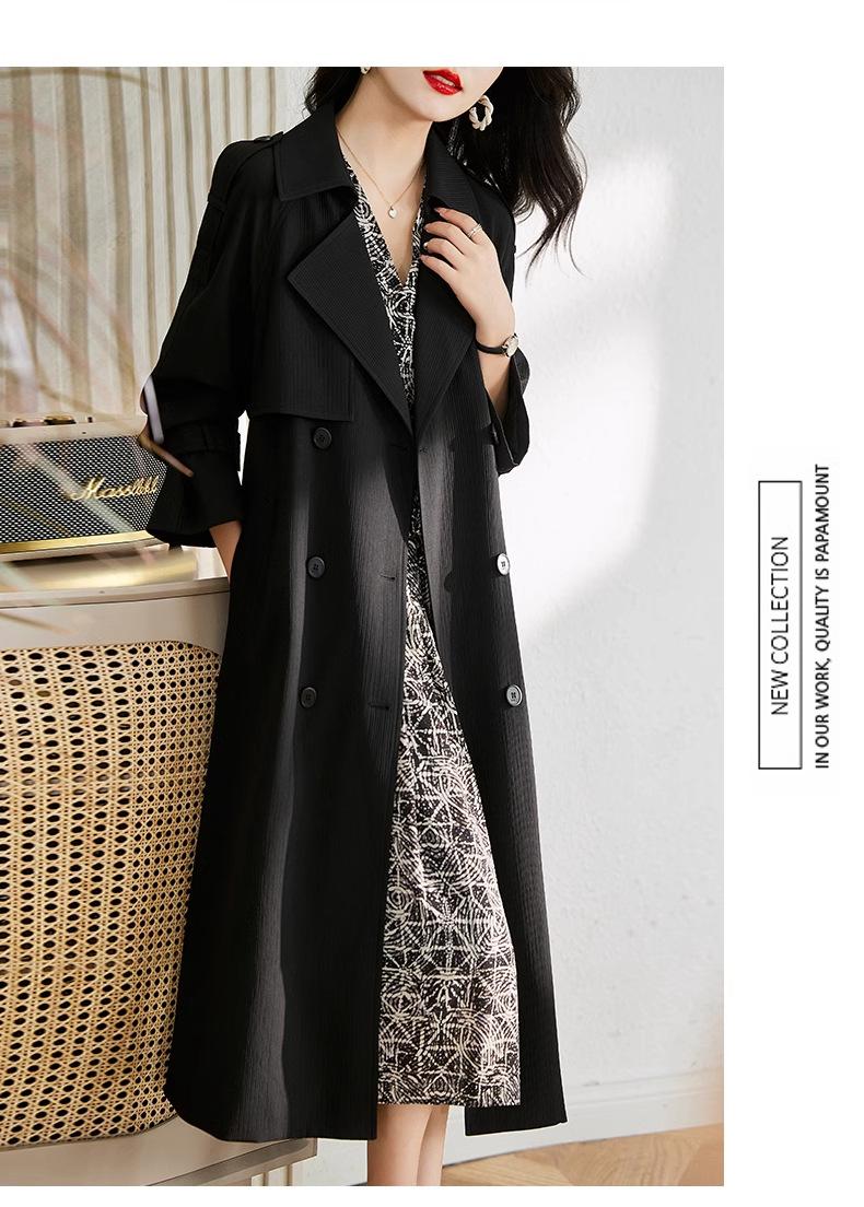 Abrigo Trench Negro de Temperamento a la Moda con Cuello de Traje para Mujer 2025 Primavera y Otoño Nuevo Popular Abrigo Largo con Cinturón Cruzado