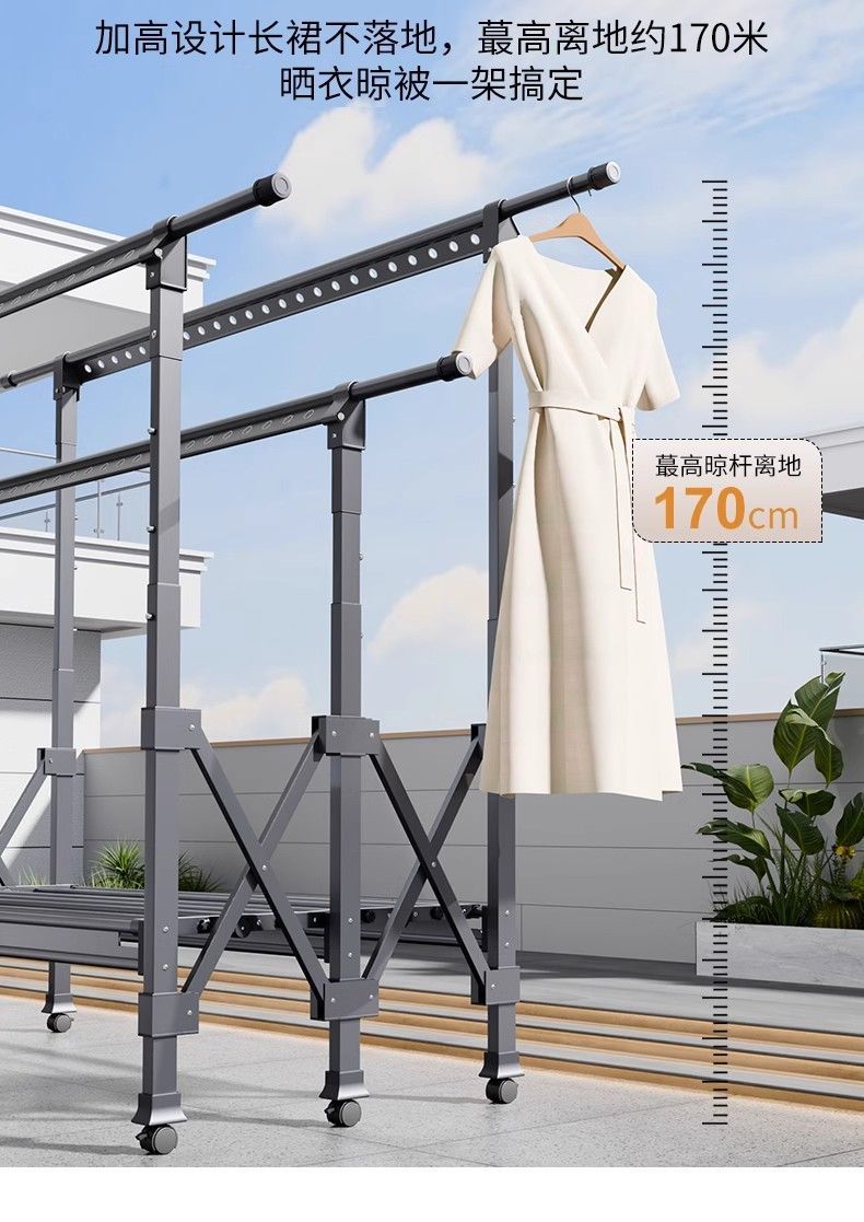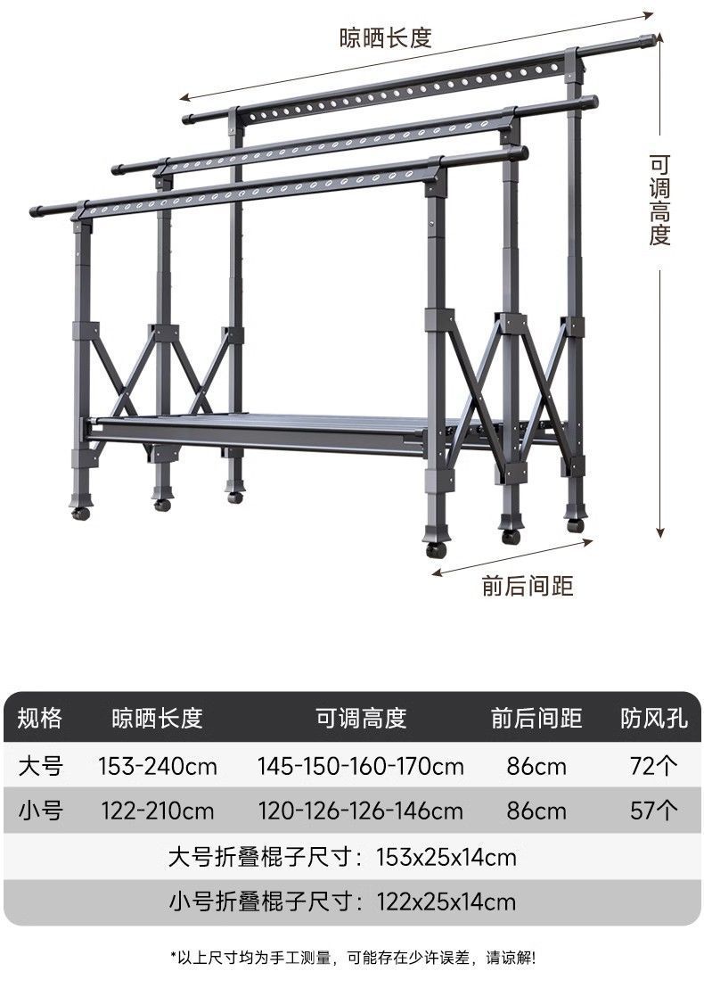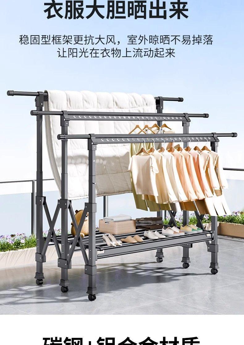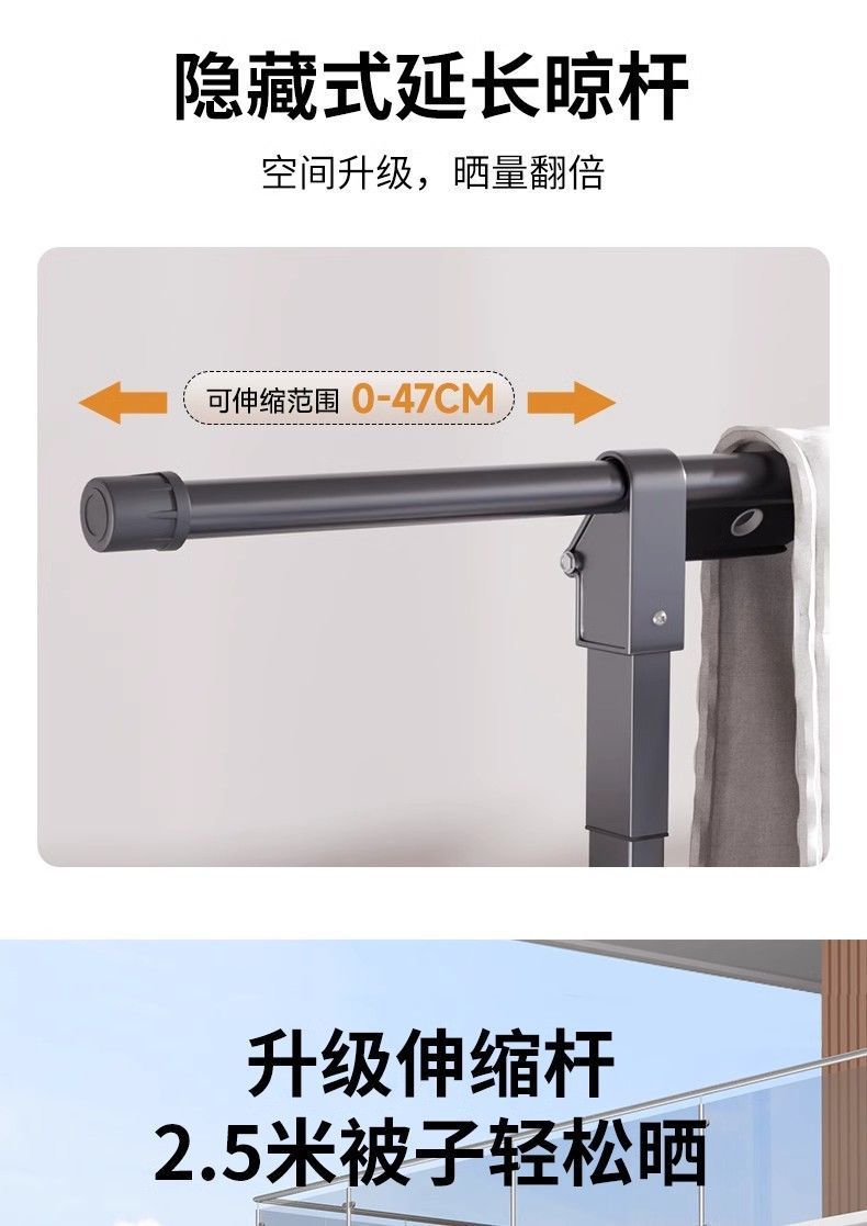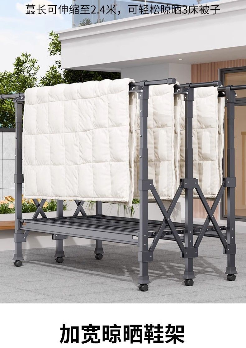 Tendedero de Piso Balcón Plegable Doméstico Interior y Exterior Telescópico para Colgar Ropa Tendedero para Edredones Barra para Ropa