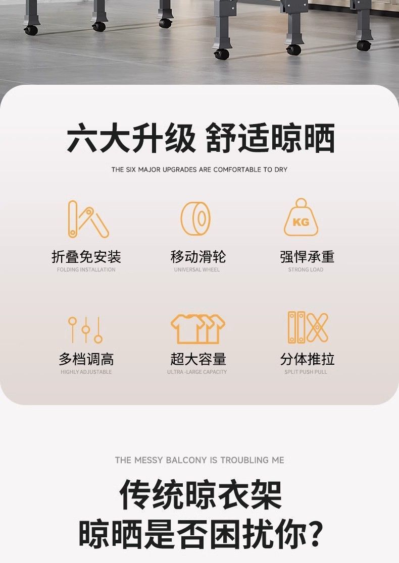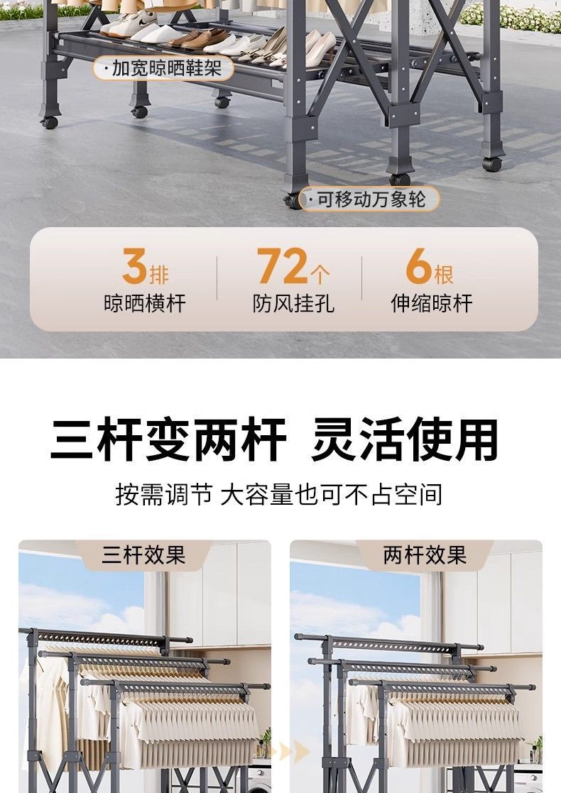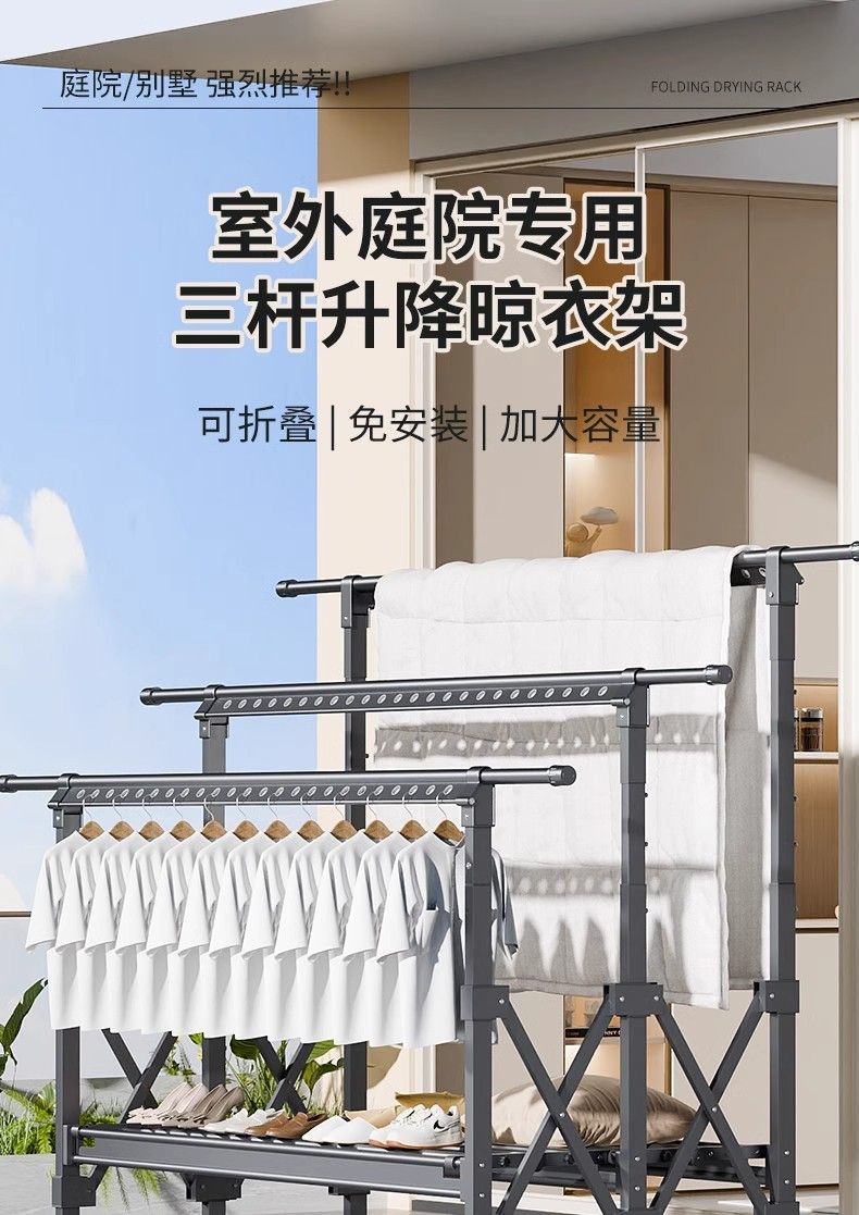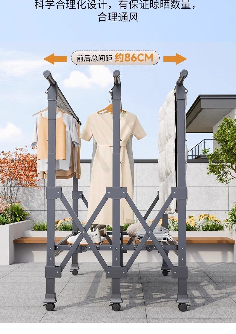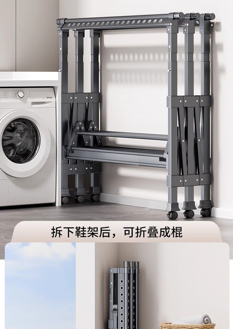 Tendedero de Piso Balcón Plegable Doméstico Interior y Exterior Telescópico para Colgar Ropa Tendedero para Edredones Barra para Ropa