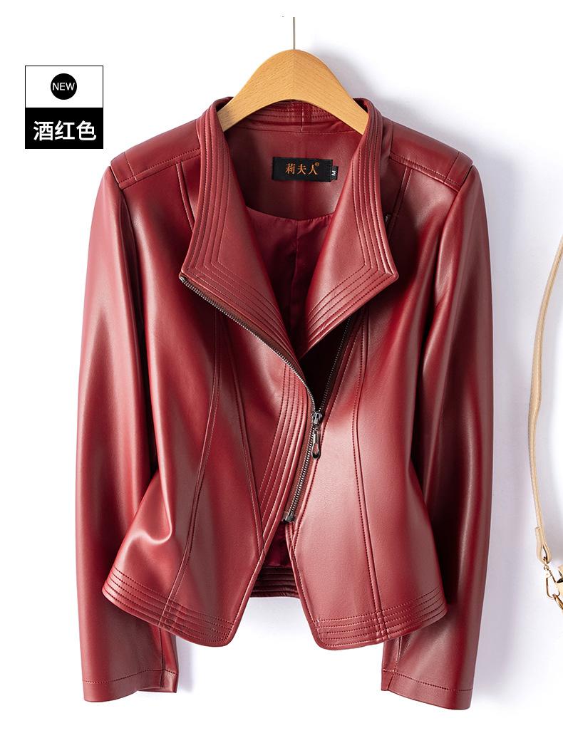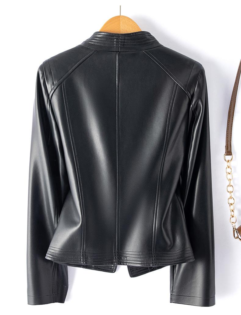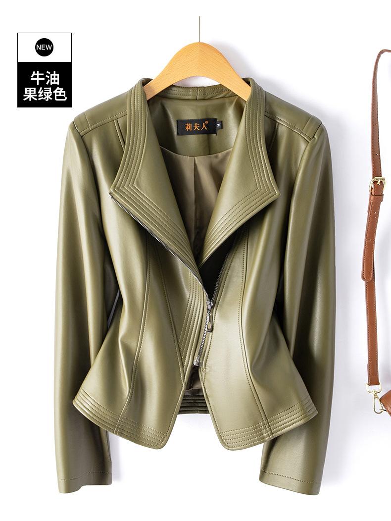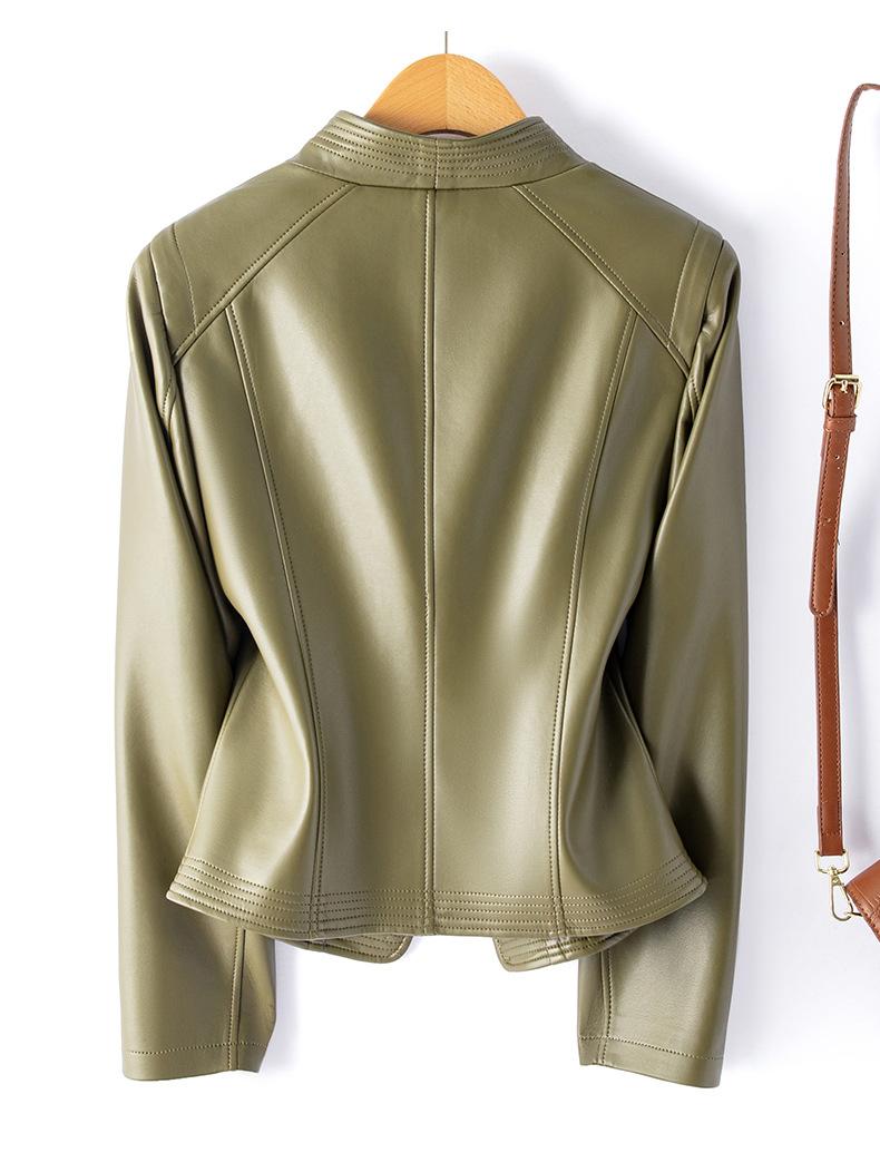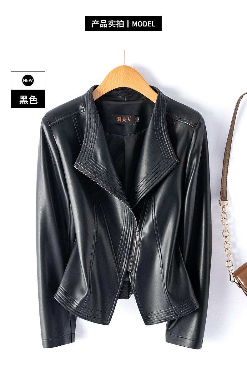 Chaqueta de Cuero Pequeña Haining Estilo Coreano Nueva de Primavera y Otoño 2025 para Mujer, Corta, Ajustada, Motociclista, Talla Grande, Top de Cuero