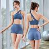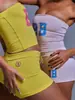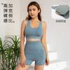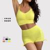 Moda Europea y Americana Nueva Transfronteriza Elástico Adelgazante Deporte Yoga Sexy Estampado Fitness Short Crop Top Set de Shorts