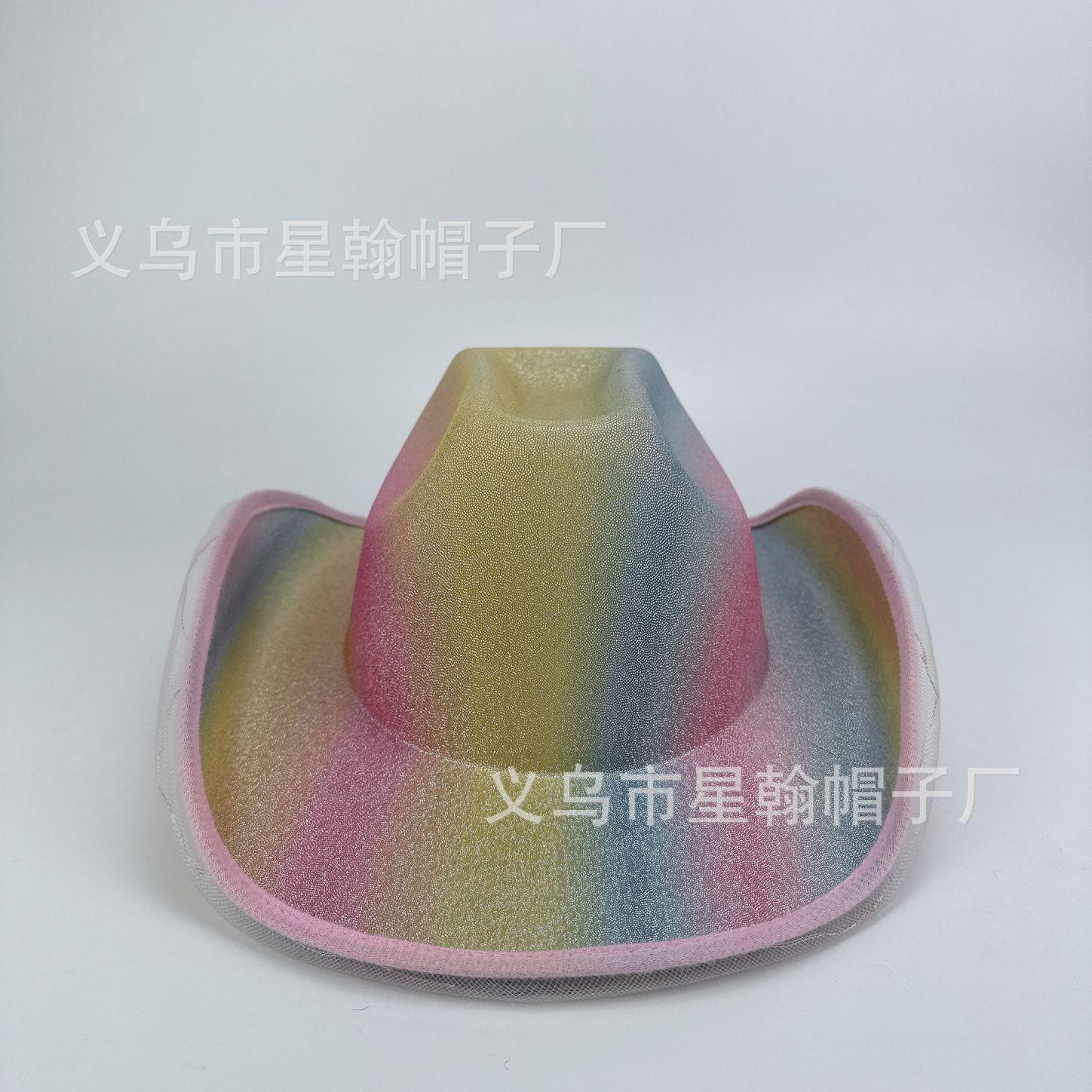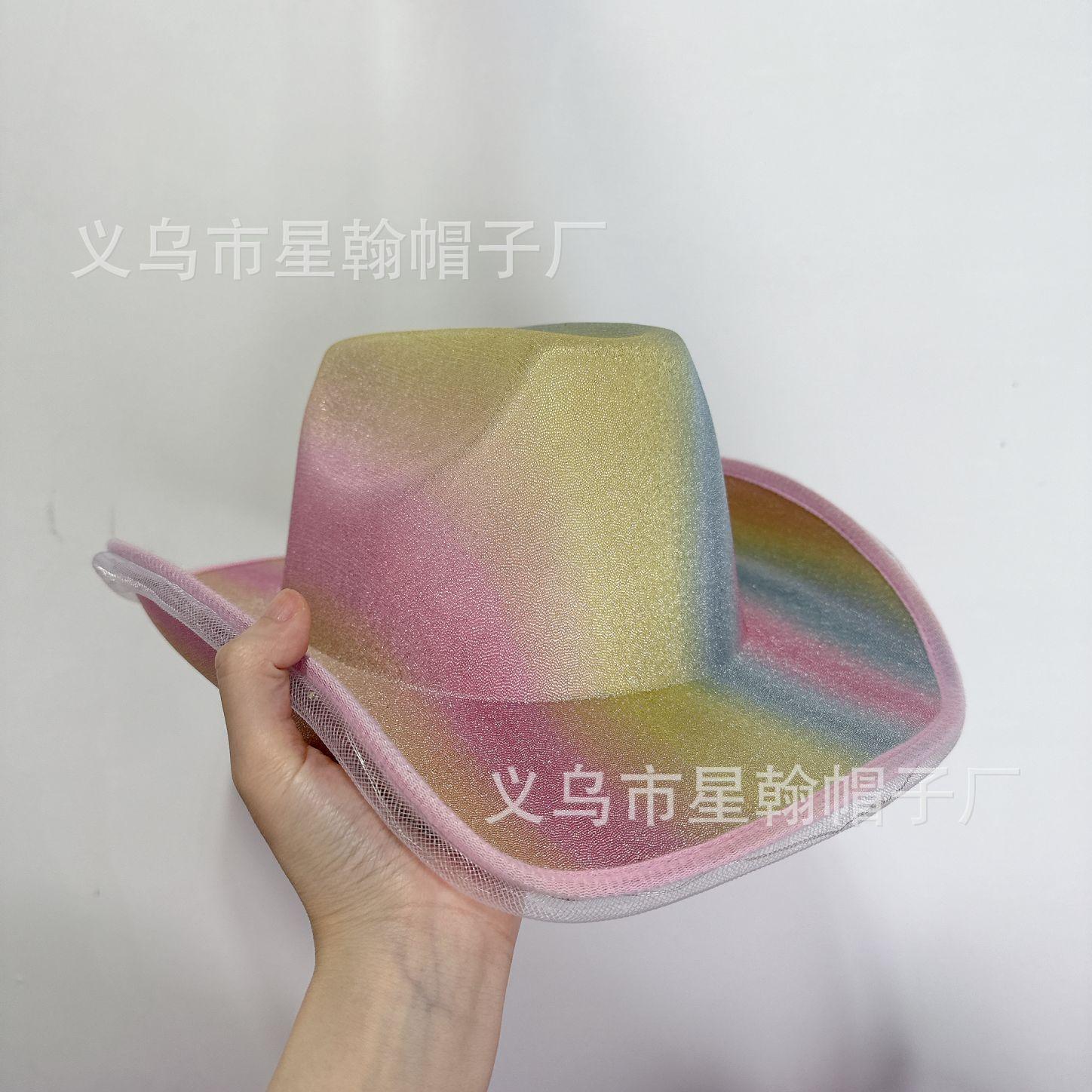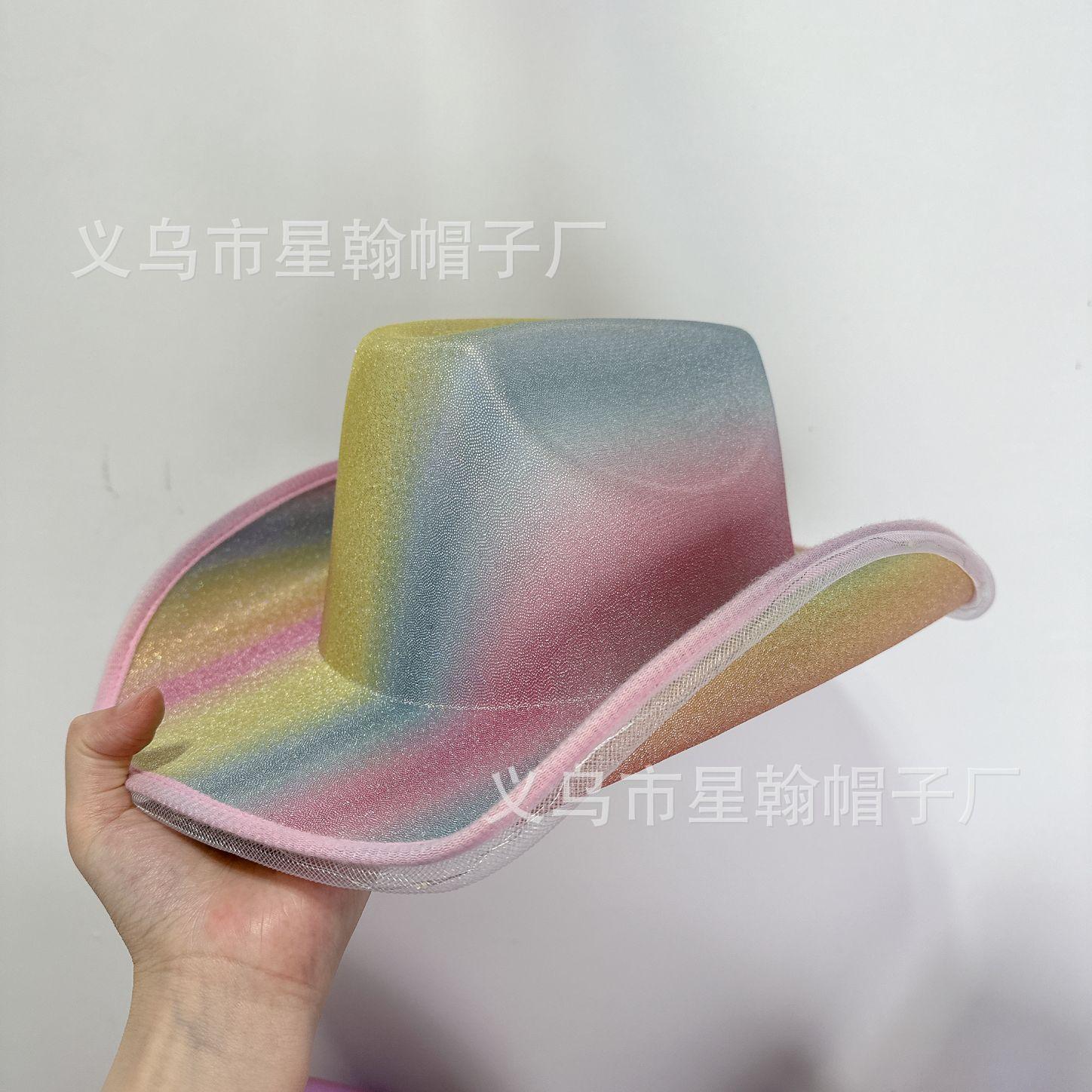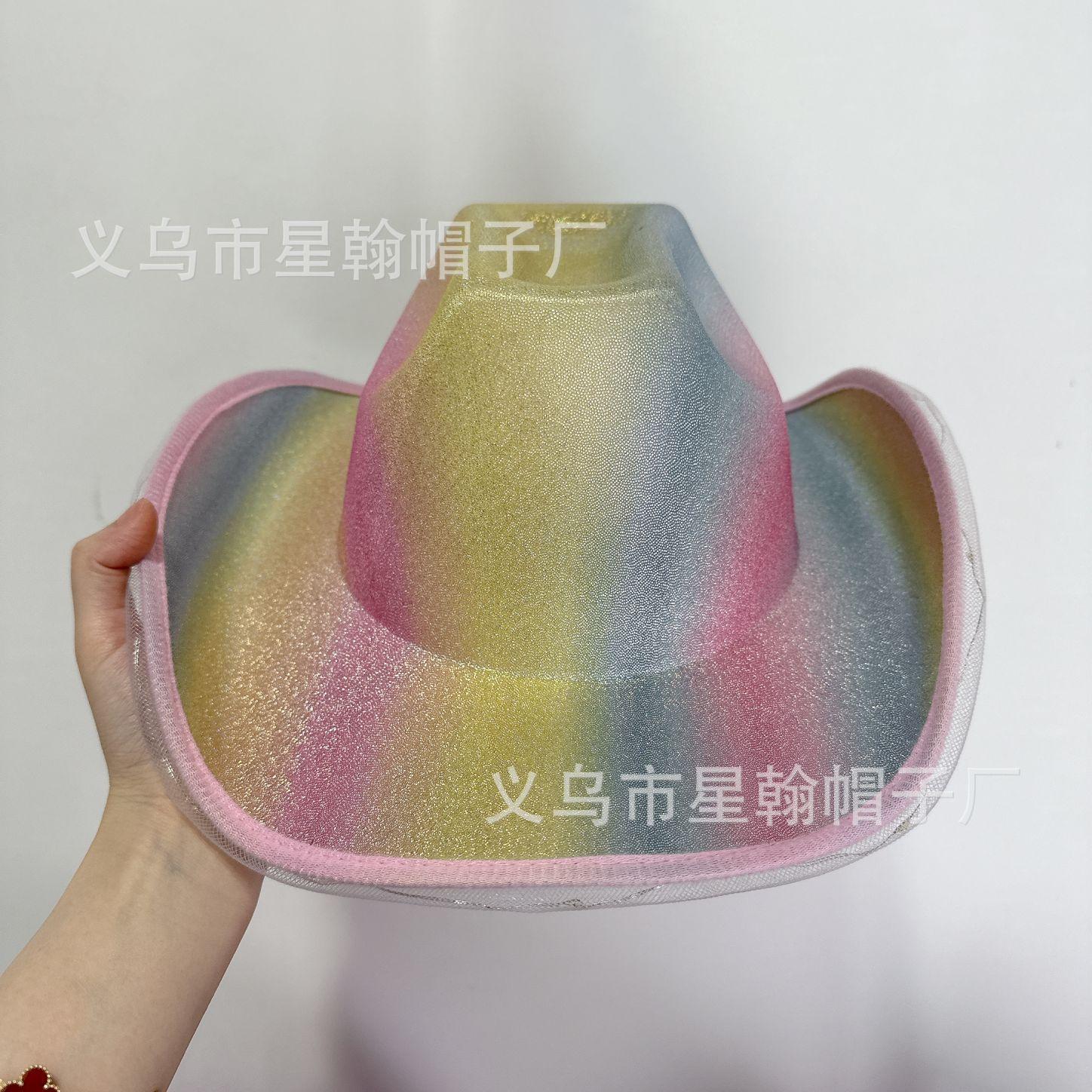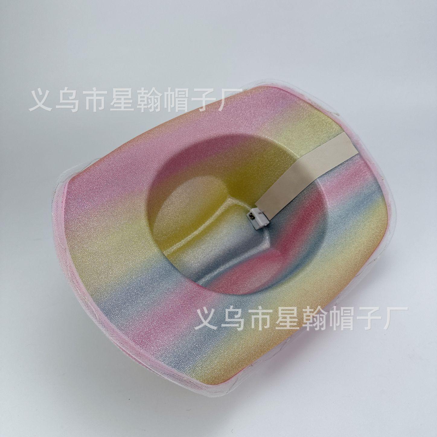 Venta al por mayor de fabricante Sombrero de vaquero occidental iridiscente Sombrero de vaquero espacial intermitente de neón Fiesta de carnaval Sombrero rosa arcoíris