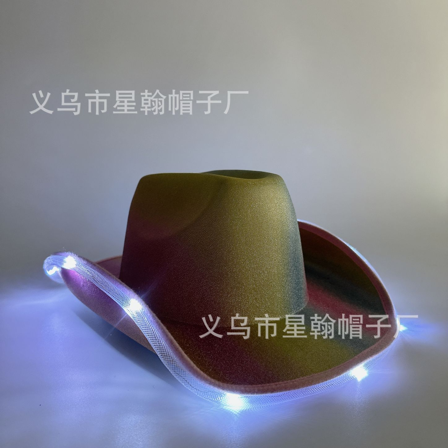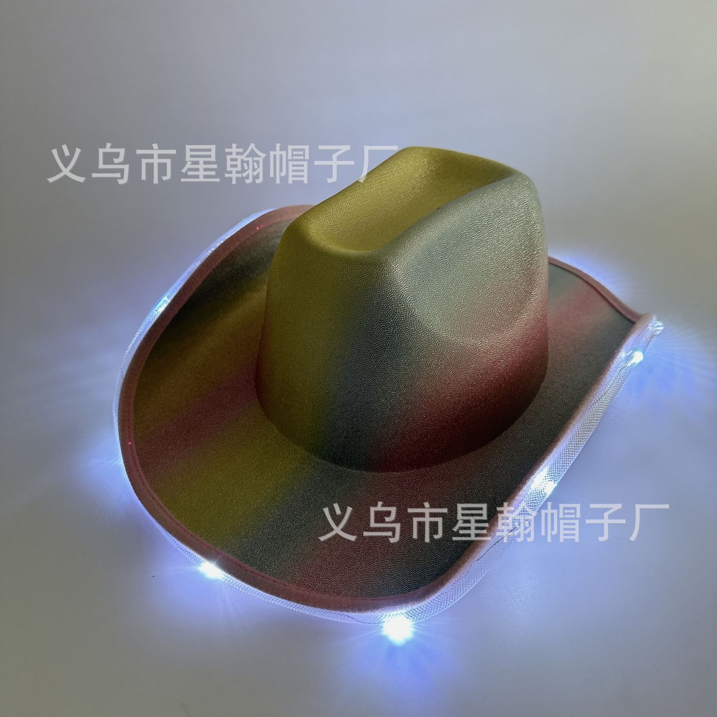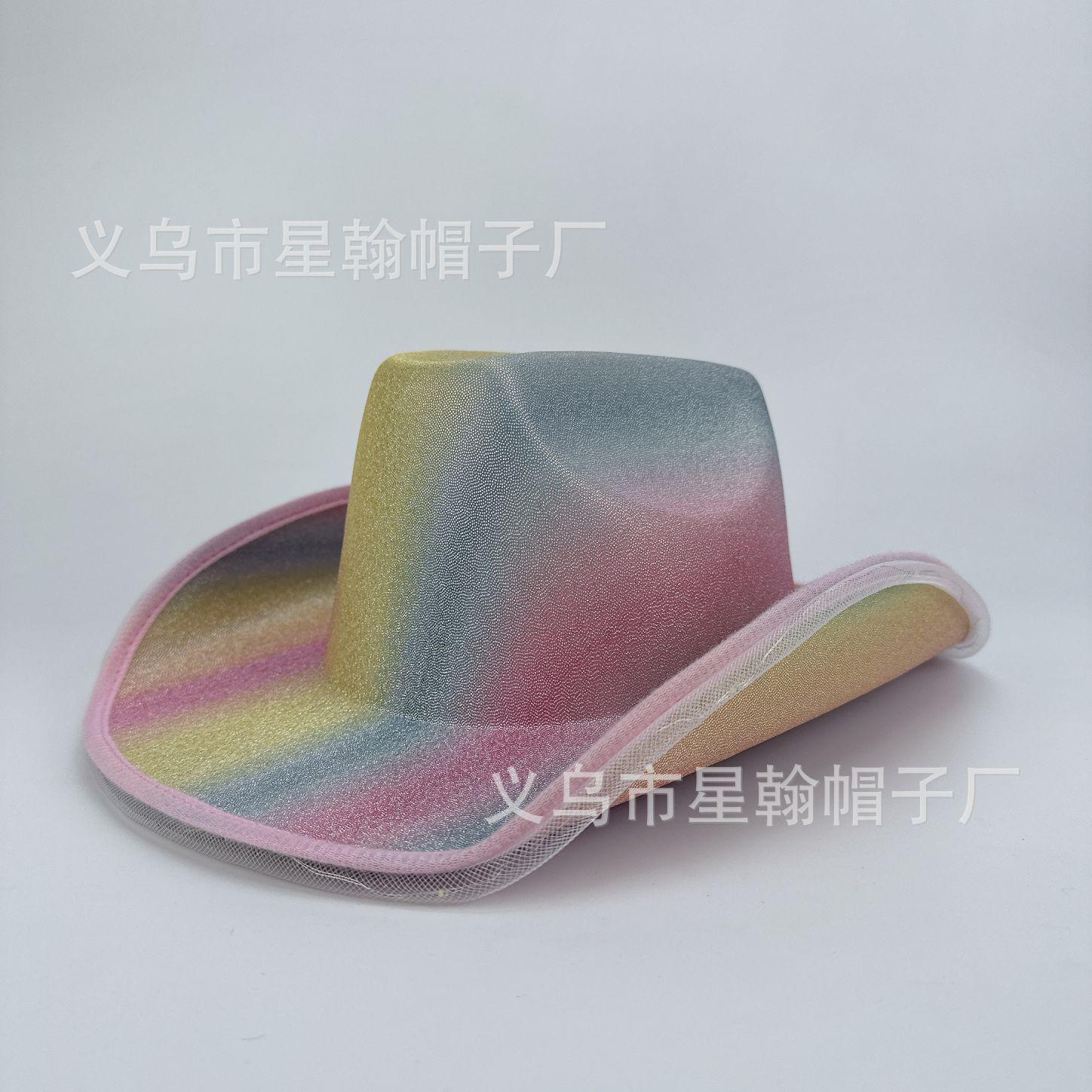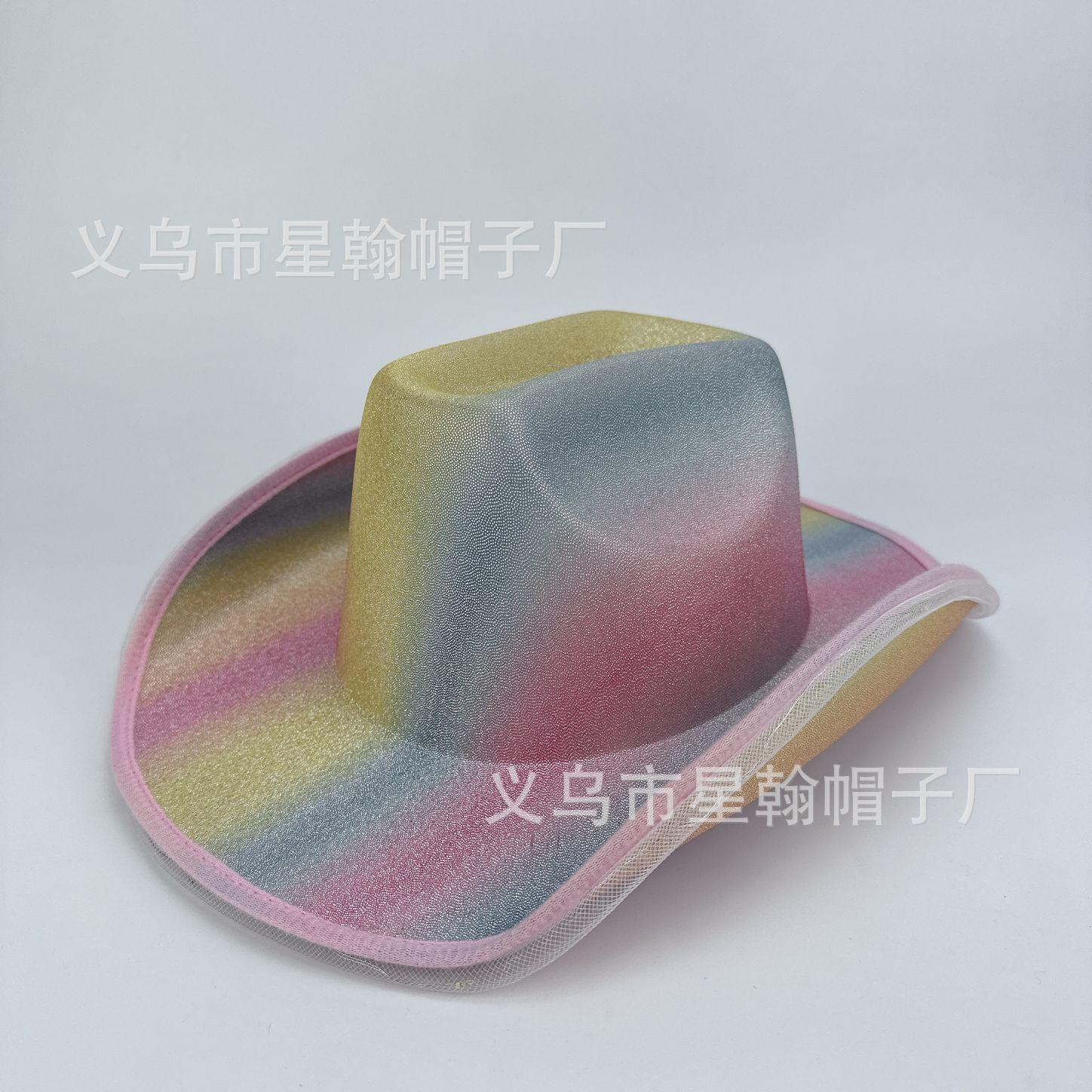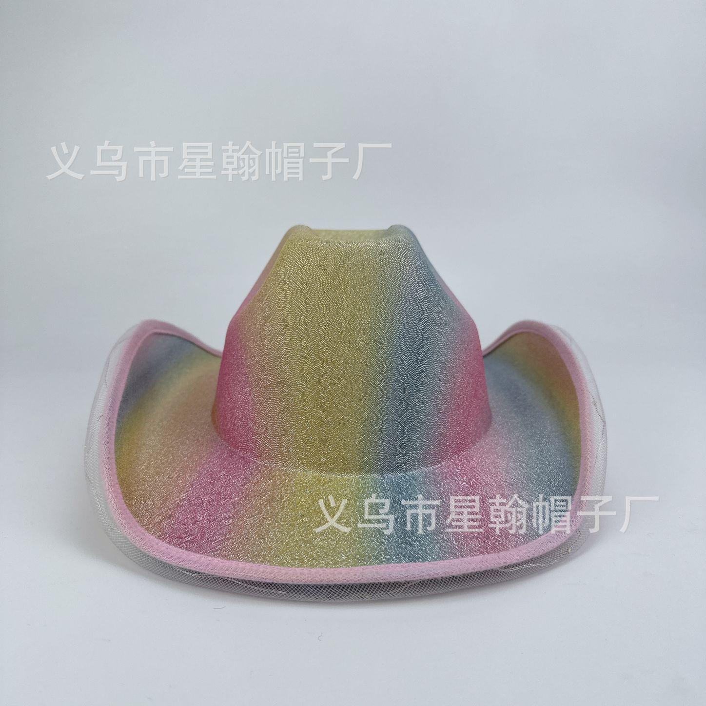 Venta al por mayor de fabricante Sombrero de vaquero occidental iridiscente Sombrero de vaquero espacial intermitente de neón Fiesta de carnaval Sombrero rosa arcoíris