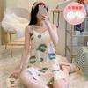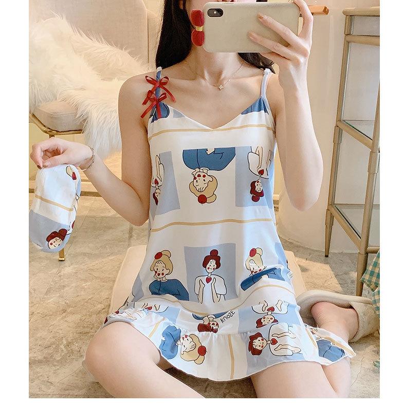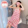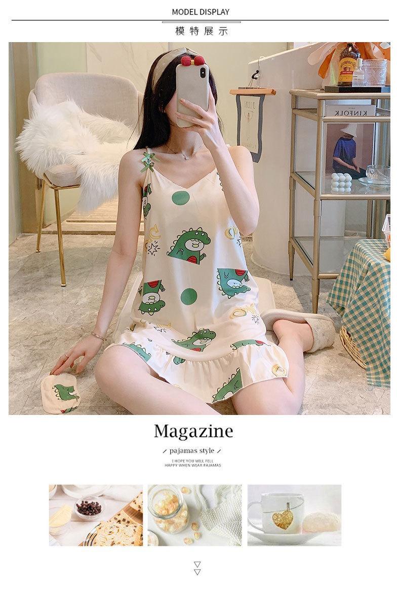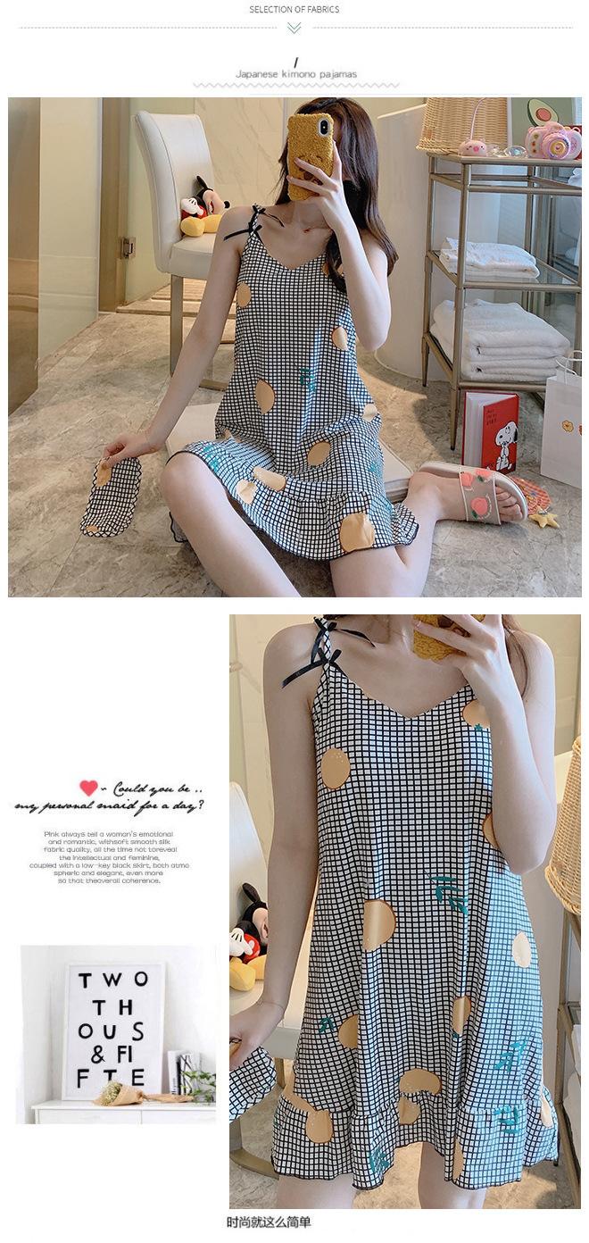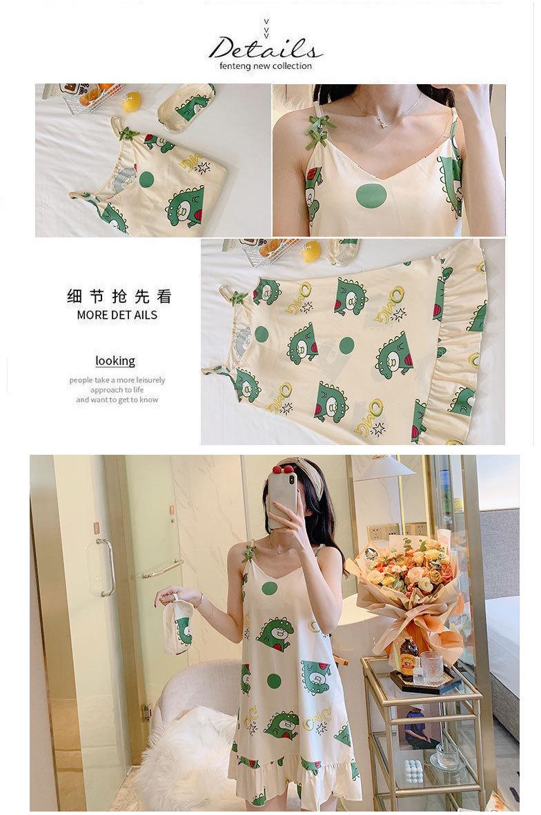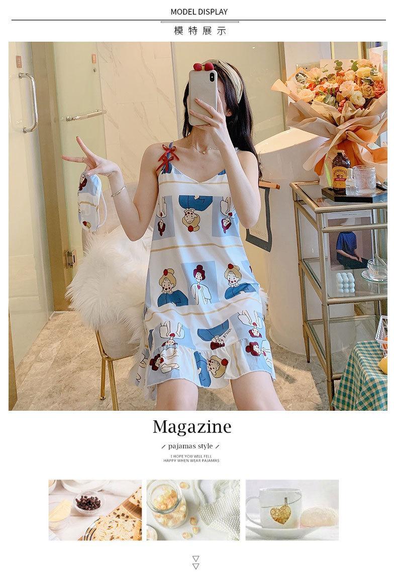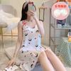 2022 Weishang Estilo Caliente Verano Camisola de Seda de Leche Camisón Mujer con Almohadilla en el Pecho Pijama Fresa Sexy Transfronterizo Ropa para el Hogar