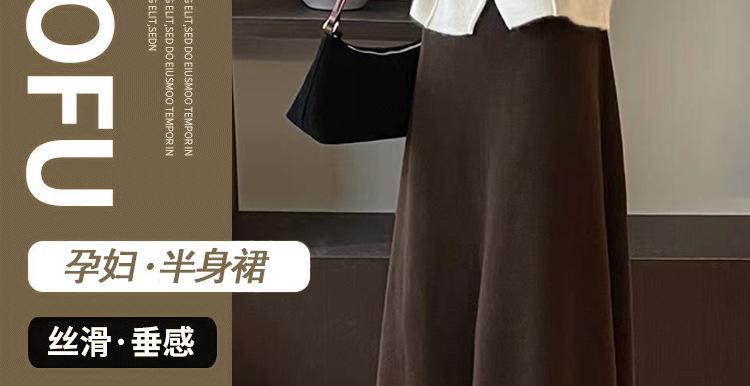 Falda para Embarazadas sin Abdomen 2024 Otoño e Invierno Nuevo Estilo Francés Elegante Colgante Adelgazante Combinable Tejido A- Line Falda Larga