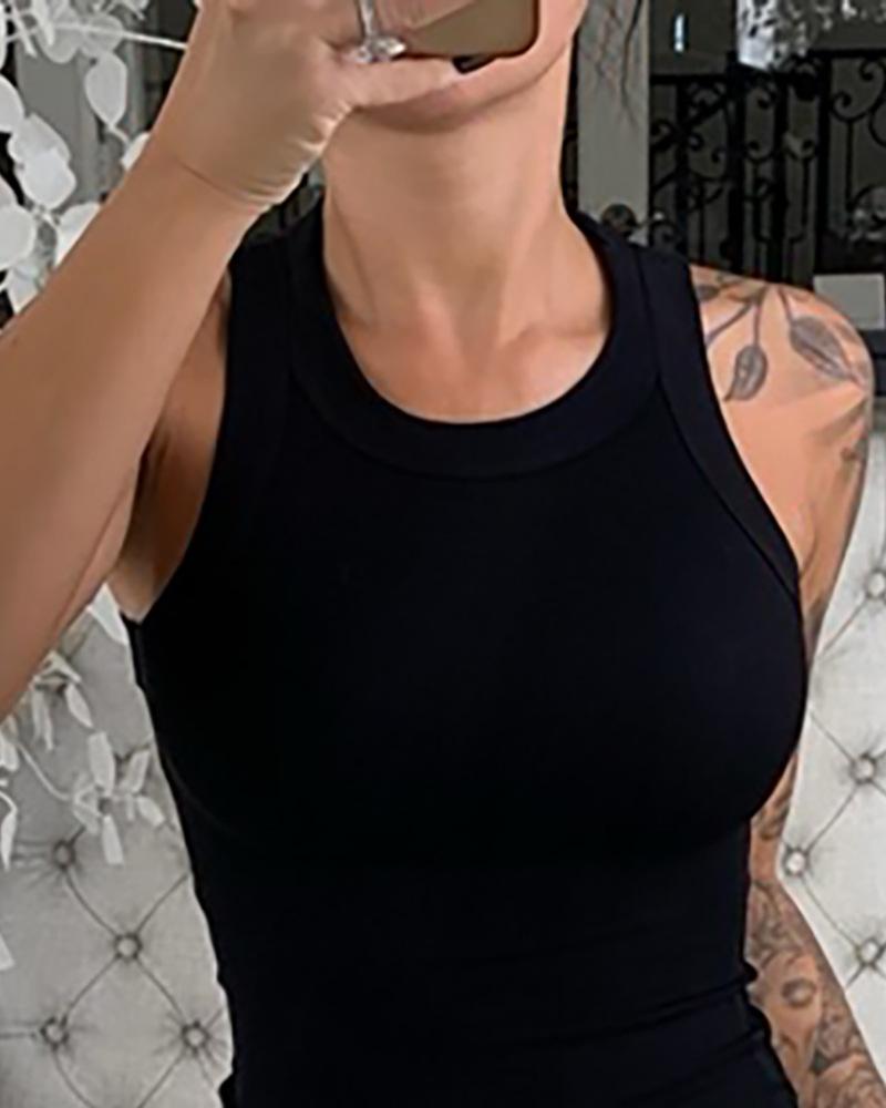 Verano 2024 Nuevo Transfronterizo Amazon Europeo y Americano Chaleco Estampado Multicolor Sexy Cuello Redondo Fondo para Usar por Dentro y por Fuera para Mujer