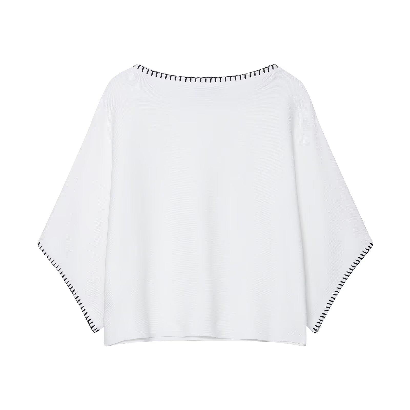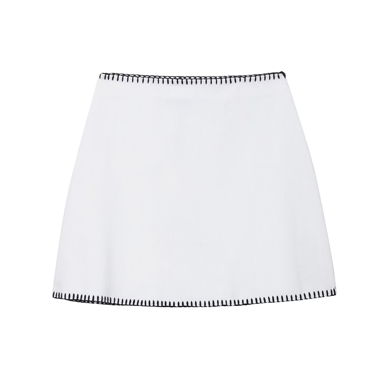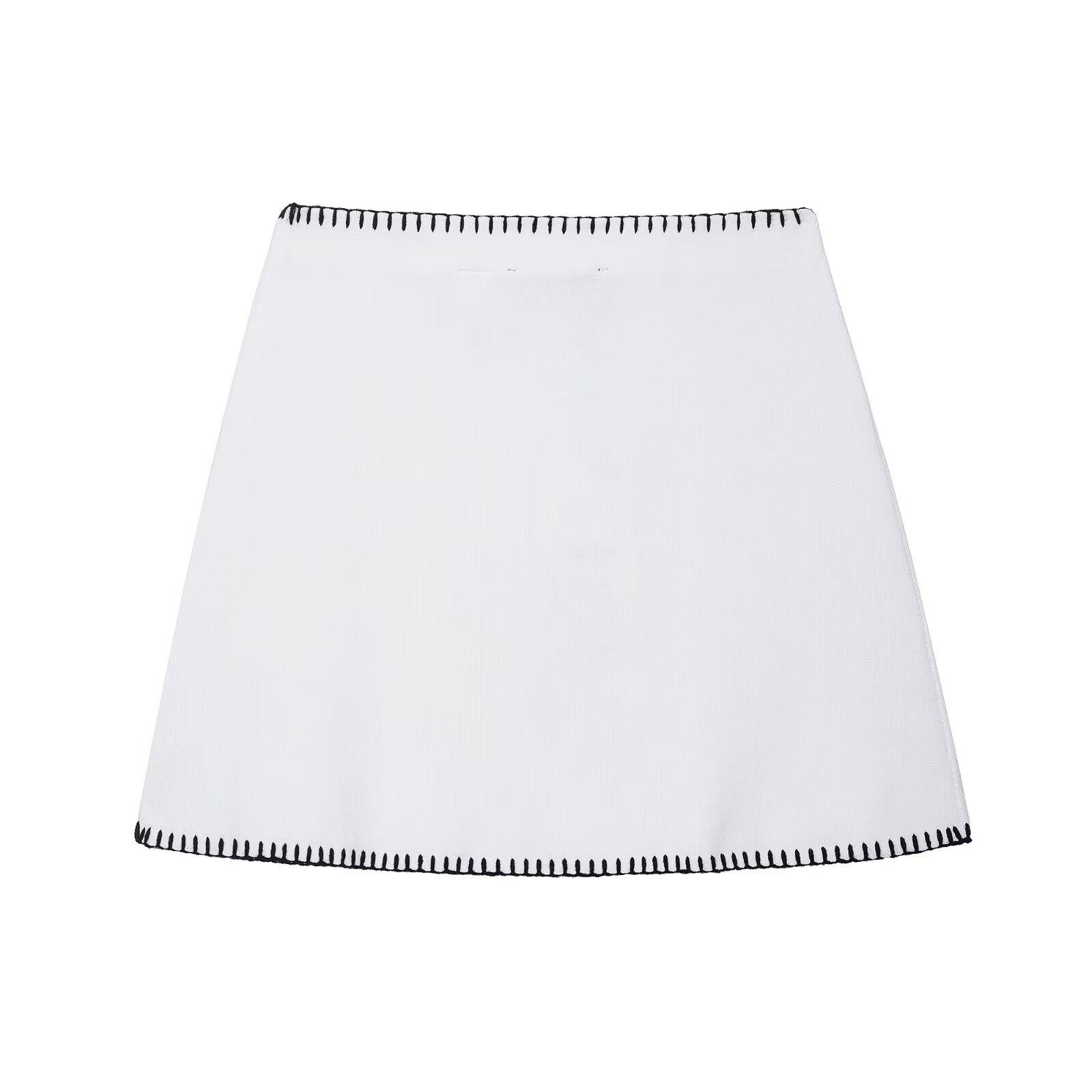 2025 Otoño Nuevo Europeo y Americano Transfronterizo Casual para Mujer Bloque de Color Bordado Suéter de Punto + Conjunto de Media Falda w03 6697