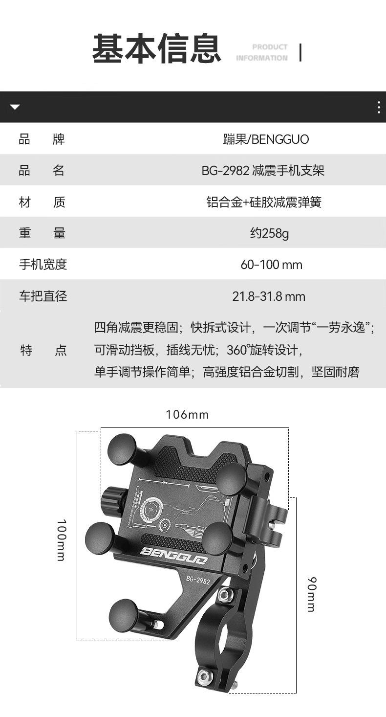 BG-2982 Quick Release Shock-Absorbing Phone Mount