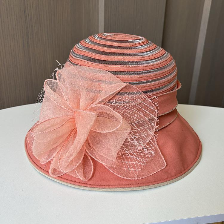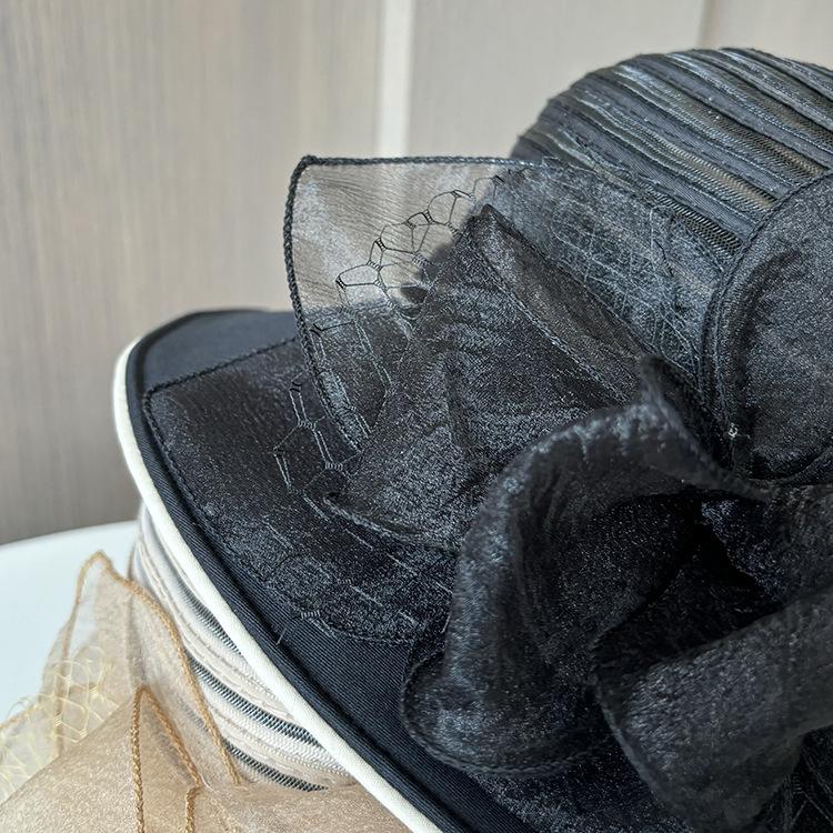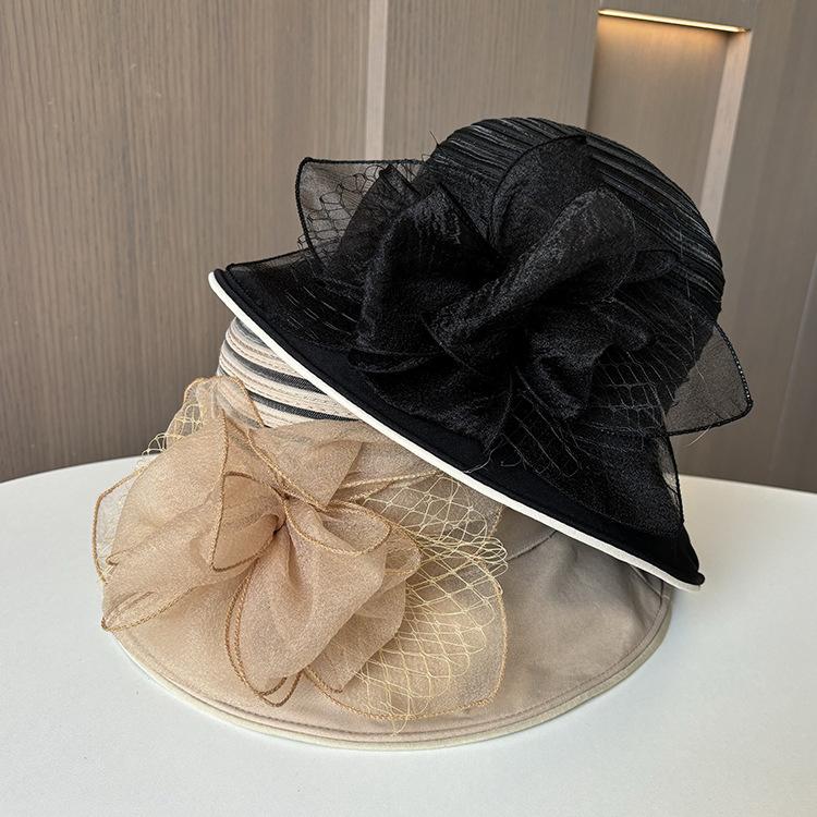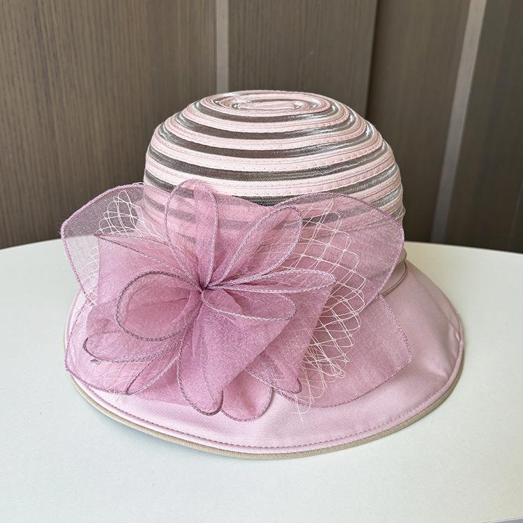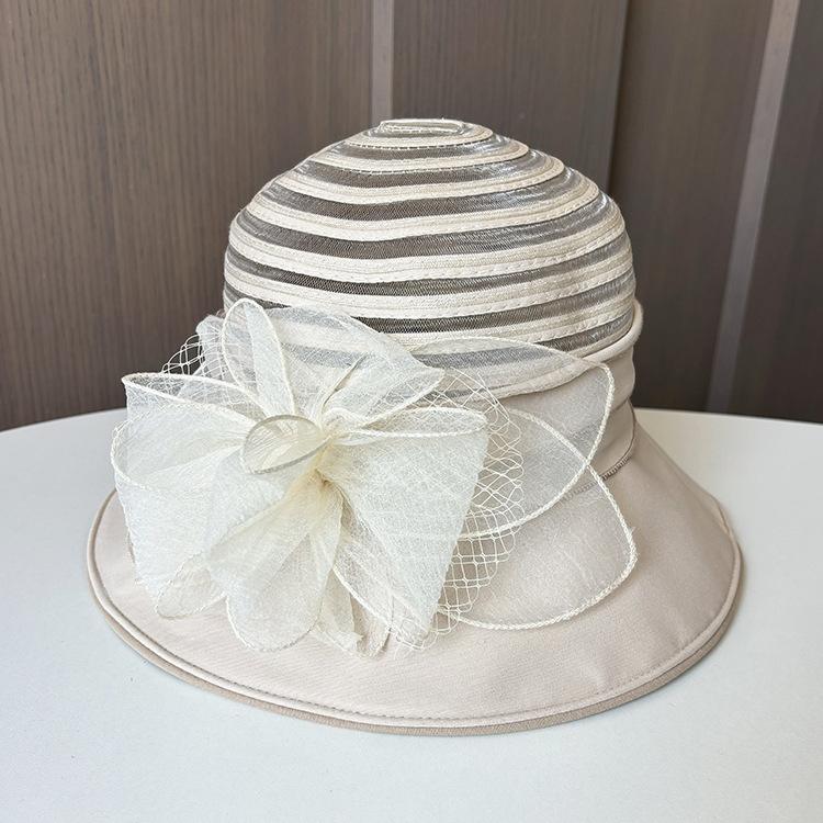 Sombrero de Sol Transpirable de Ala Ancha de Organza Vacaciones en Bali Sombrero de Protección Solar para la Playa Verano Sombrero de Cubo Versátil con Flores