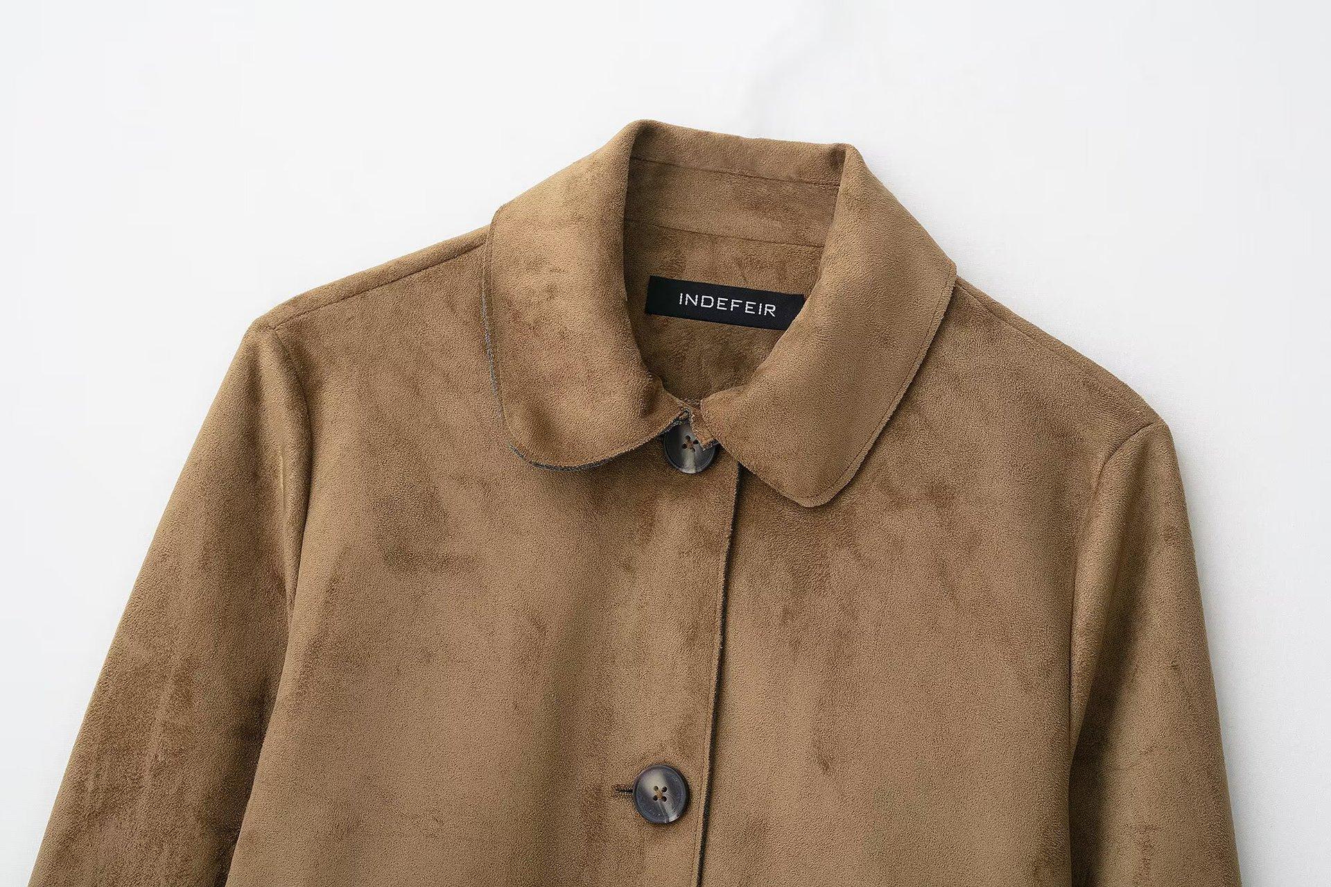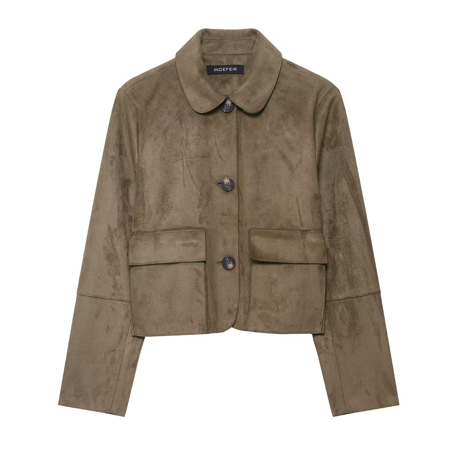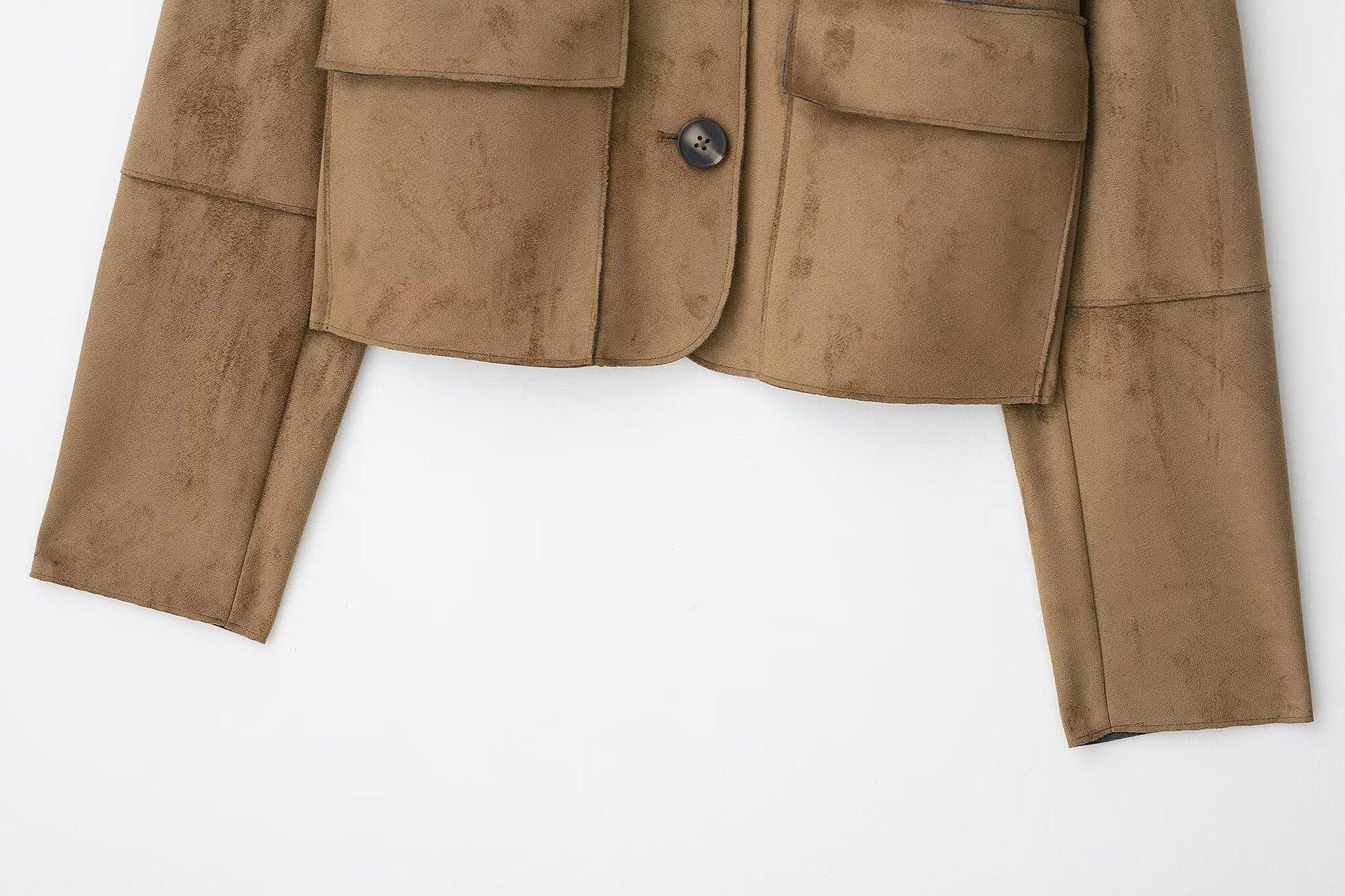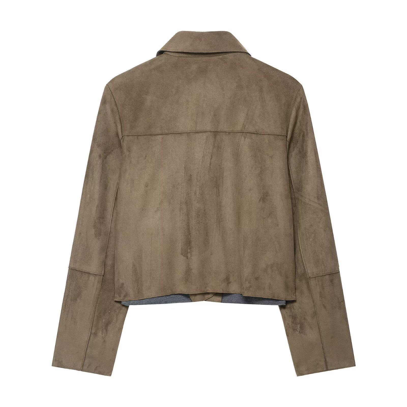 Otoño 2025 Nuevo Europeo y Americano Transfronterizo Moda para Mujer Chaqueta Corta Abrigo efecto Gamuza w085 355027