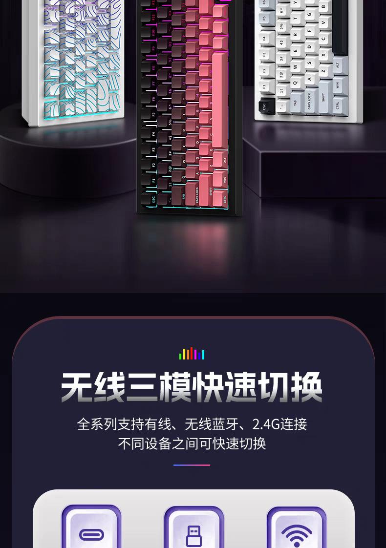 Teclado Mecánico Personalizado K81 de Tres Modos Impresión Lateral Inalámbrico Bluetooth Oficina Juego Dedicado para Esports